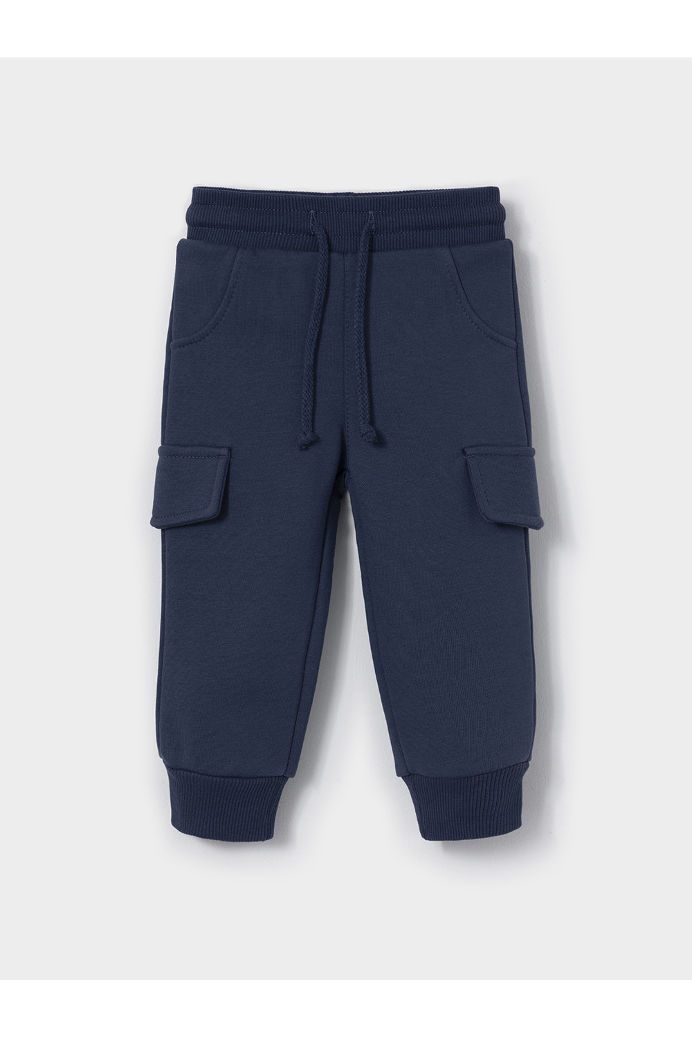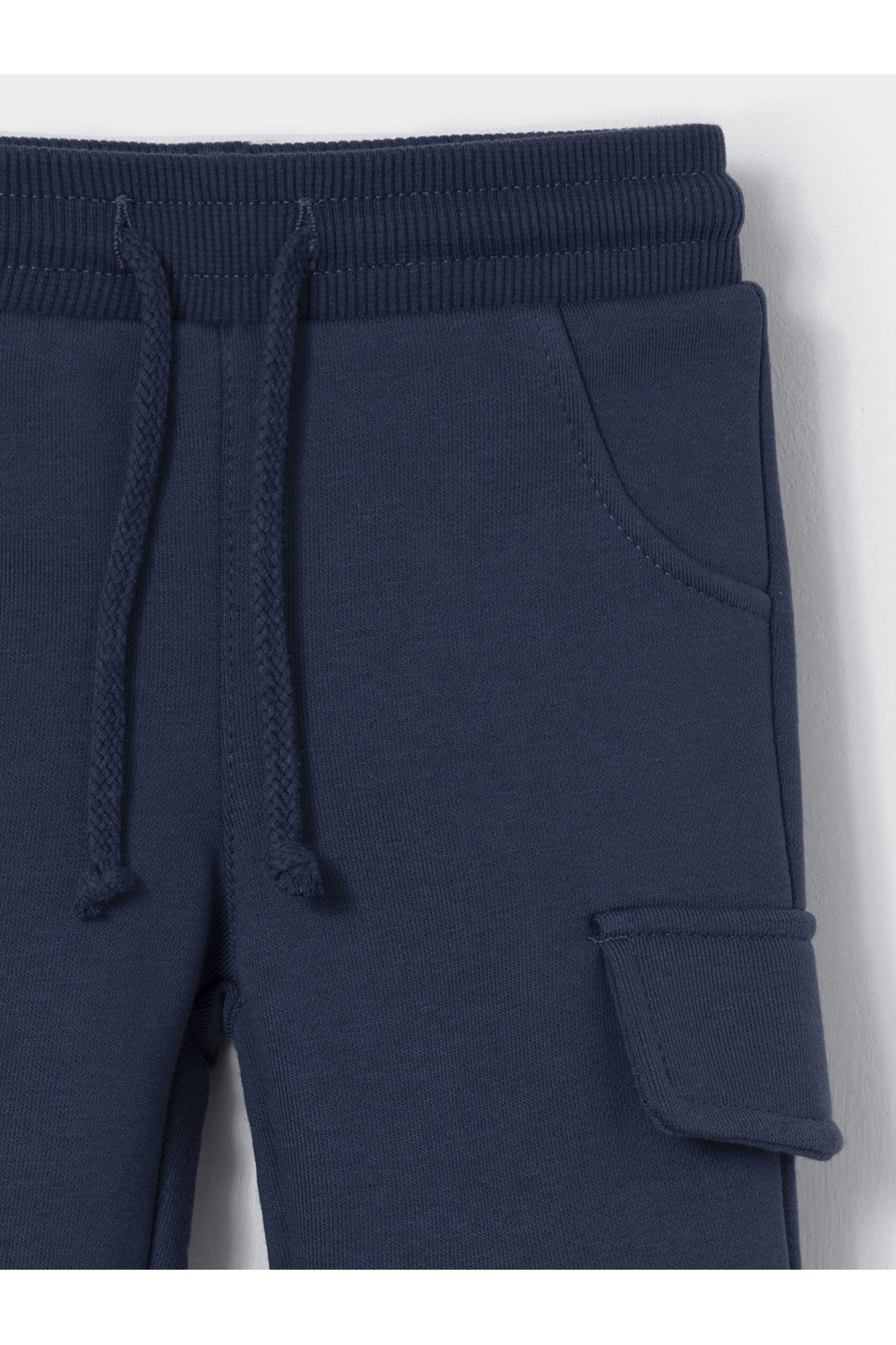 Брюки для мальчика из мягкого петельчатого трикотажа. В составе 80% натурального хлопка и 20% полиэстера, при этом полиэстер ввязан внутрь по особой технологии и не соприкасается с кожей. Эластичный пояс на резинке регулируется по ширине с помощью шнурка. Низ на манжетах. Изделие сохраняет цвет и форму после многократных стирок. Все трикотажные полотна производятся в соответствии с нормами швейцарского сертификата ЭкоТекс.