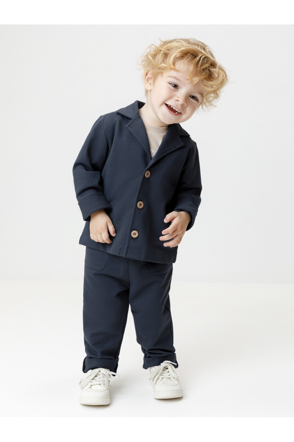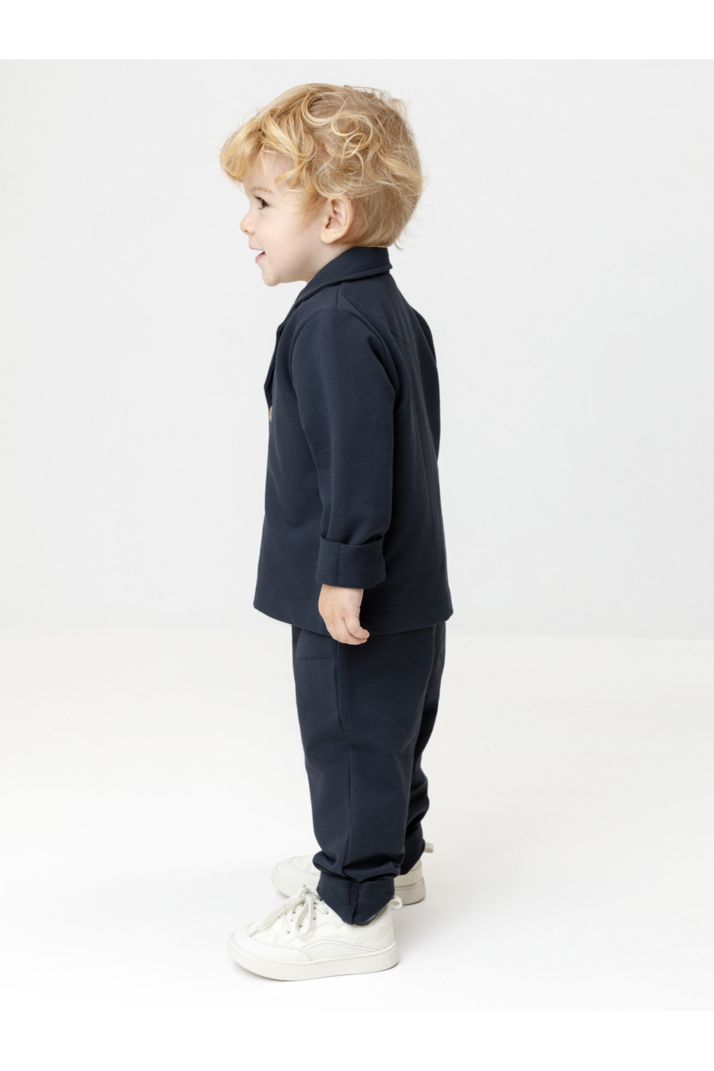 Трикотажные брюки для мальчика из мягкого петельчатого футера. Эластичный пояс на резинке регулируется по ширине с помощью шнурка. Изделие сохраняет цвет и форму после многократных стирок. Все трикотажные полотна производятся в соответствии с нормами швейцарского сертификата ЭкоТекс.