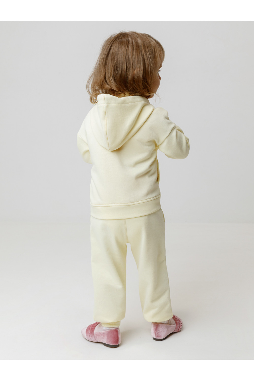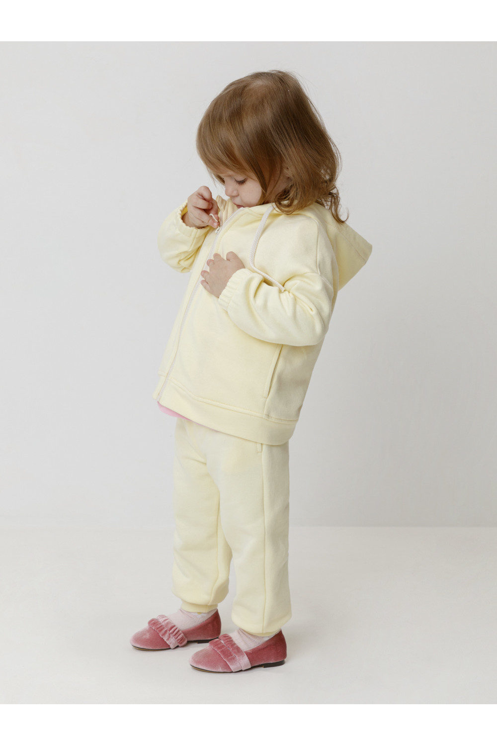 Брюки из мягкого петельчатого футера трёхнитки для девочки. Модель с эластичным поясом на резинке. Низ на манжетах. Изделие сохраняет цвет и форму после многократных стирок. Все трикотажные полотна производятся в соответствии с нормами швейцарского сертификата ЭкоТекс.