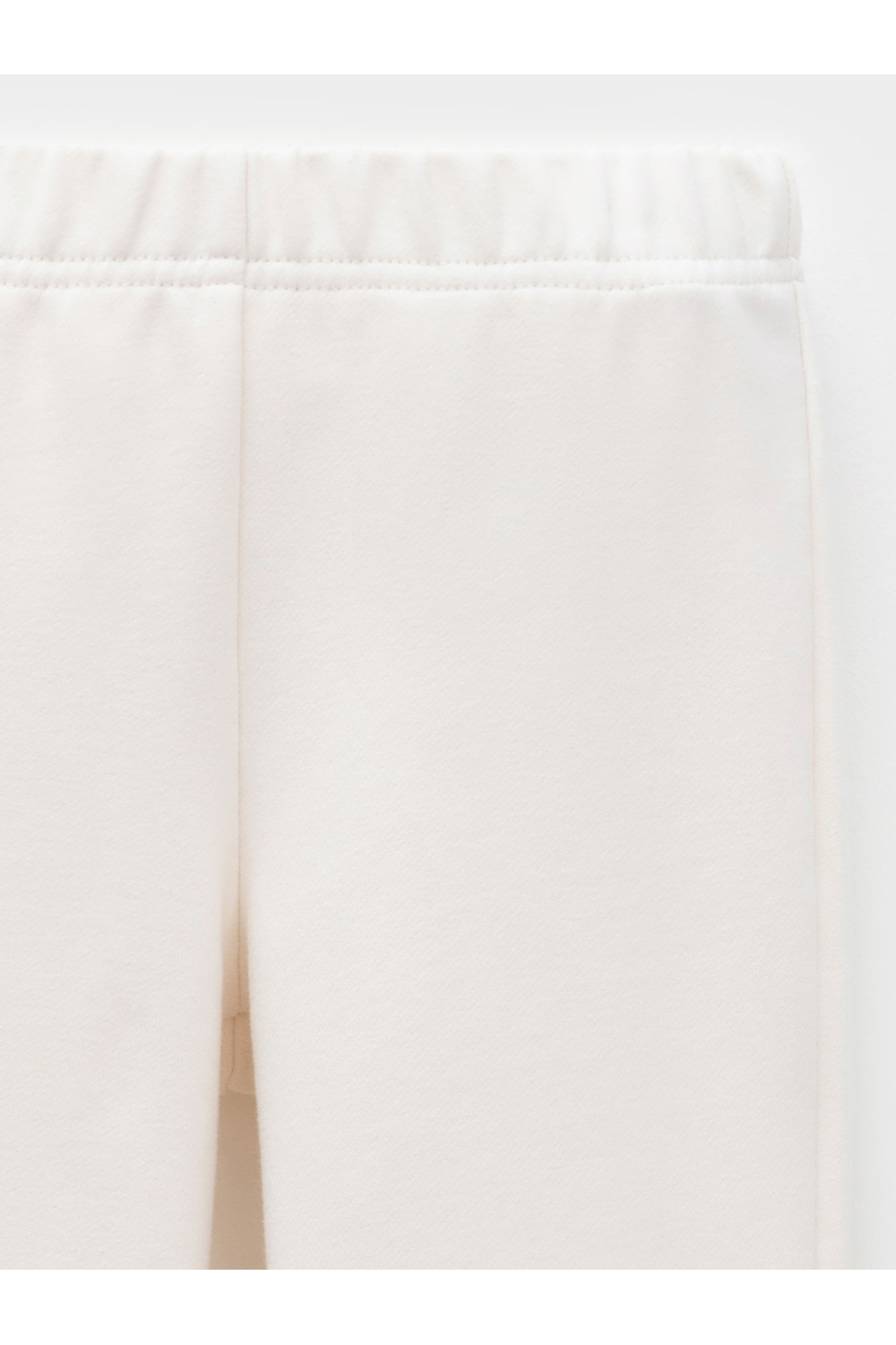 Брюки для девочки из однотонного футера с добавлением спандекса, который придаёт эластичность. Модель с мягким поясом на резинке. Изделие сохраняет цвет и форму после многократных стирок. Все трикотажные полотна производятся в соответствии с нормами швейцарского сертификата ЭкоТекс.