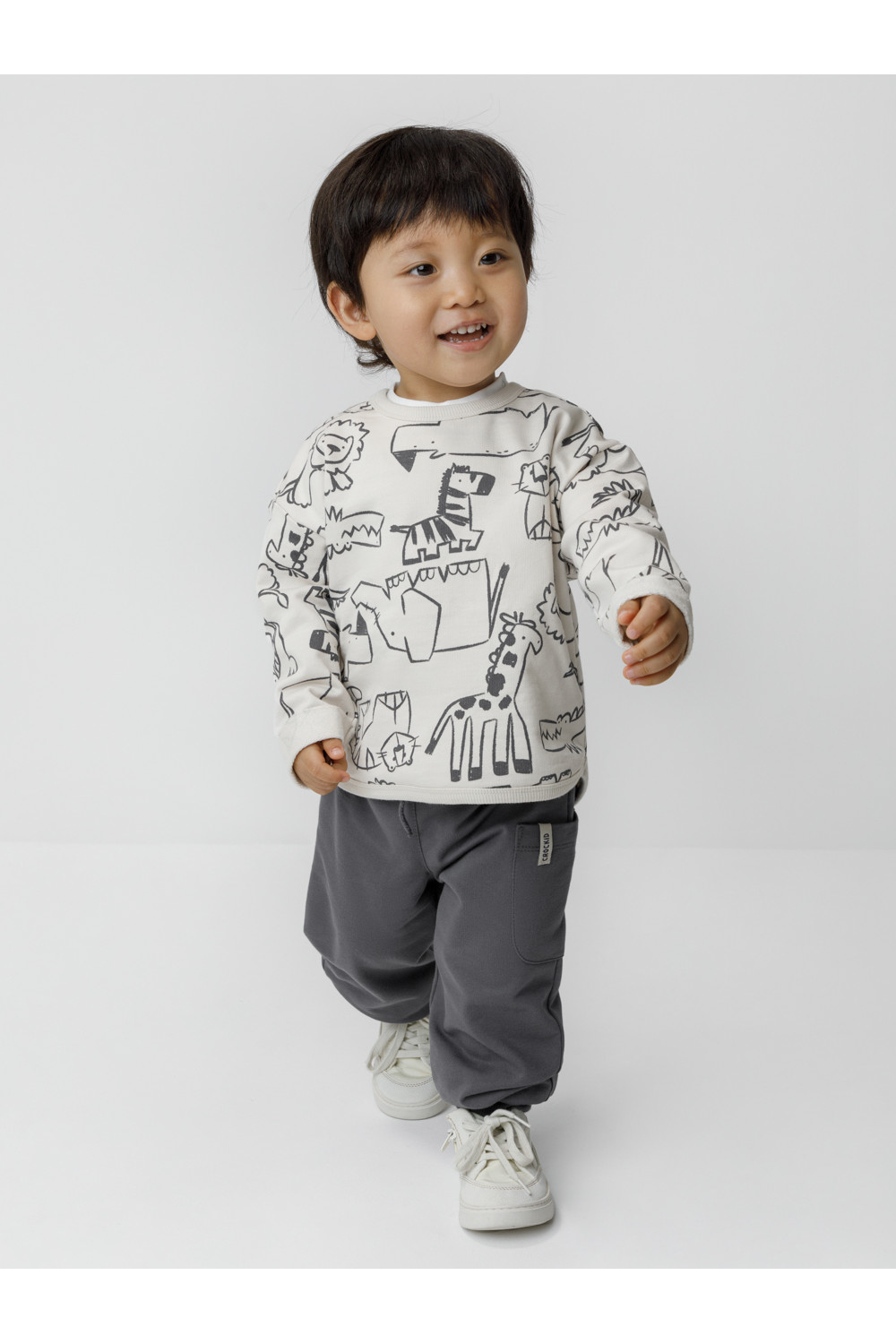 Брюки для мальчика из мягкого однотонного футера. Модель с эластичным поясом на резинке и регулировкой по талии с помощью шнурка. Низ на манжетах. Изделие сохраняет цвет и форму после многократных стирок. Все трикотажные полотна производятся в соответствии с нормами швейцарского сертификата ЭкоТекс.