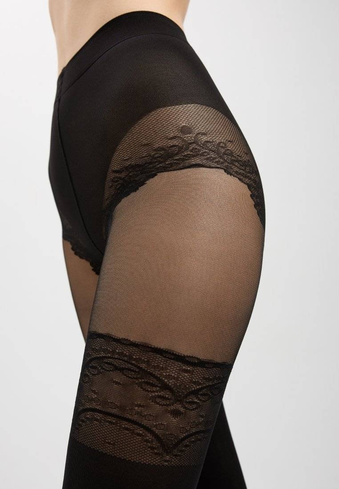 Плотные фантазийные женские колготки с рисунком "имитация чулок c ажурными утягивающими трусиками", плоский шов, хлопковая ластовица.