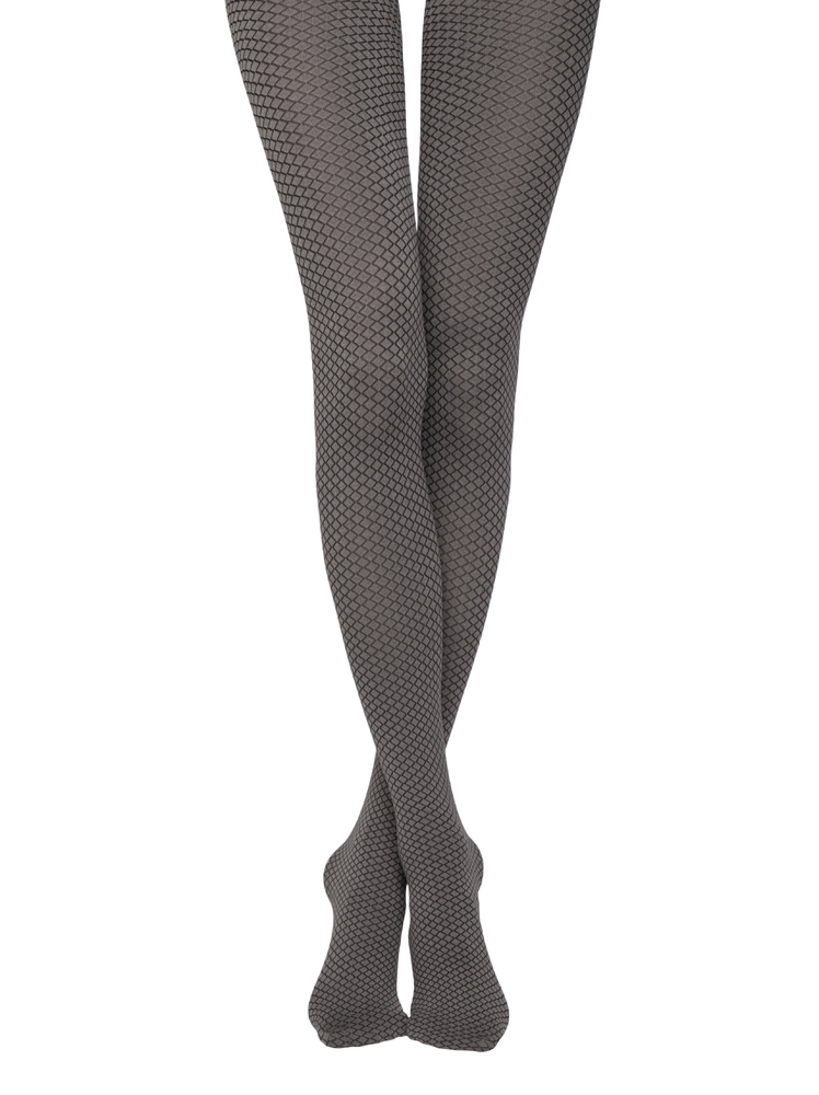 Плотные меланжевые фантазийные колготки, рисунок - ромбы, эффект 3D, плоский шов, хлопковая ластовица
