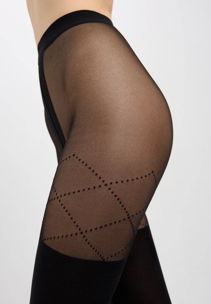 Колготки с имитацией гольфинов и шнуровки FABIA помогут создать индивидуальный и эффектный образ, привлекая внимание к красоте ног. · 20 den торс· 50 den ножка· классическая посадка по талии· плотные и эластичные· имитация гольфинов· геометрический рисунок «точки», имитирующий шнуровку· идеальное облегание· плоский шов· хлопковая ластовица· эффектное дополнение ваших образов.