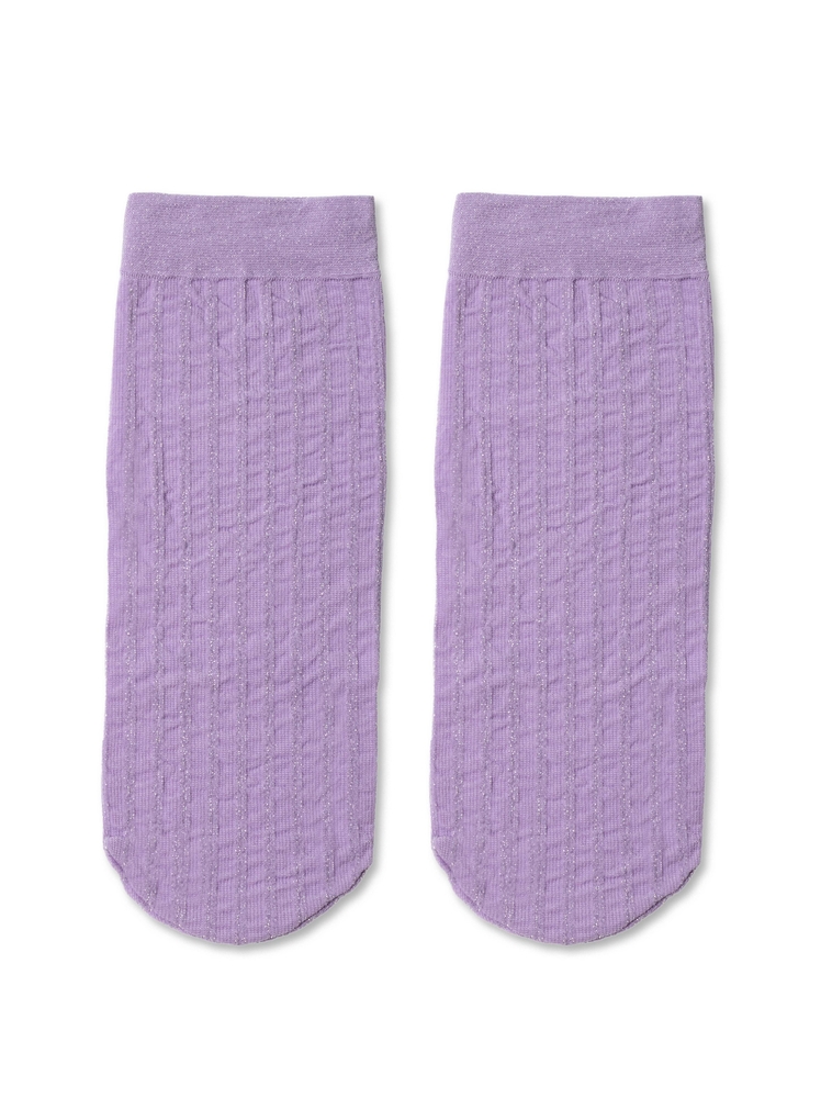 Эластичные носки в полоску с ненавязчивым блеском люрекса созданы для девушек, которые любят выглядеть оригинально и с удовольствием подчеркивают свою индивидуальность. Будьте готовы к стильным экспериментам!