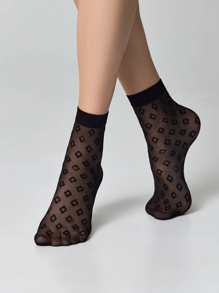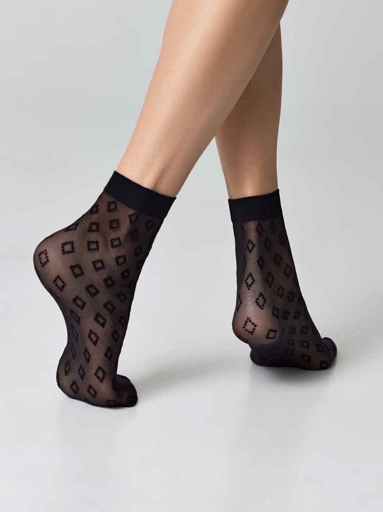 Тонкие носки Fantasy c геометрическим рисунком «ромбы» созданы, чтобы стать стильным акцентов в ваших образах.