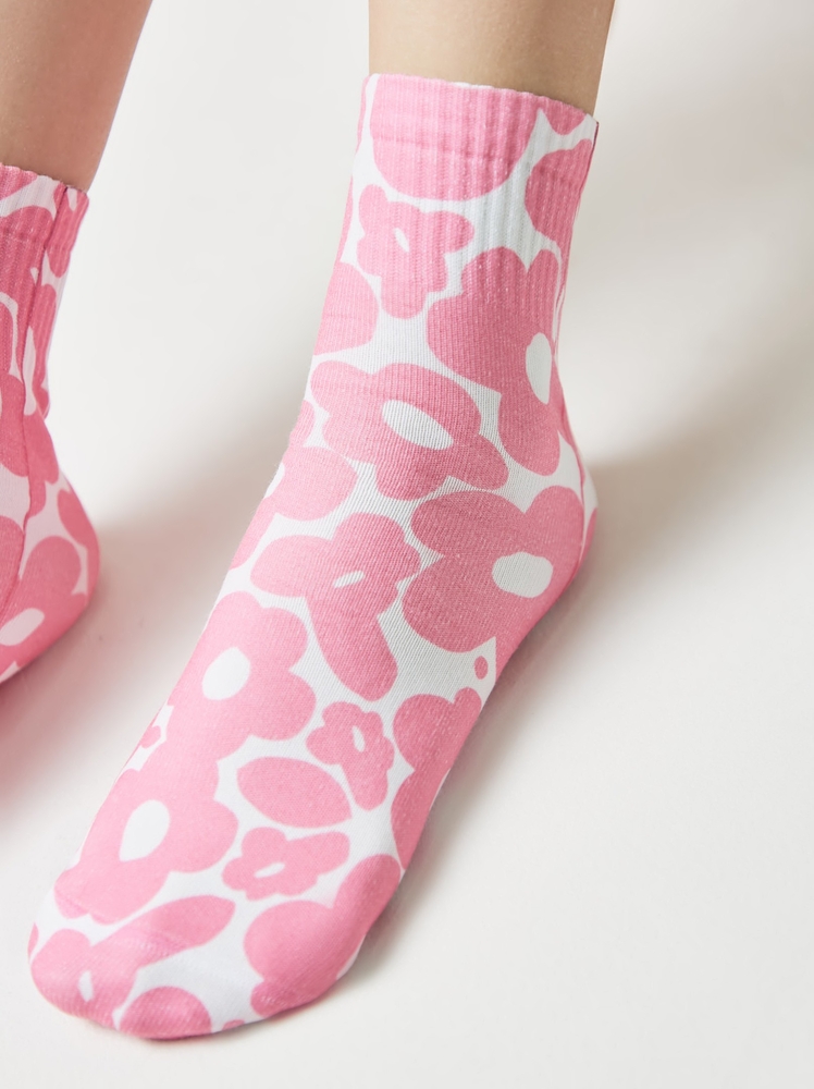 Укороченные носки Fantasy с хлопком и печатными рисунками так оригинальны, что вам захочется включить в свой гардероб всю коллекцию. Будьте готовы к стильным экспериментам!· укороченная модель· универсальный размер· эластичный рельефный паголенок-резинка· фантазийный печатный рисунок · мягкое и эластичное полотно с хлопком.