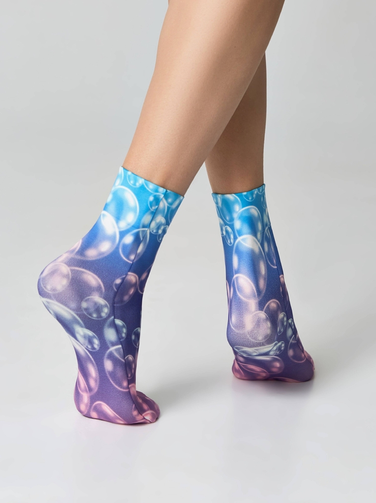 Плотные носки с особенно устойчивым рисунком, нанесенным с помощью термотрансферной печати, станут стильным и индивидуальным акцентом в повседневных образах. Термотрансферная печать - процесс, при котором специальная краска на бумажном носителе резко нагревается, переходит из твердого состояния в газообразное и переносится с бумаги на носки, глубоко проникая в волокна и создавая устойчивое изображение. · 70 den· плотное и эластичное волокно с микрофиброй· рисунок, нанесенный с помощью термотрасферной печати· эффект 3D· c бортом· без пятки· стиль начинается с индивидуальности.