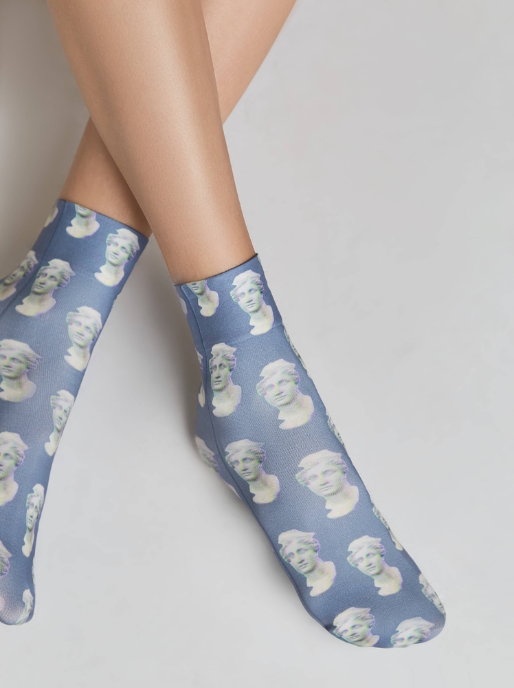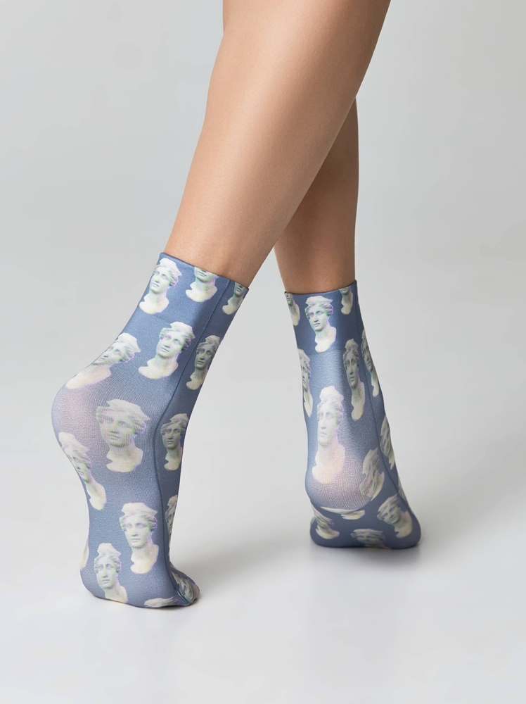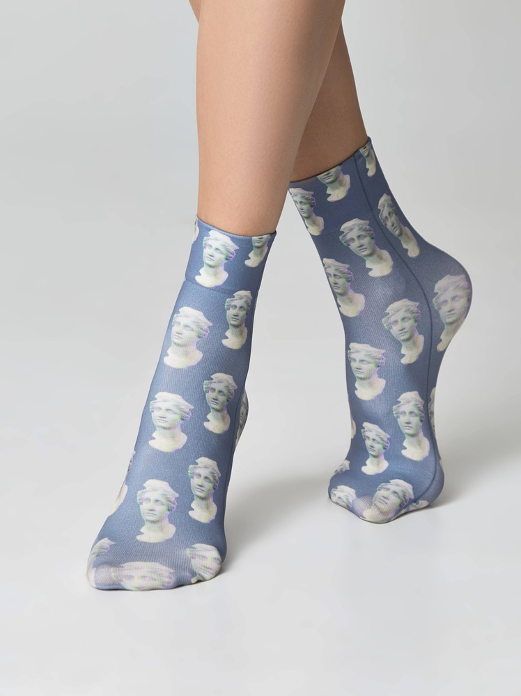 Плотные носки с особенно устойчивым рисунком, нанесенным с помощью термотрансферной печати, станут стильным и индивидуальным акцентом в повседневных образах. Термотрансферная печать - процесс, при котором специальная краска на бумажном носителе резко нагревается, переходит из твердого состояния в газообразное и переносится с бумаги на носки, глубоко проникая в волокна и создавая устойчивое изображение. · 70 den· плотное и эластичное волокно с микрофиброй· рисунок, нанесенный с помощью термотрасферной печати· эффект 3D· c бортом· без пятки· стиль начинается с индивидуальности.