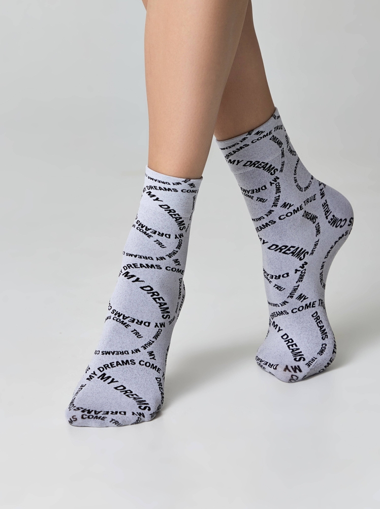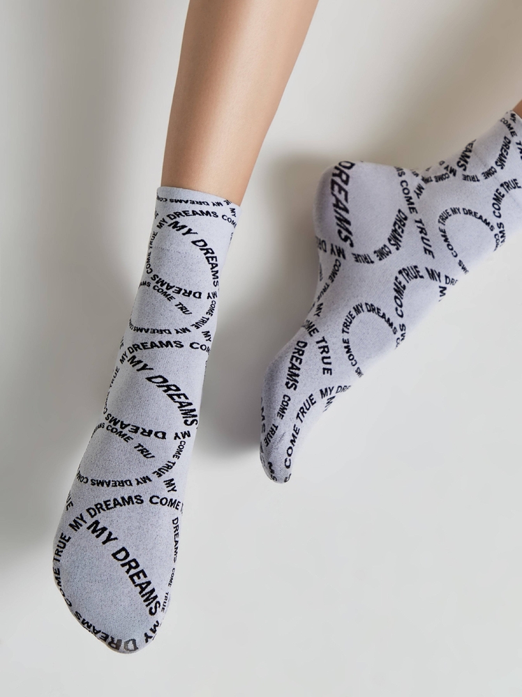Плотные носки с вывязанным рисунком «My dreams» станут эффектным дополнением ваших повседневных образов и подарят комфорт в прохладную погоду.