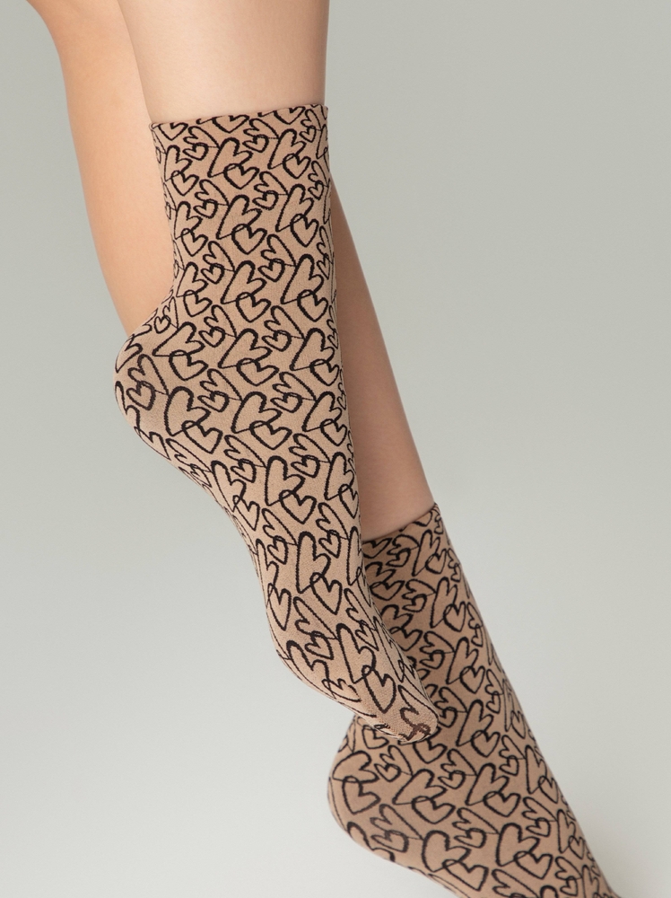 Плотные носки с вывязанным рисунком «сердечки» станут эффектным дополнением ваших повседневных образов и подарят комфорт в прохладную погоду.