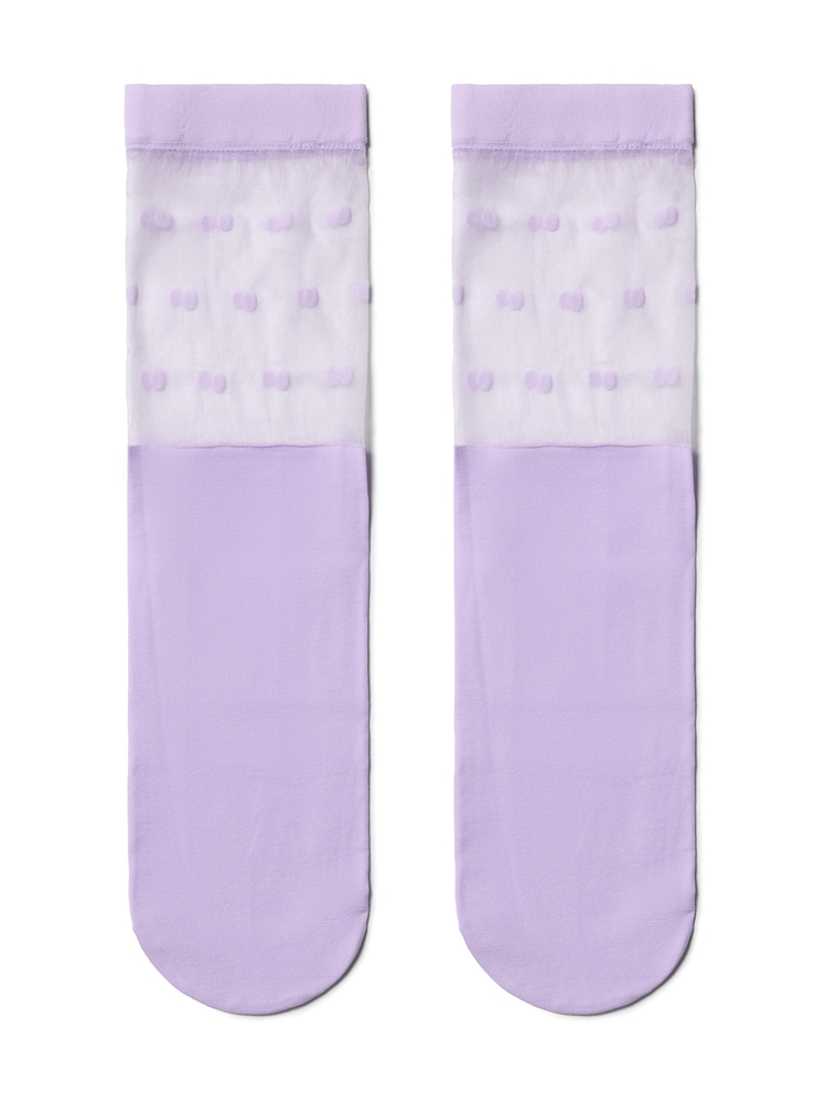 Удлиненные носки с прозрачным верхом в горошек созданы для девушек, которые любят выглядеть оригинально и с удовольствием подчеркивают свою индивидуальность. Будьте готовы к стильным экспериментам!