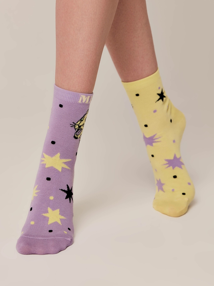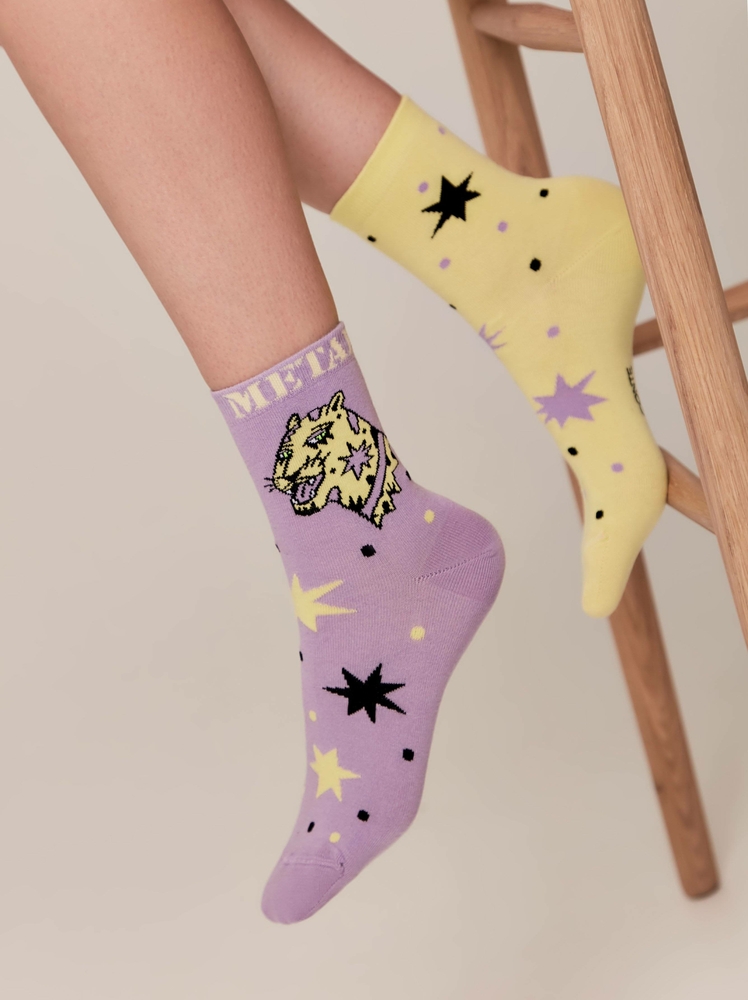 Эти хлопковые носки станут изюминкой вашего образа. Подходят для любого настроения, случая и гардероба. Оригинальные ассиметричные рисунки и креативные надписи подчеркнут вашу яркую индивидуальность.
