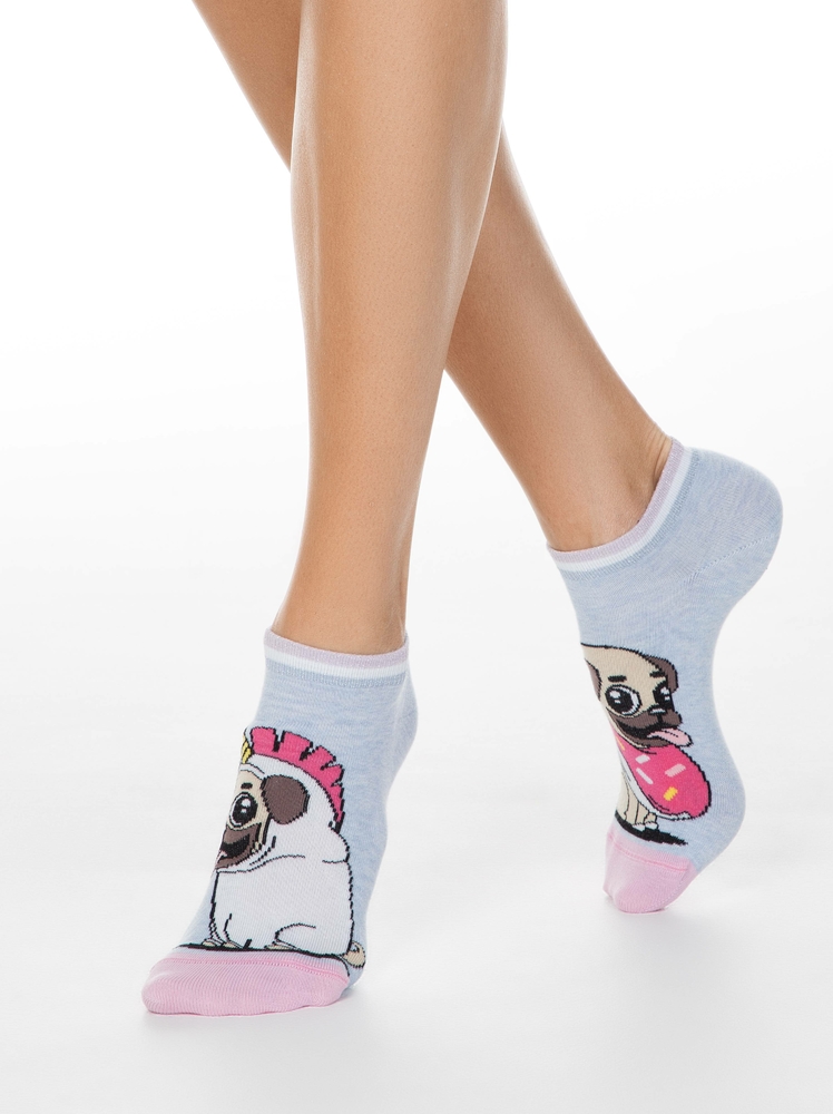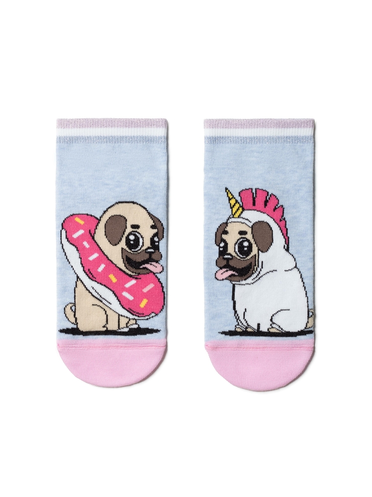 Короткие хлопковые носки из серии Happy созданы, чтобы стать оригинальным акцентом в повседневном, домашнем и спортивном образе. · короткие· эластичный борт· ажурное хлопковое полотно· креативные рисунки «мопсы».