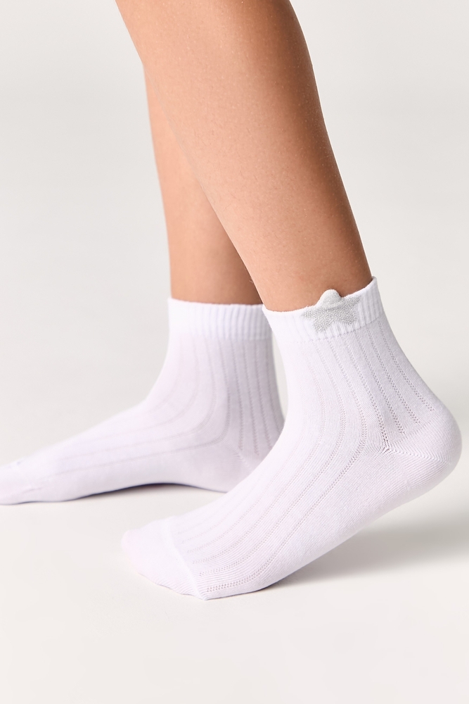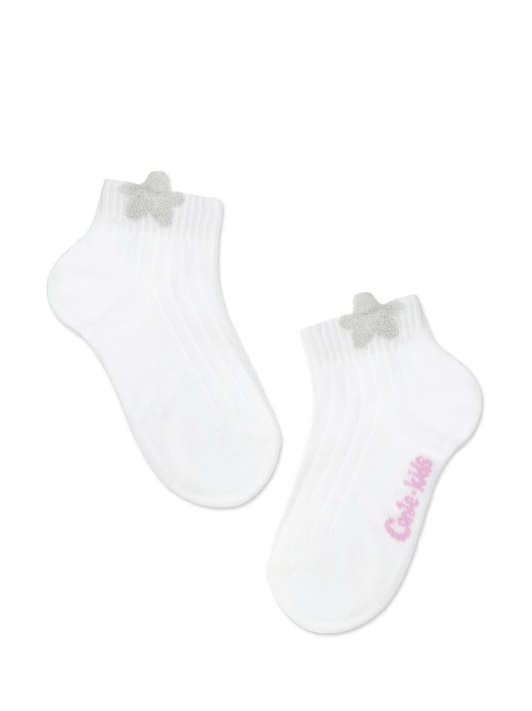 Хлопковые фактурные носки TIP-TOP для девочек с сияющим пикотом из люрекса в виде «звездочки» или «сердечка» на резинке – отличный подарок вашей маленькой моднице!Носки будут прекрасно смотреться с невысокой обувью как в повседневном, так и в нарядном образе девочки.