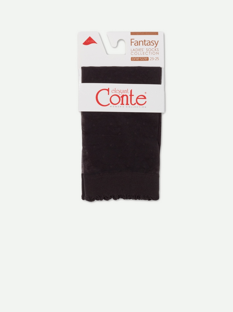 Тонкие носки Fantasy в горошек с удобным декоративным бортом станут отличным дополнением модного повседневного образа. · 20 Den · классическая длина · декоративный борт · в горошек · тонкие и эластичные.
