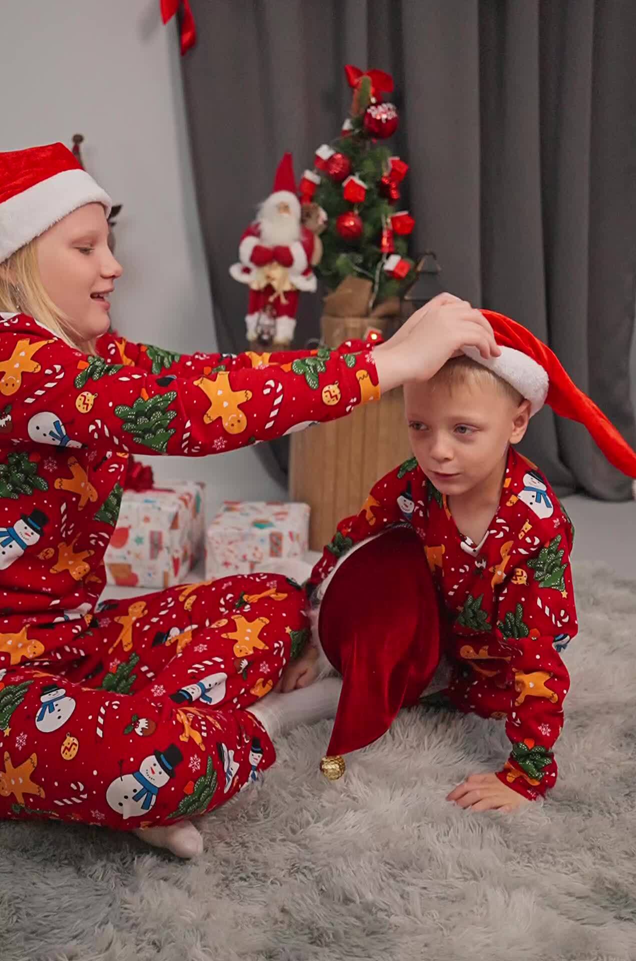 В набор входит лонгслив и штаны, которые идеально подойдут для сна и отдыха дома. Хлопковая пижамка подарит уют ребенку и станет отличным вариантом для рождественской фотосессии в стиле фэмили лук (family look).