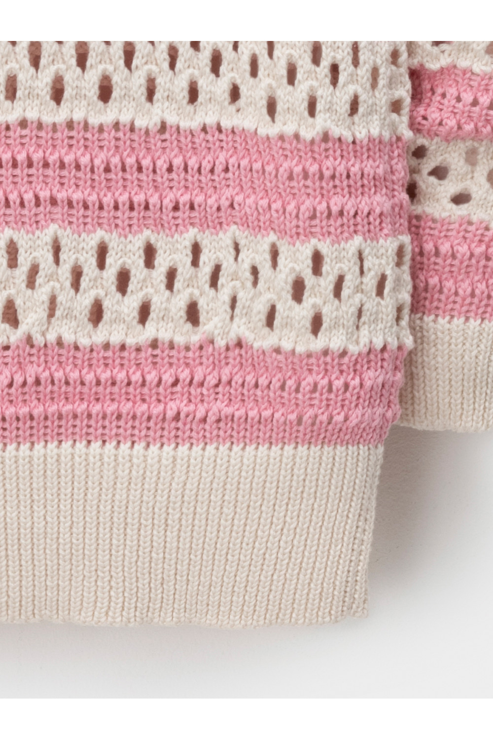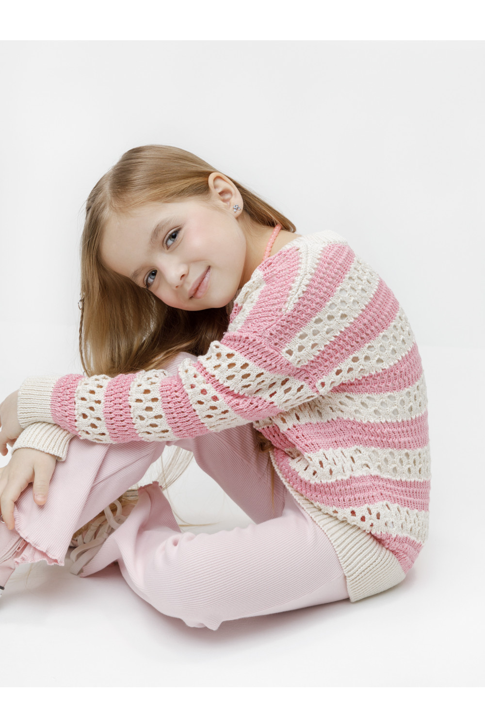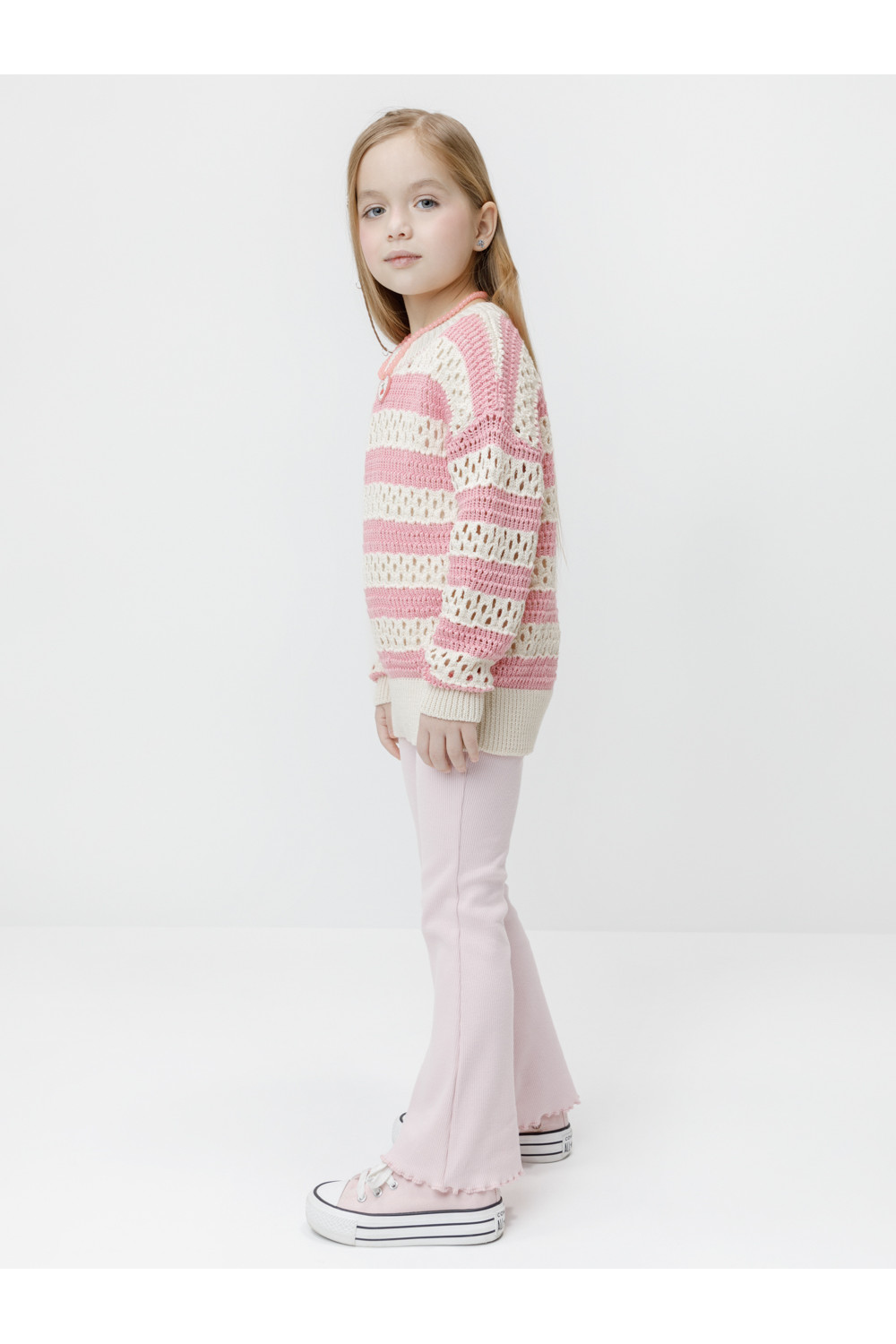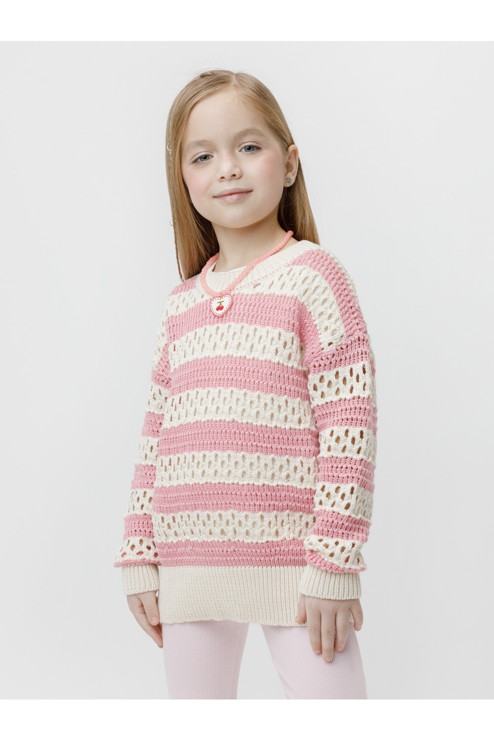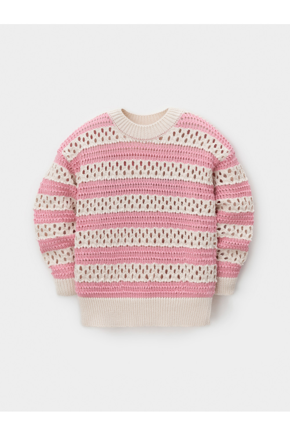 Вязаный джемпер объёмный. Изготовлен из мягкой хлопковой пряжи с добавлением акрила. Длинные рукава с манжетами. Внизу эластичный пояс. Изделие сохраняет форму и стойкий цвет после многочисленных стирок.