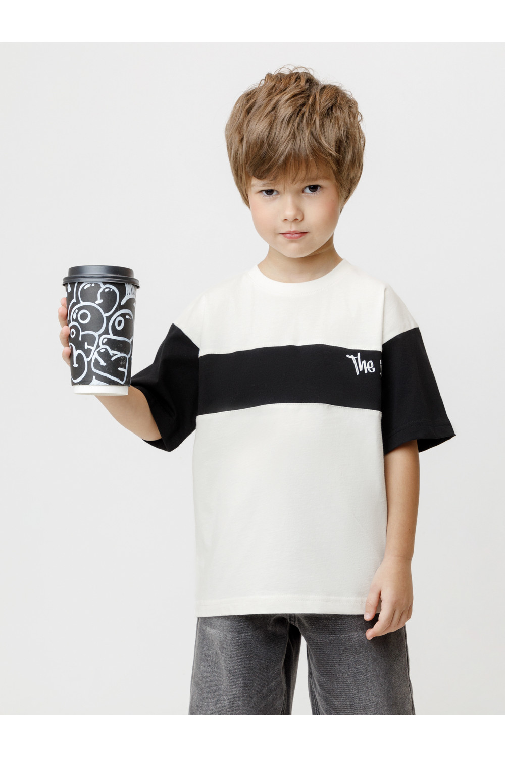 Футболка для мальчика из высококачественного трикотажного полотна. Оригинальный принт выполнен из стойких текстильных красителей. Изделие сохраняет цвет и форму после многократных стирок. Все трикотажные полотна производятся в соответствии с нормами швейцарского сертификата ЭкоТекс.