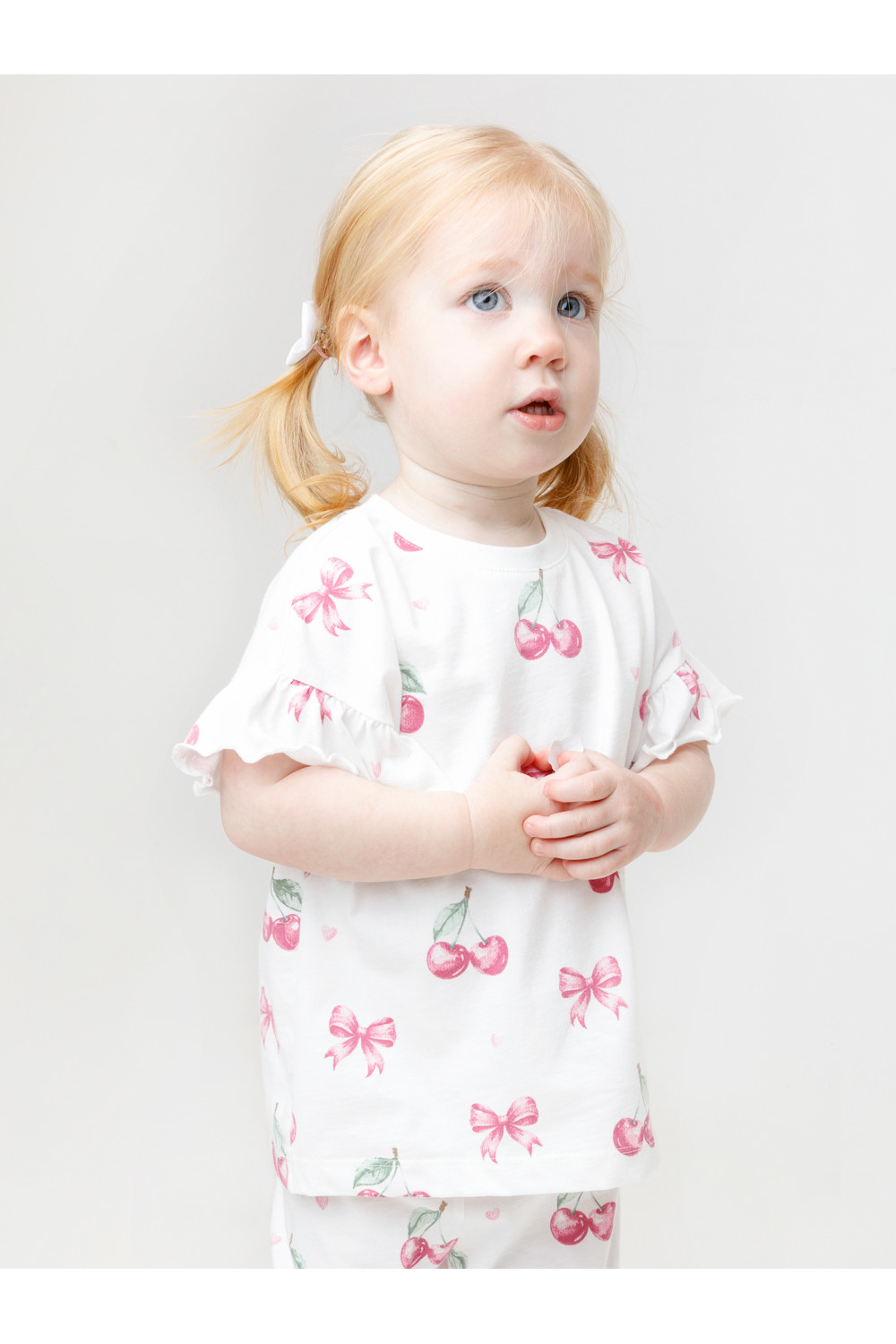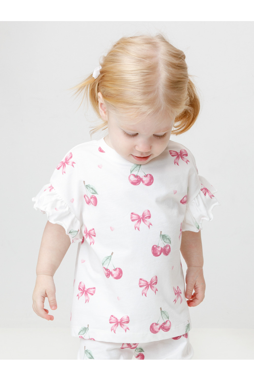 Футболка для девочки с нарядными рюшами из высококачественного трикотажного полотна, изготовленного из натурального хлопка. Изделие сохраняет цвет и форму после многократных стирок. Все трикотажные полотна производятся в соответствии с нормами швейцарского сертификата ЭкоТекс.