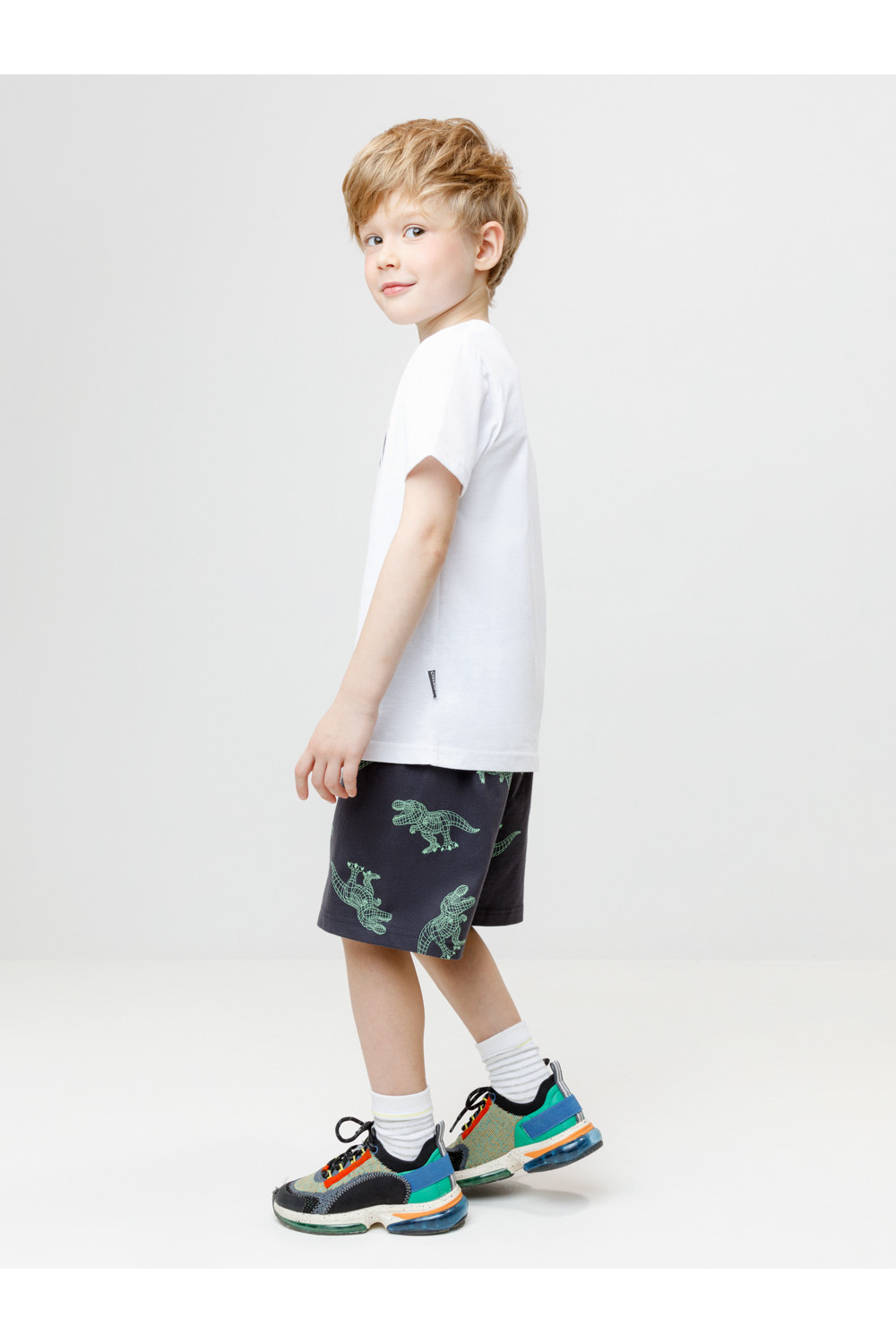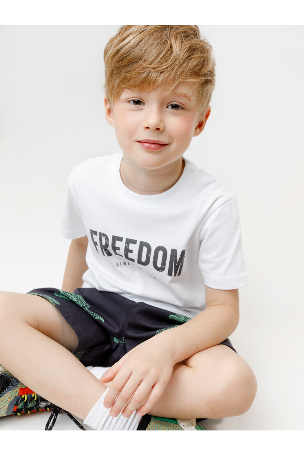 Футболка для мальчика из высококачественного трикотажного полотна. Оригинальный принт выполнен из стойких текстильных красителей. Изделие сохраняет цвет и форму после многократных стирок. Все трикотажные полотна производятся в соответствии с нормами швейцарского сертификата ЭкоТекс.