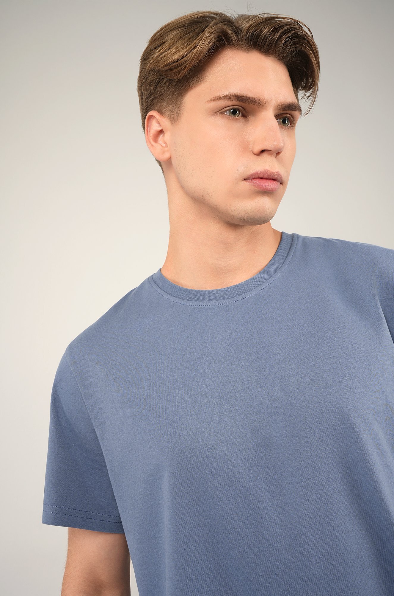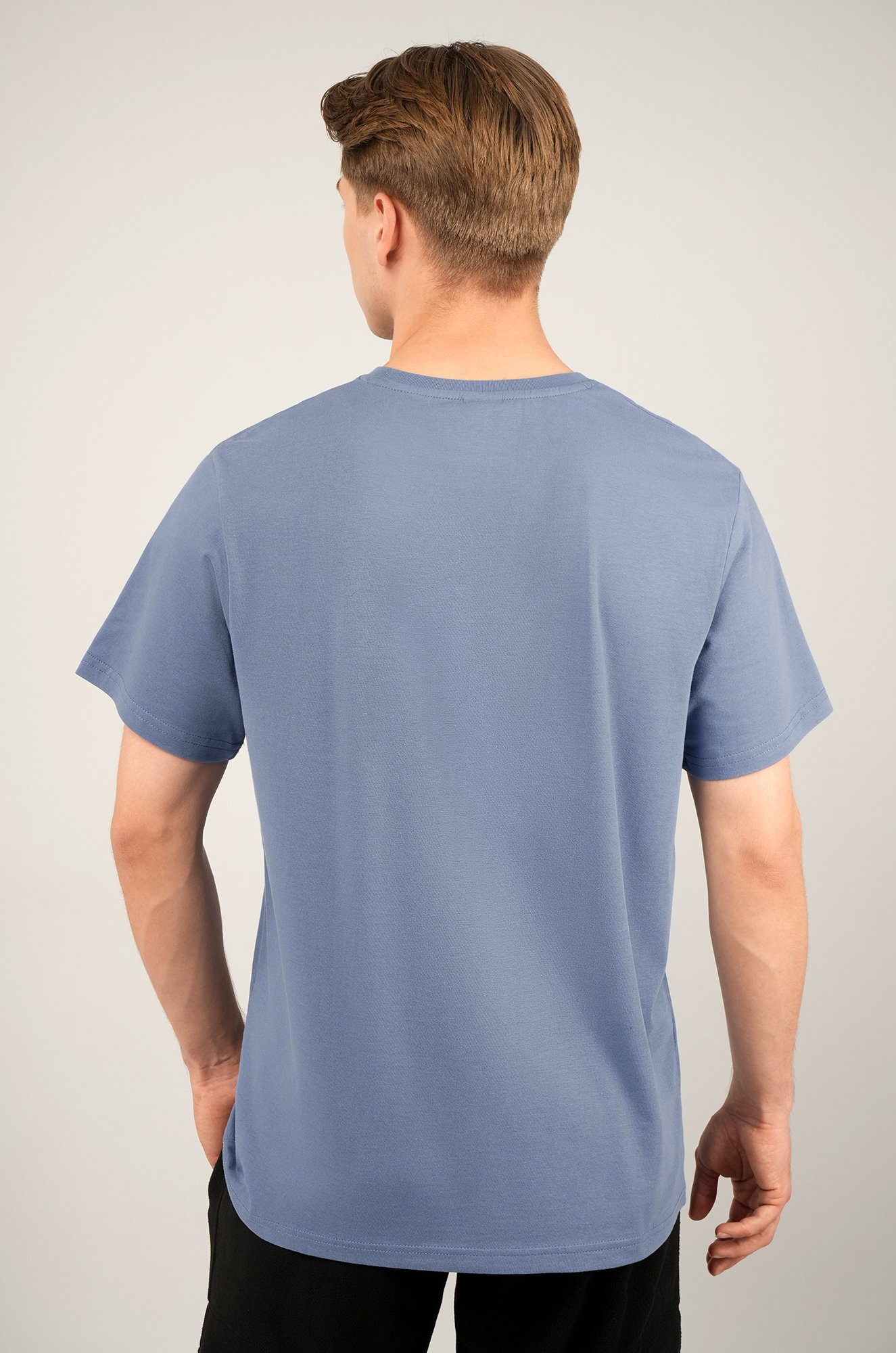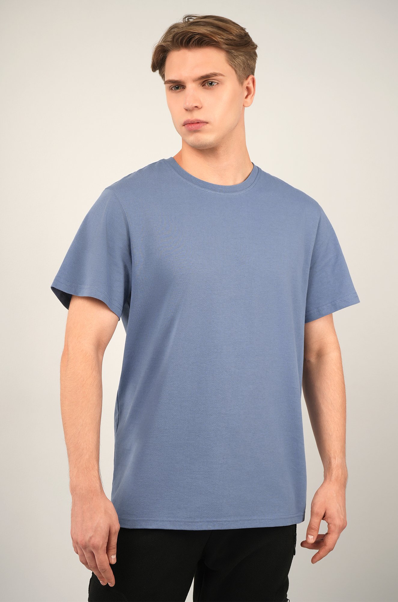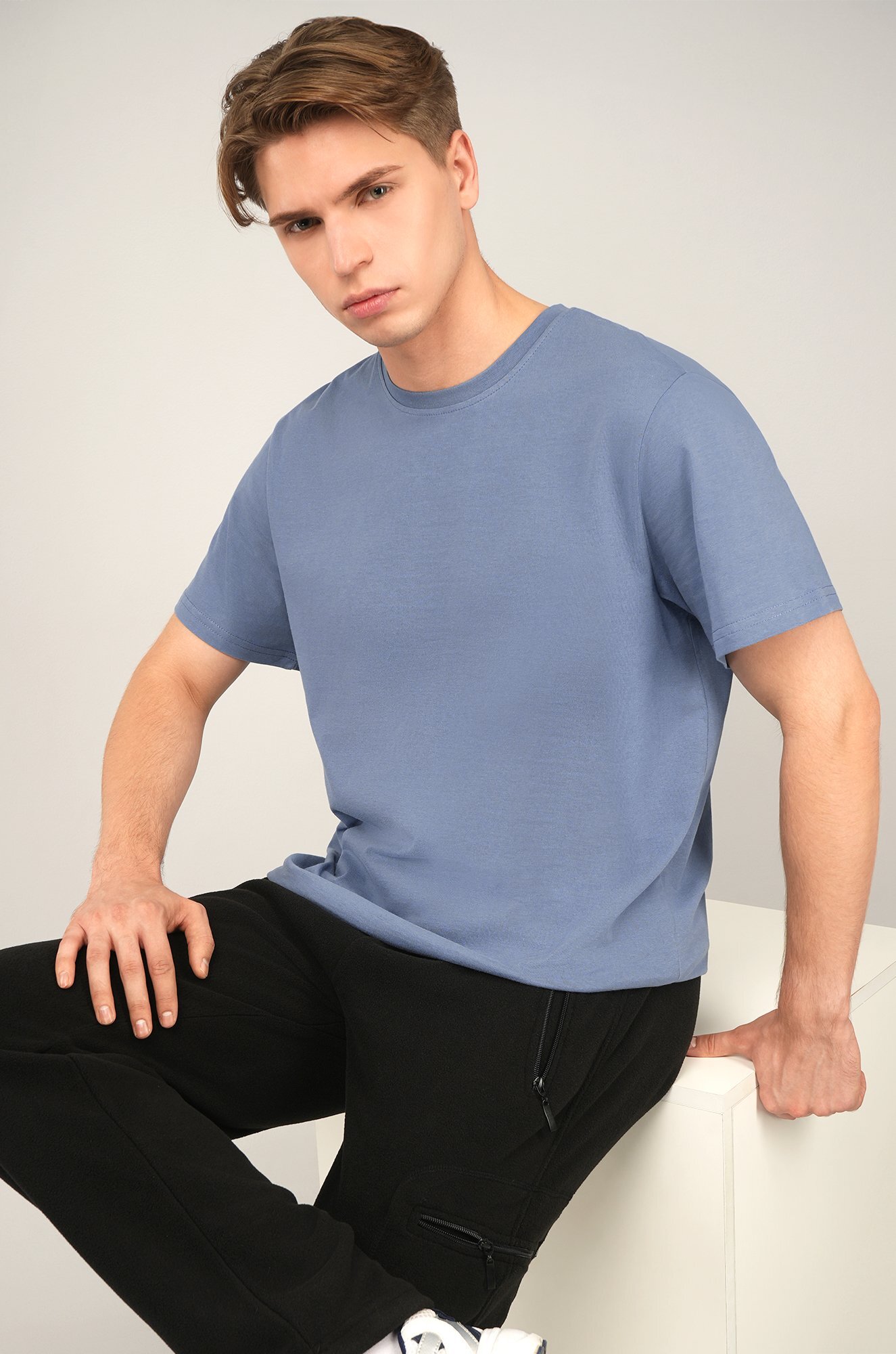 — серо-голубая футболка универсальна и легко сочетается с любыми элементами гардероба;