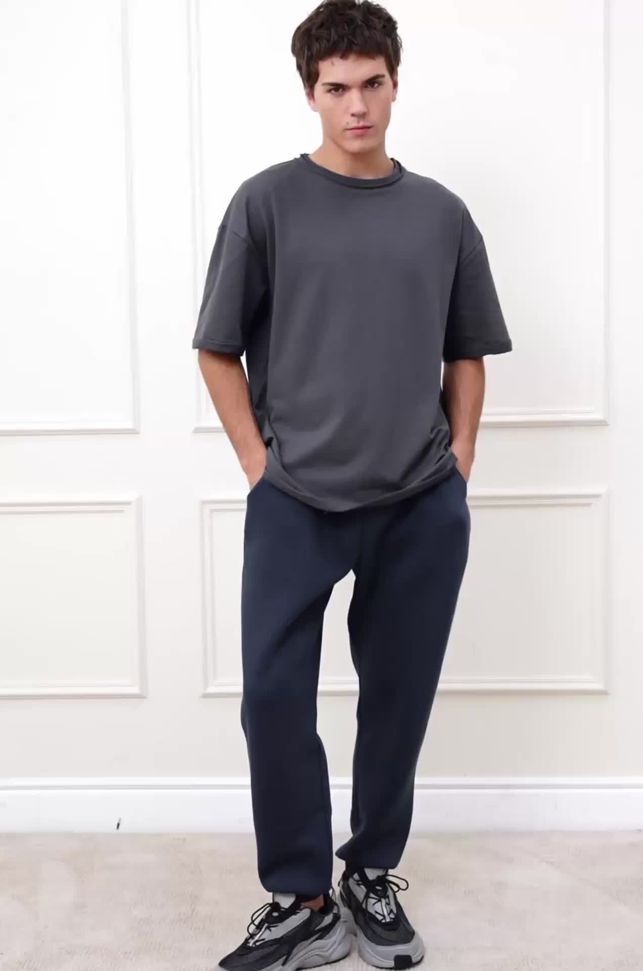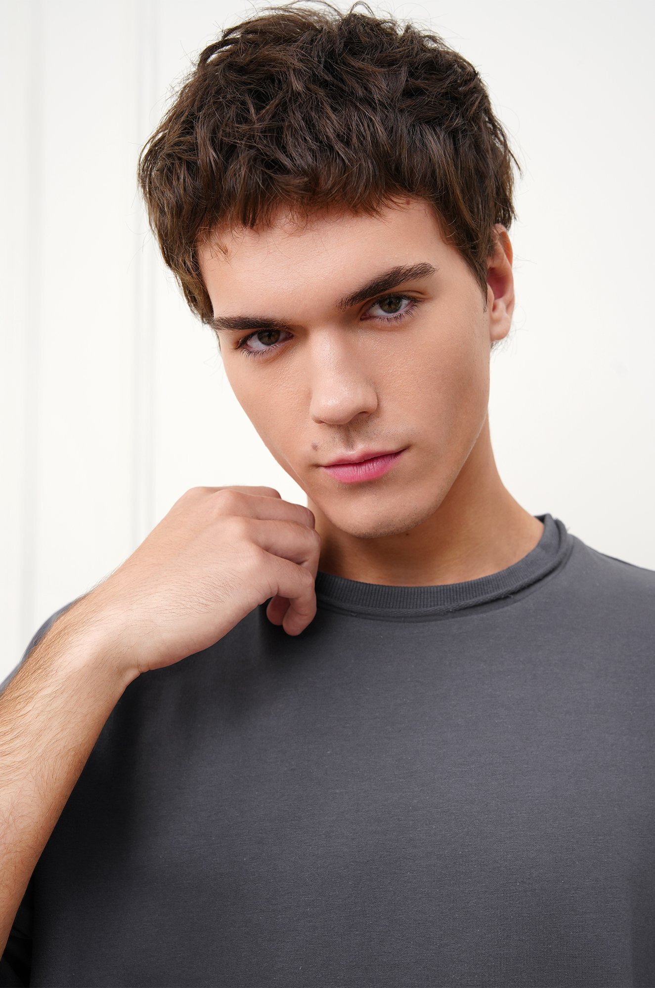Однотонная темно-серая футболка для мужчин подойдёт для дома, работы и спортзала.