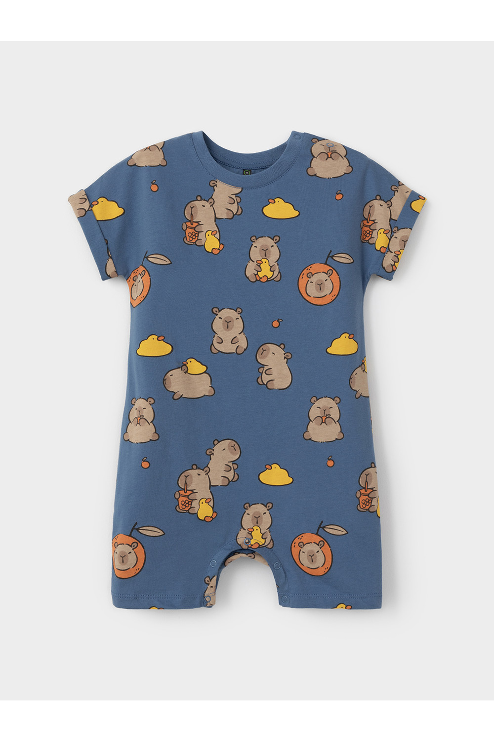 Лёгкий трикотажный песочник для мальчика из высококачественного хлопка. Для удобства при одевании застёгивается на кнопки на плече и по шаговому шву. Оригинальная набивка выполнена из стойких текстильных гипоаллергенных красителей. Изделие сохраняет цвет и форму после многократных стирок.