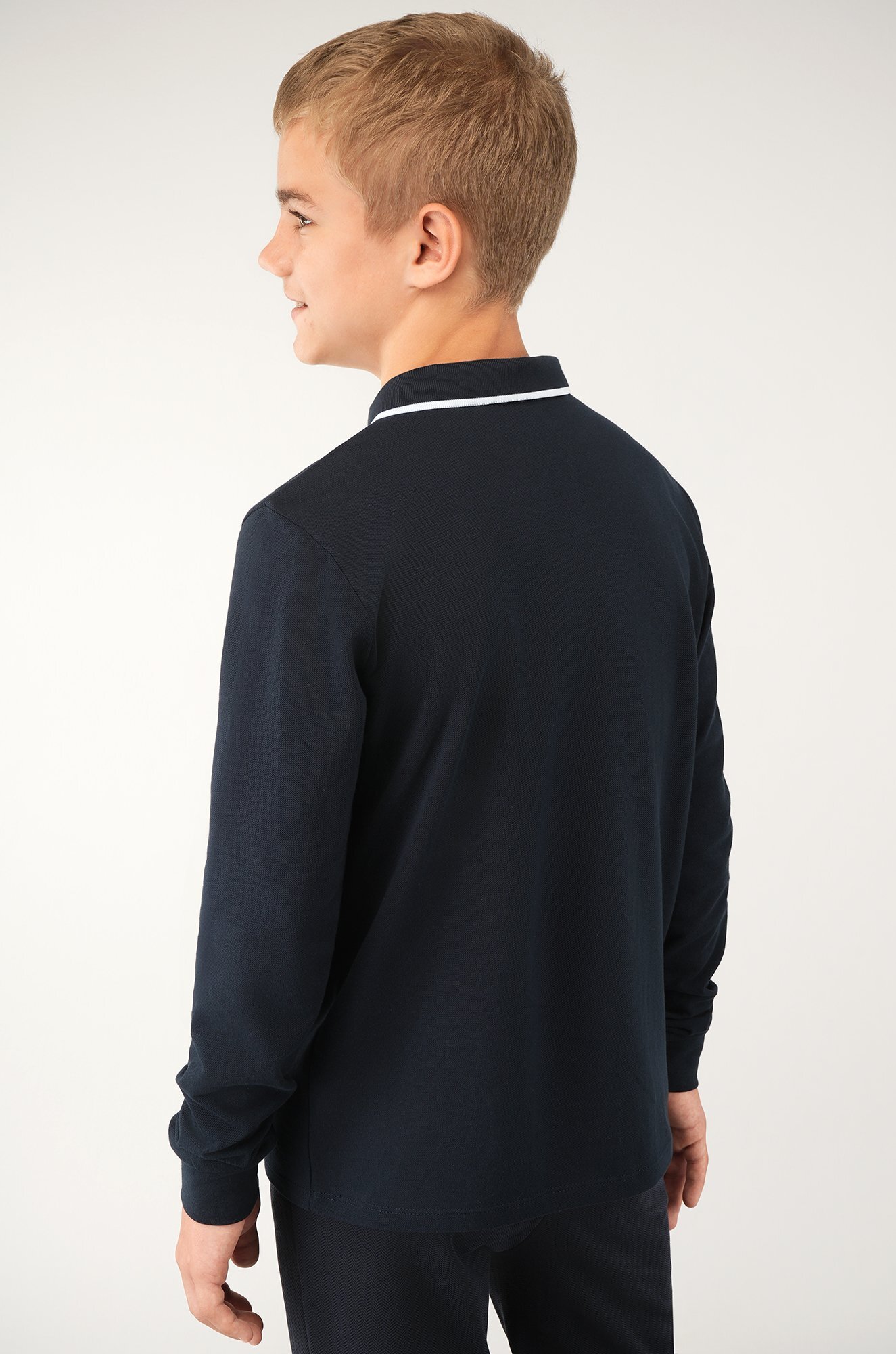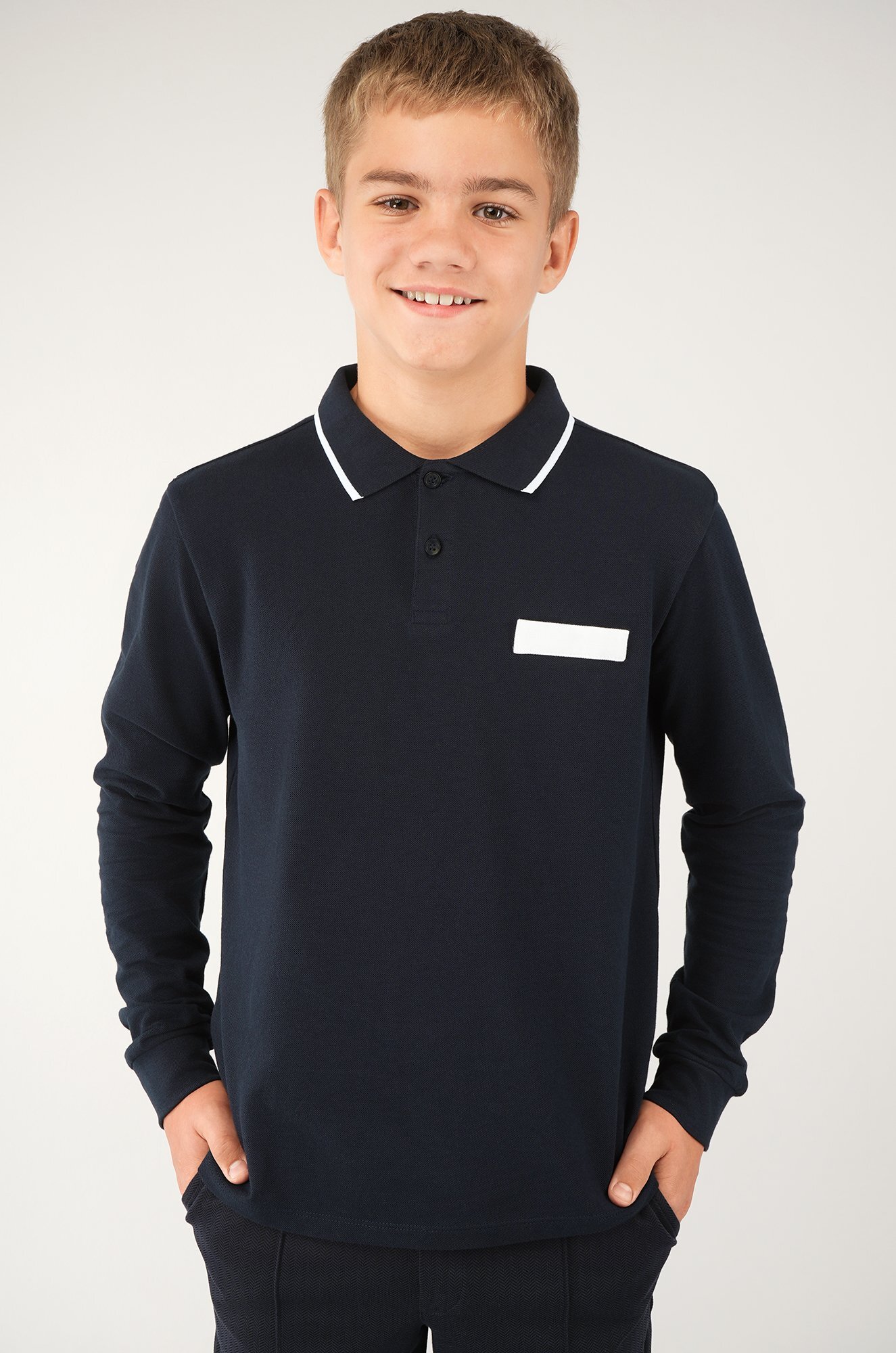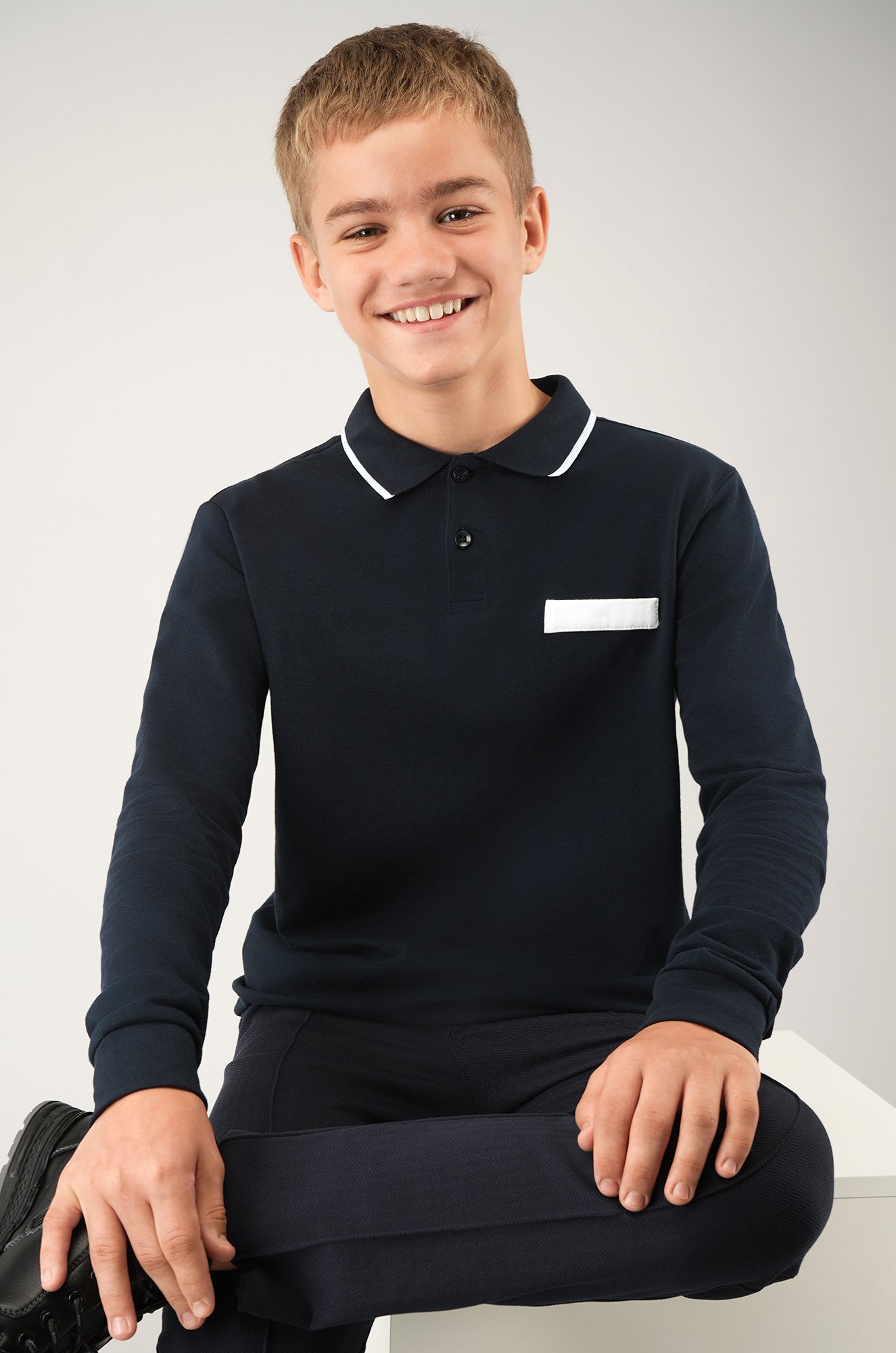 Прямой крой, вязаный воротник и застежка на пуговицы создают аккуратный силуэт. Хлопковая подростковая рубашка-поло легко подойдет как детский лонгслив и станет идеальным повседневным вариантом для многослойных образов школьника.
