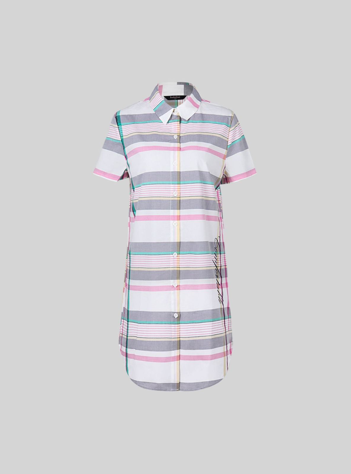 Сорочка из хлопка, серого цвета, с принтом, с короткими рукавами, с принтом-вышивкой, с воротником-отворотом, на пуговичках, прямая, свободного кроя."