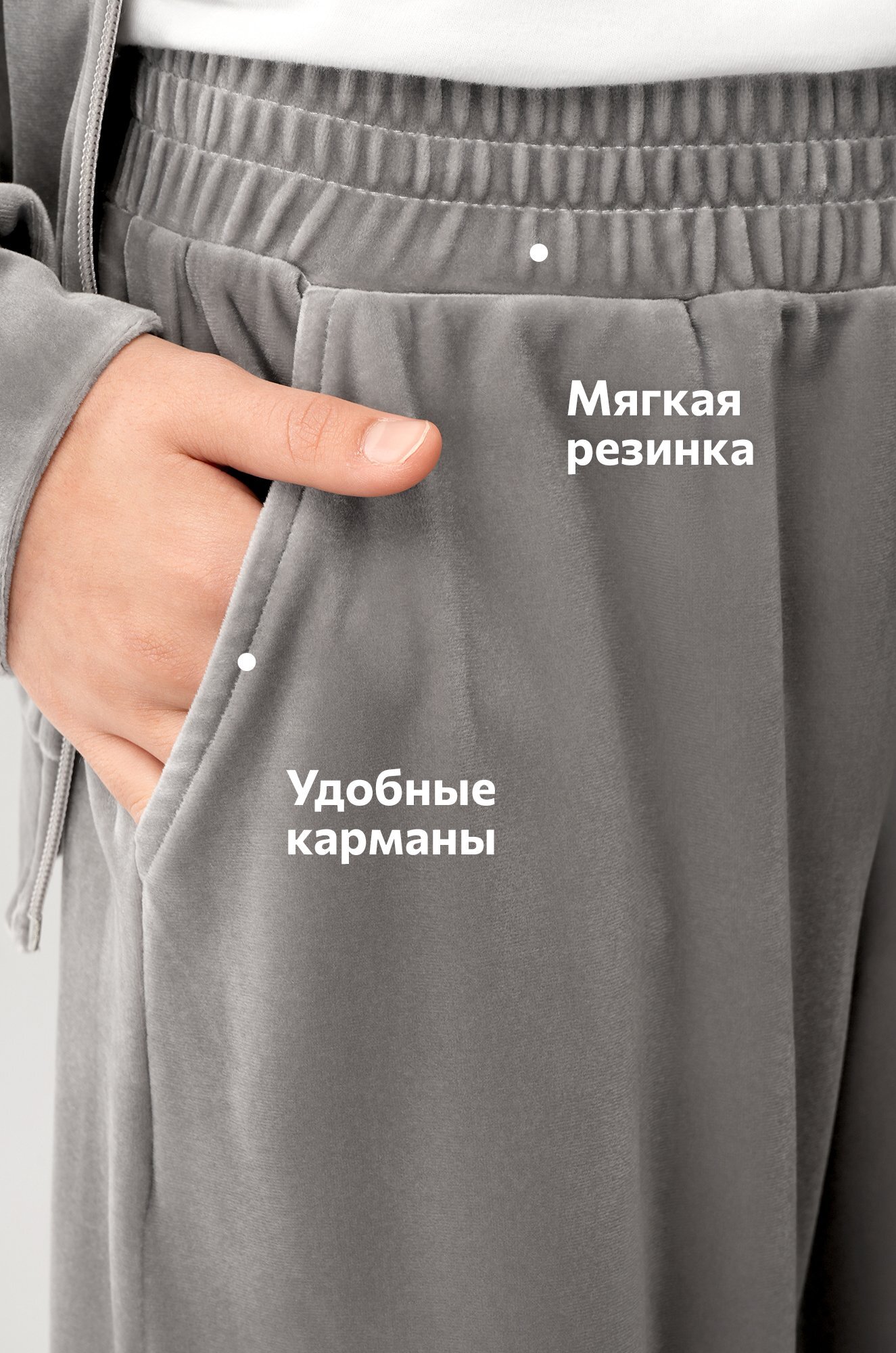 — плотная, но дышащая структура велюра (250 г/м²) сохраняет тепло и мягкость;