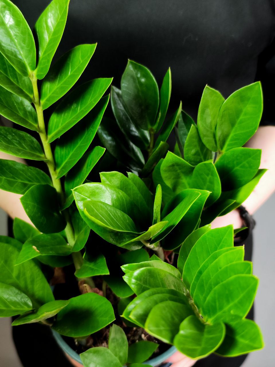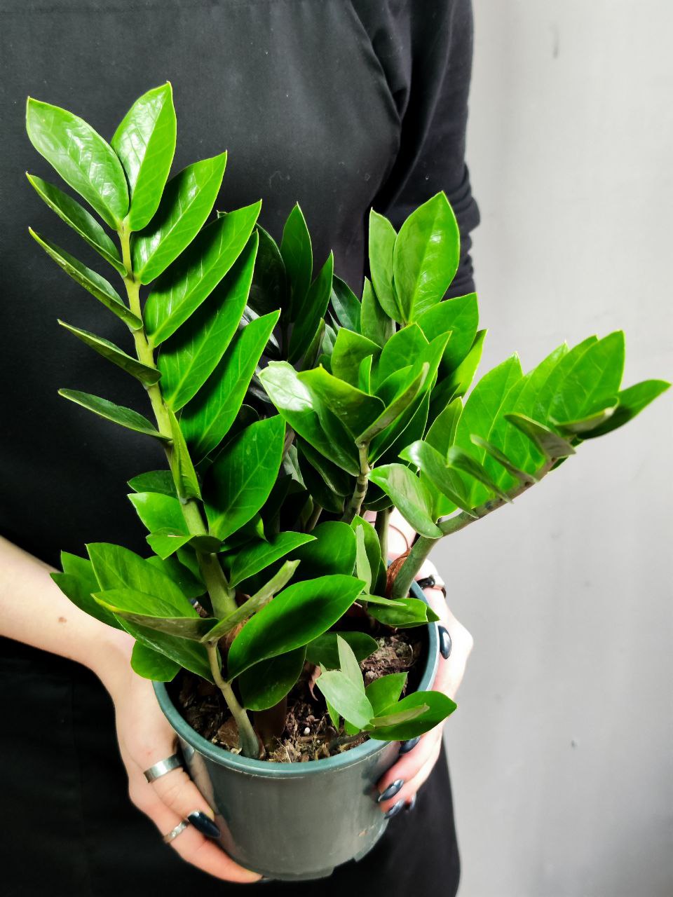 Замиокулькас, ли Долларовое Дерево (лат. Zamioculcas) - популярный яркий представитель декоративно - лиственных комнатных растений, часто в народе его называют "долларовое дерево", "цветок безбрачия" или "долларовая пальма". Замиокулькас может прожить около 10 лет и достичь в высоту аж до 150 см. По народному поверью, если зацветет замиокулькас, то хозяйка скоро выйдет замуж. Сок замиокулькаса, как и многих других представителей декоративно - лиственных может раздражать кожу и т.п., поэтому его выращивают для красоты и в пищу не употребляют.