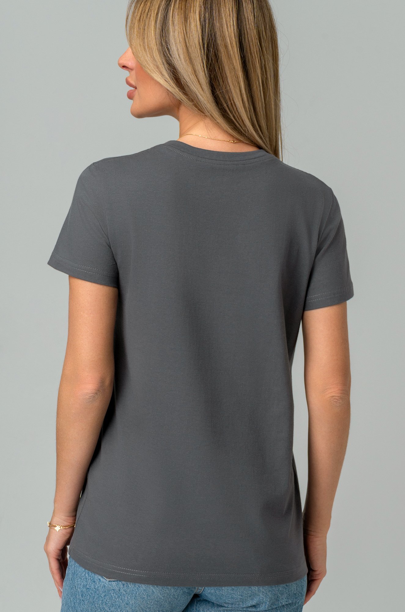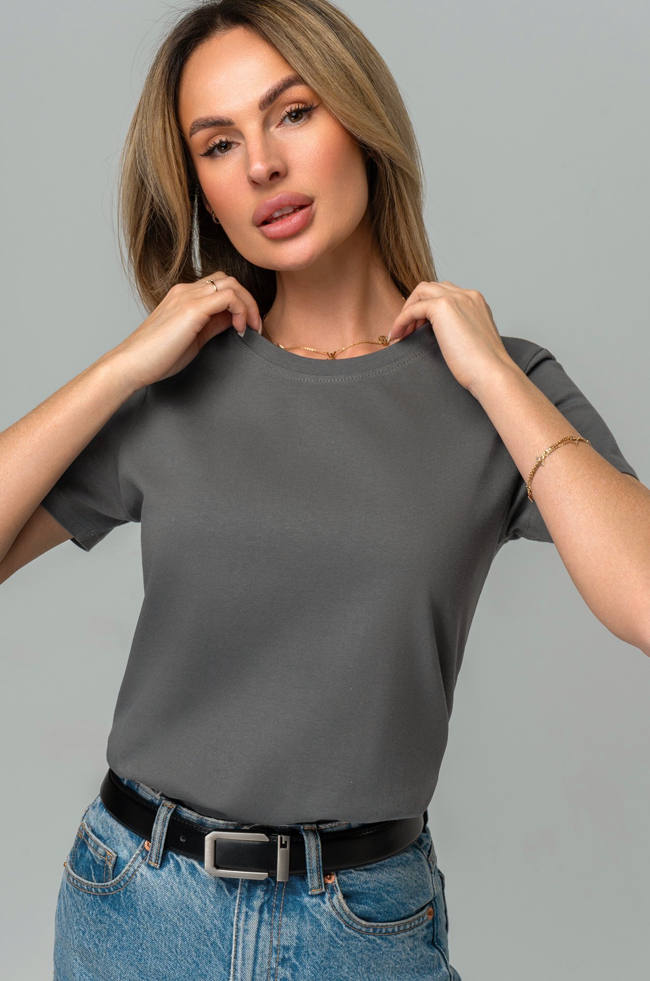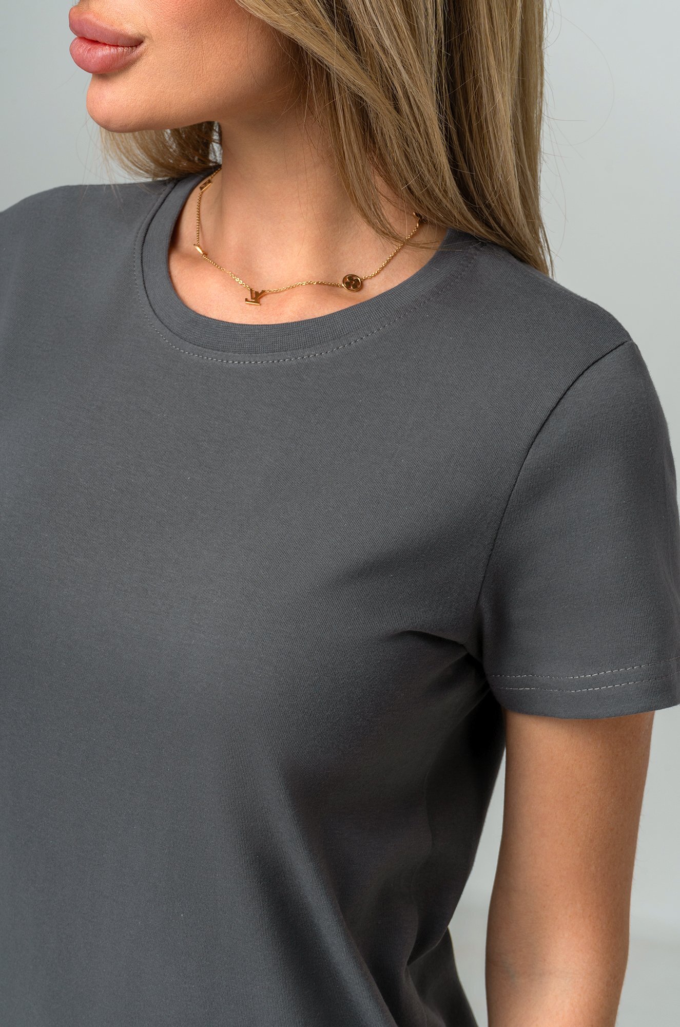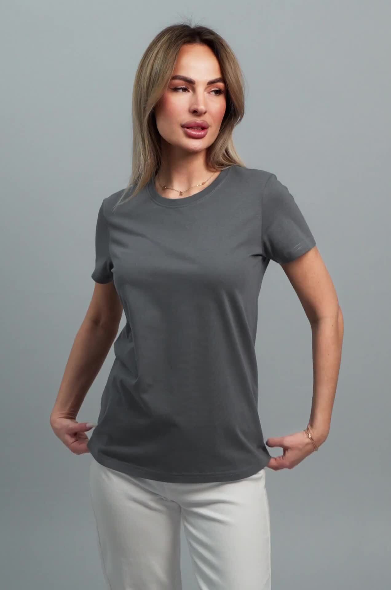 Минимализм, который говорит сам за себя! Женская футболка станет незаменимой частью гардероба каждой женщины. Классическая футболка выполнена из 100% хлопка. Однотонная футболка серого цвета — идеальный выбор для тех, кто ценит стиль, комфорт и простоту в каждой детали.