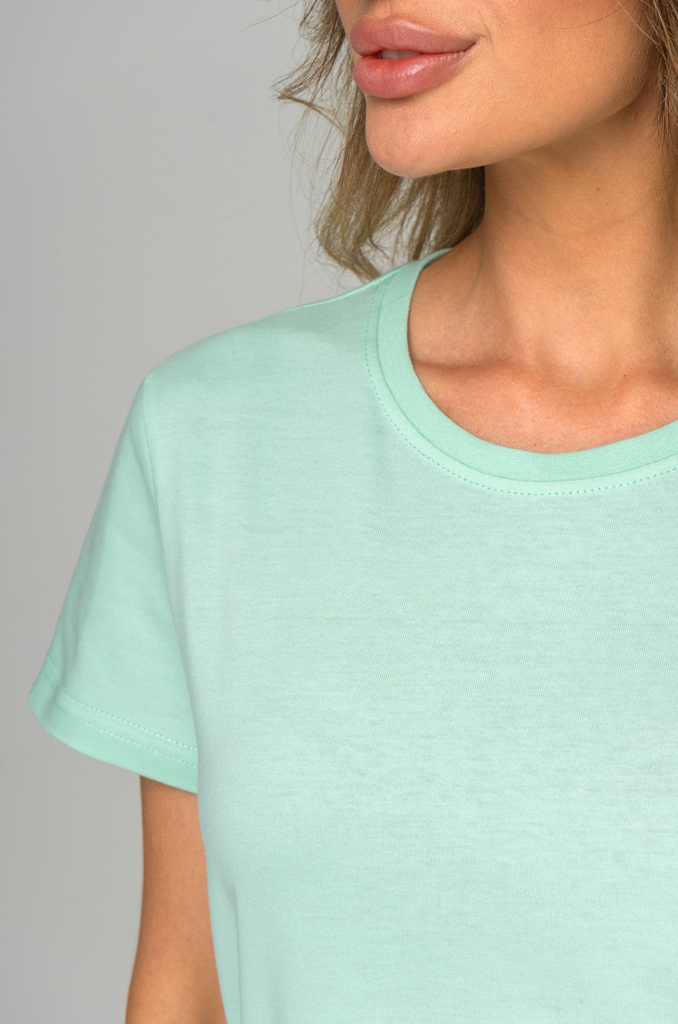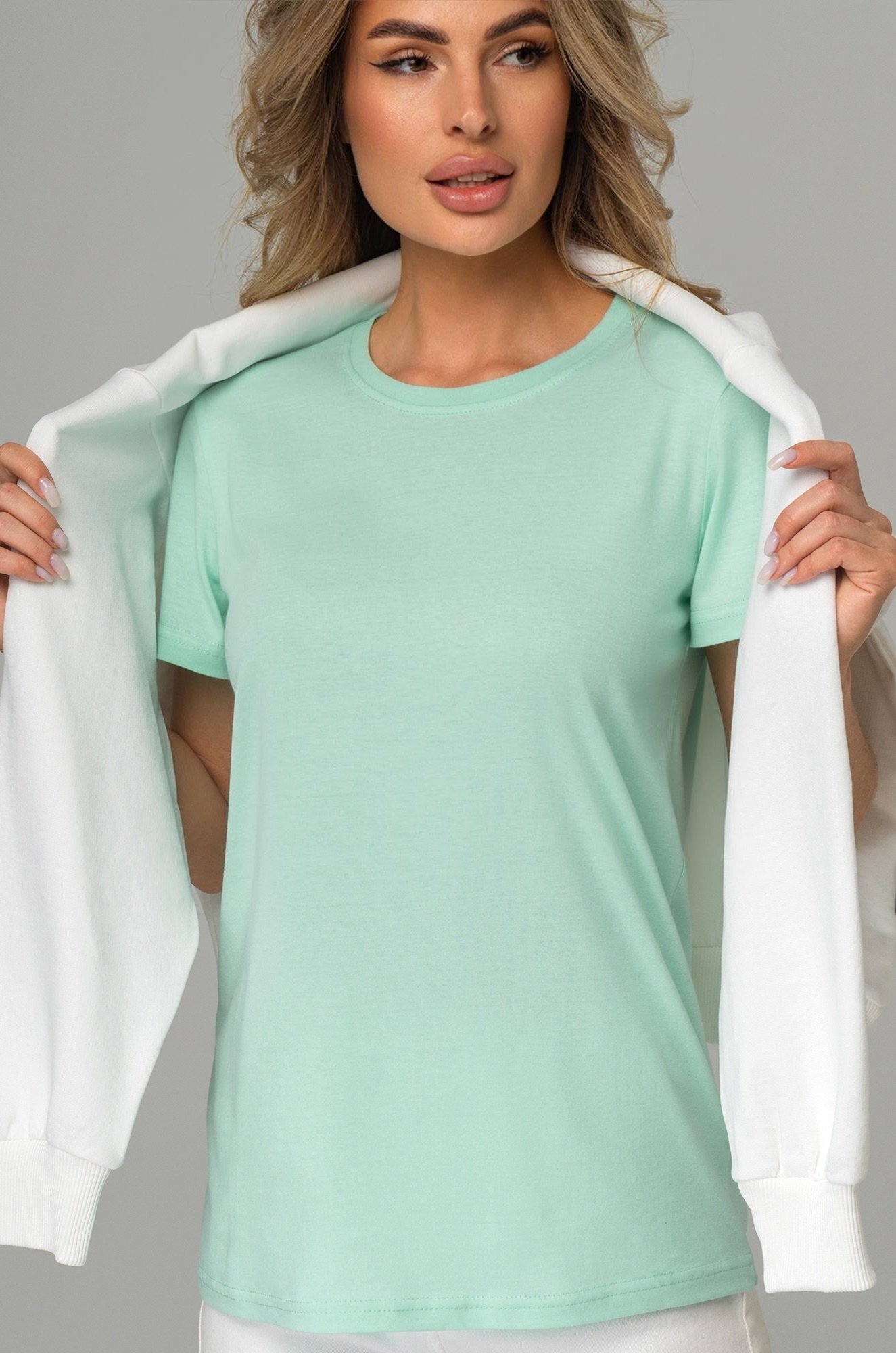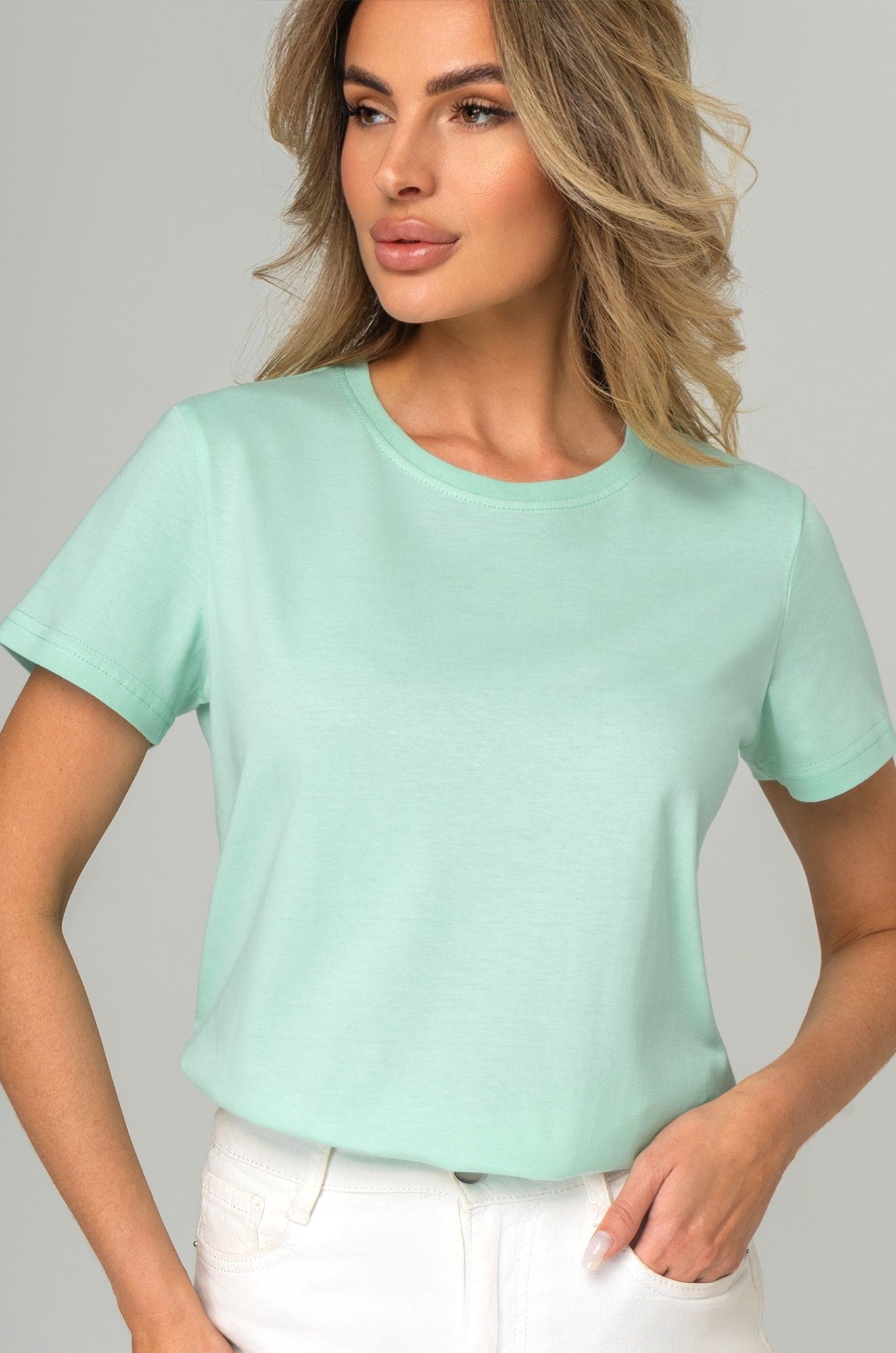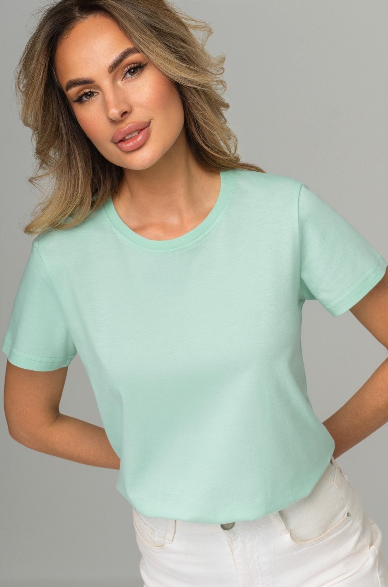 Базовая женская футболка станет незаменимой частью гардероба каждой женщины. Классическая футболка выполнена из 100% хлопка. Однотонная ментоловая футболка — идеальный выбор для тех, кто ценит стиль, комфорт и простоту в каждой детали.