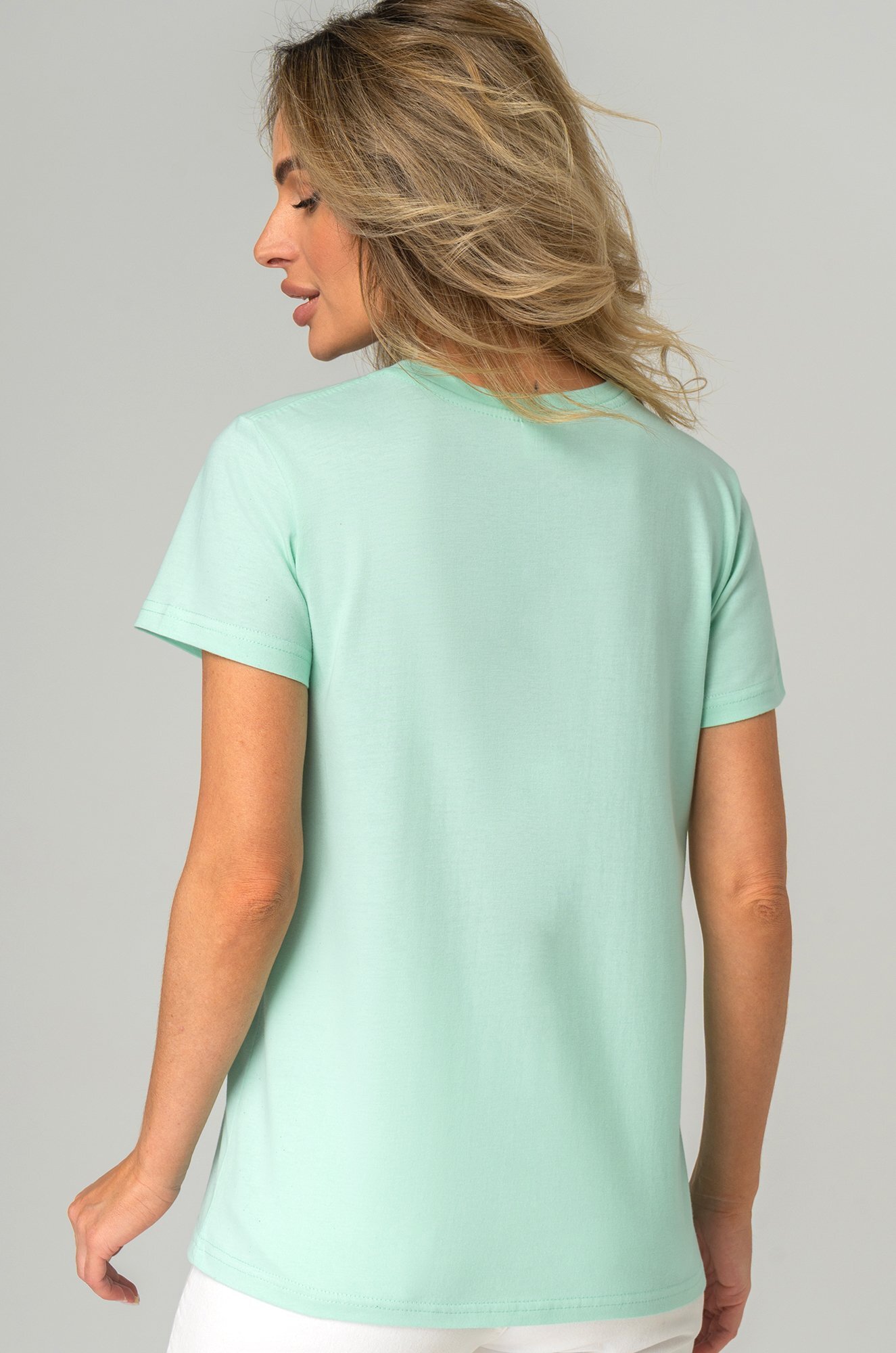 Трикотажная футболка подойдет как для повседневных образов, так и для создания лаконичного образа в кэжуал (casual) стиле. Футболка мятного цвета станет отличным решением для отдыха на природе, прогулок летом.