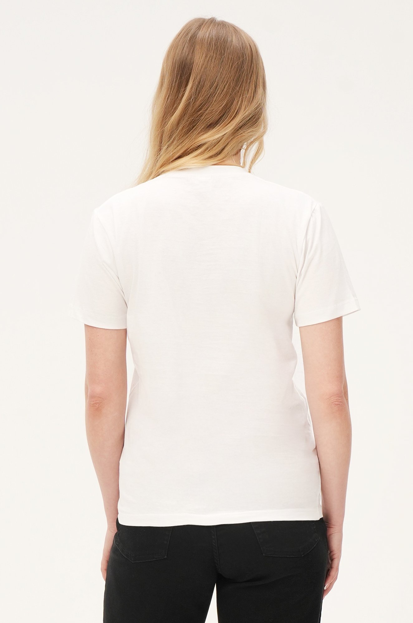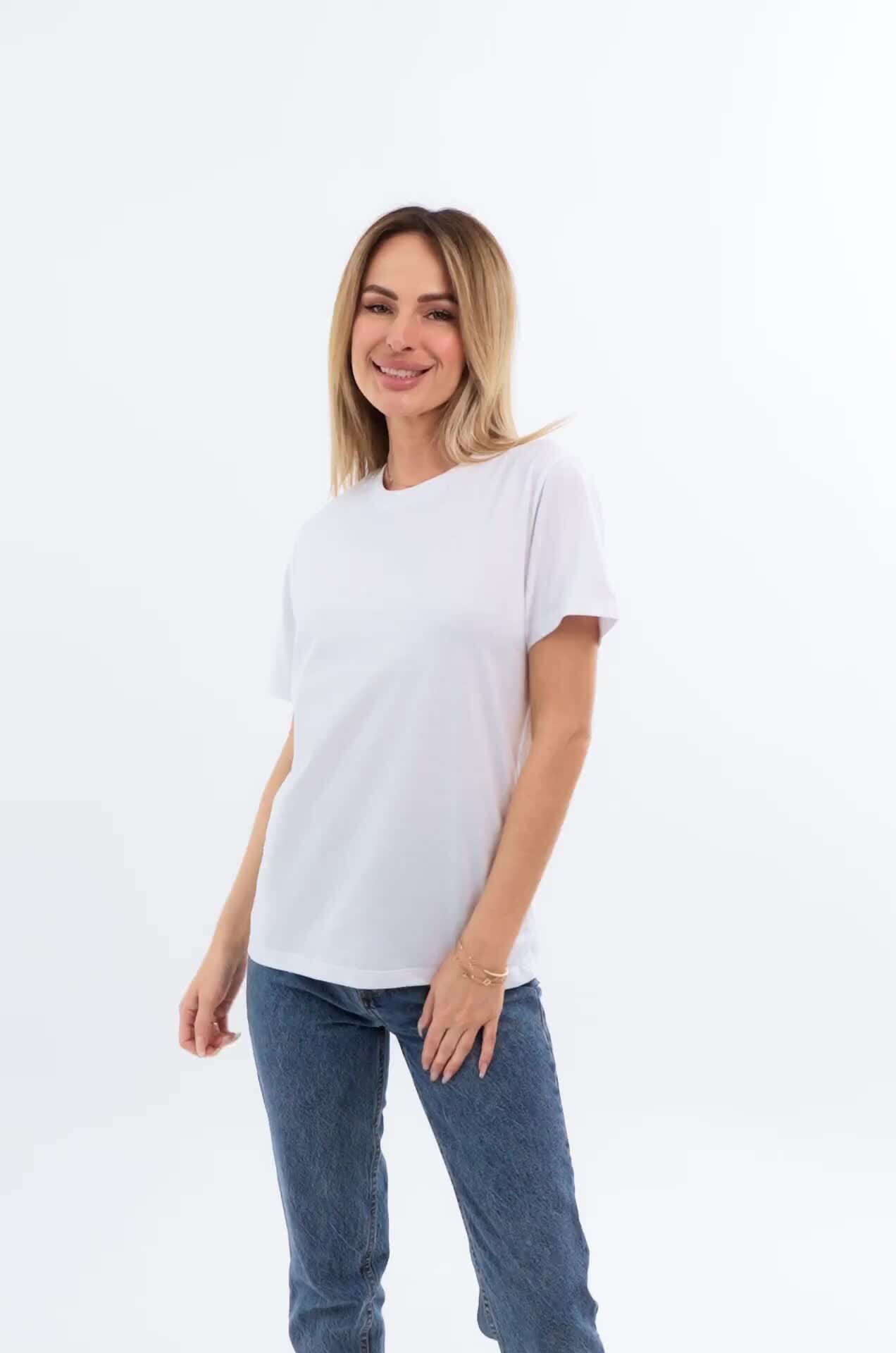 Однотонная женская футболка – тот случай, когда не нужно придумывать, что надеть. Белая футболка универсальна. Классическая модель с коротким рукавом выполнена из натурального 100% хлопка.
