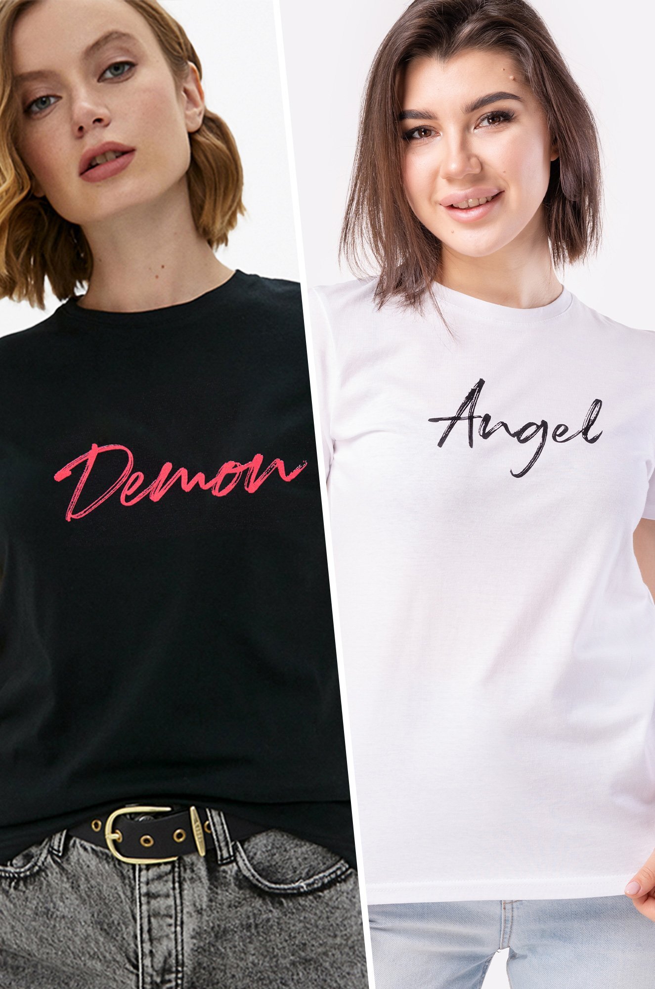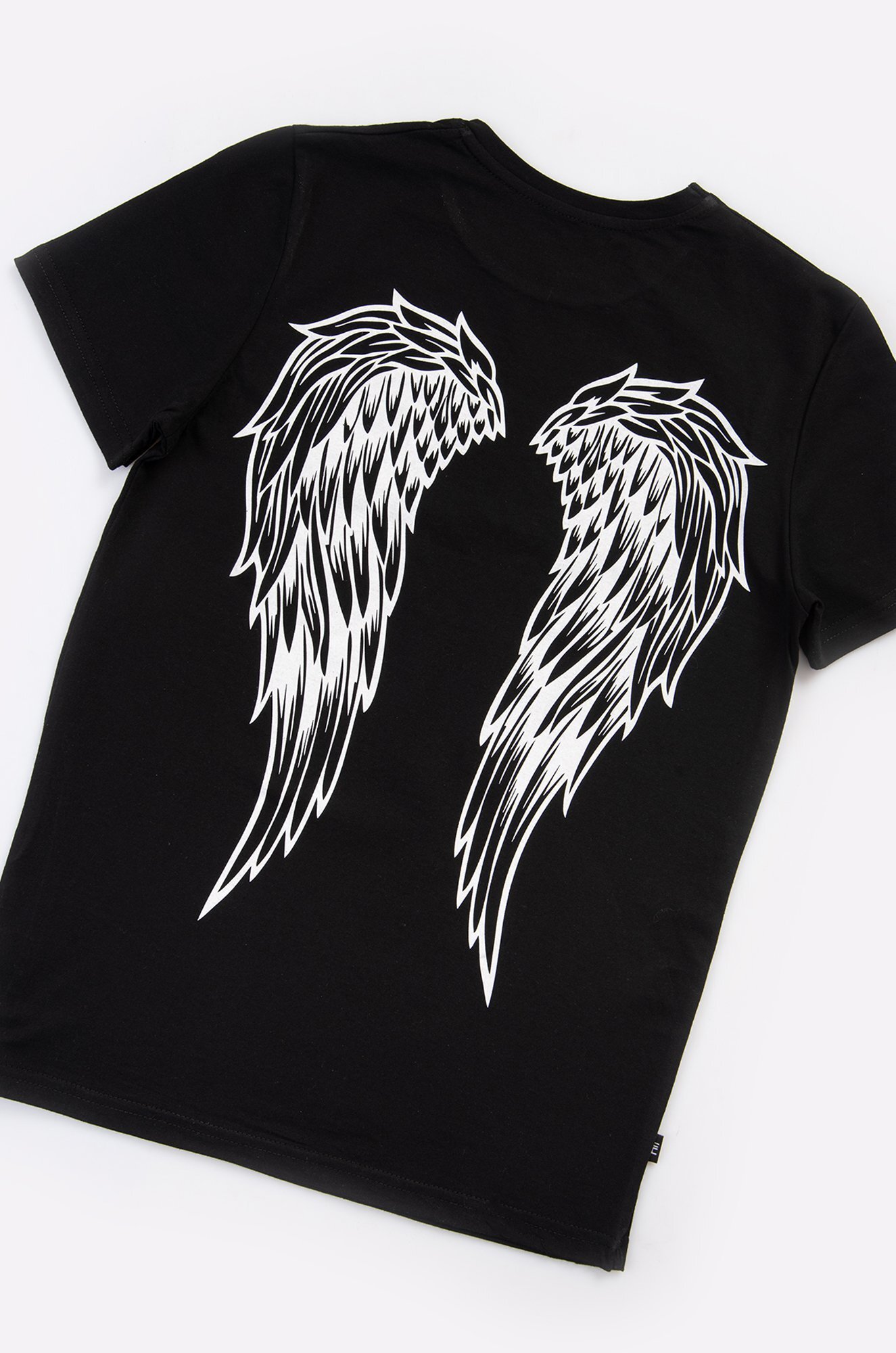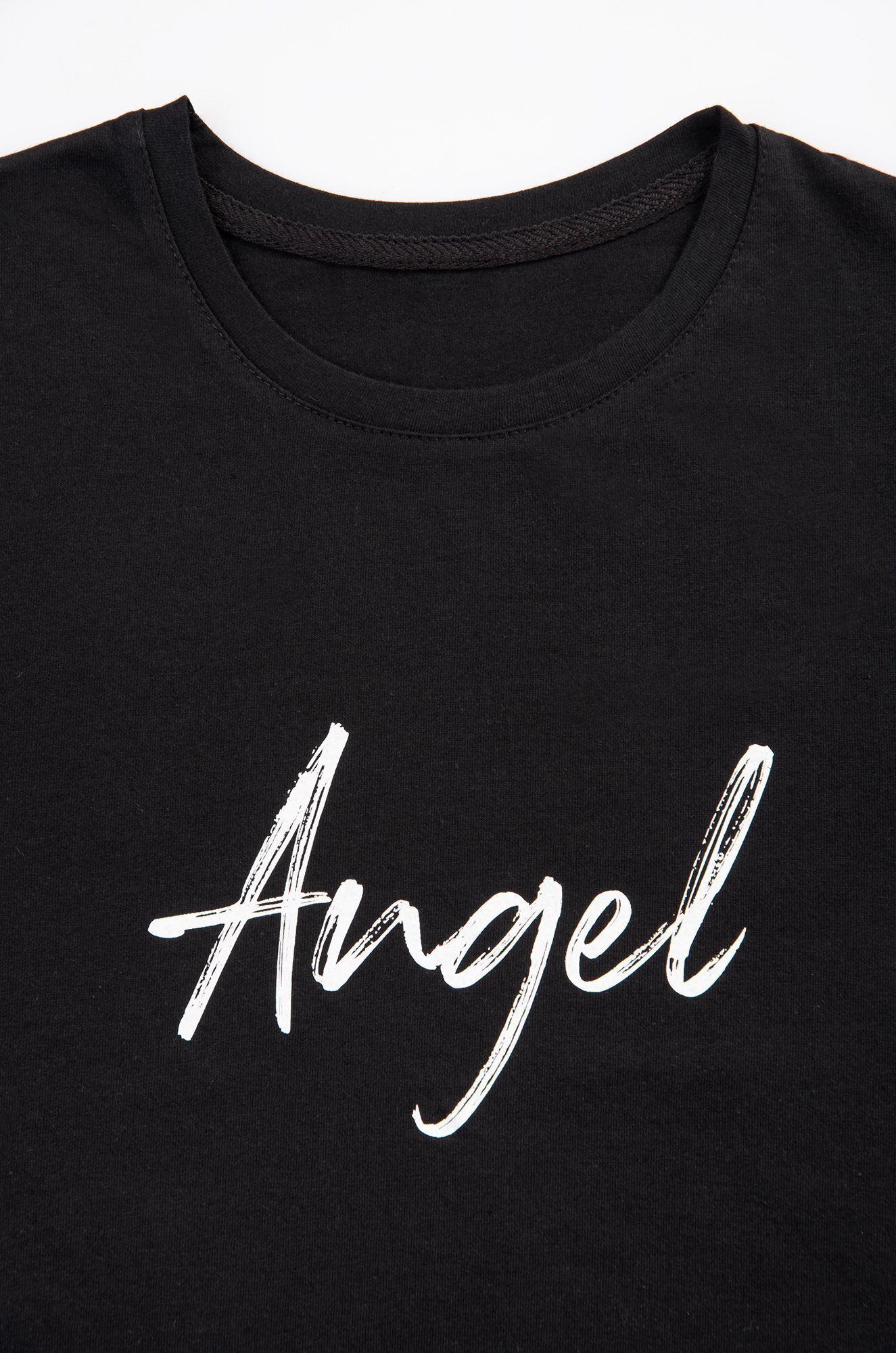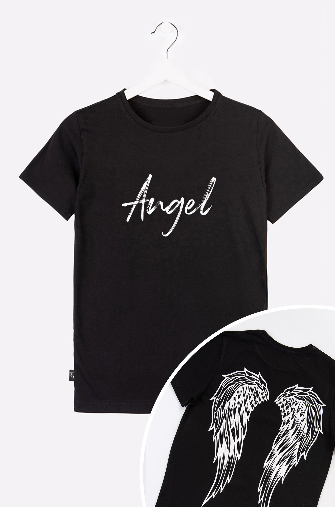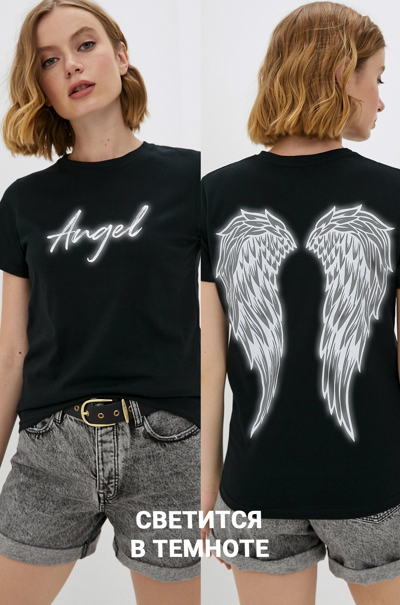 Стильная футболка с надписью Angel на груди и принтом Крылья на спине придаст вам загадочности!