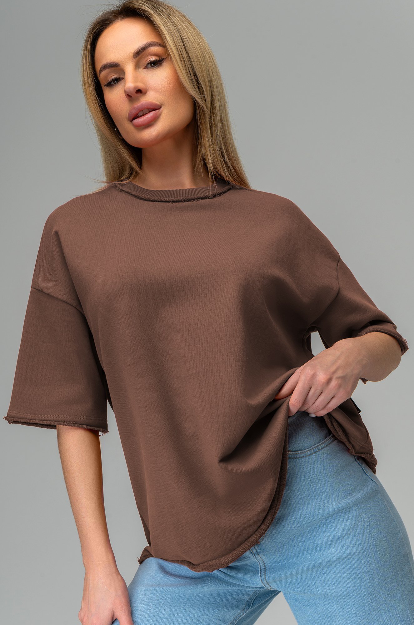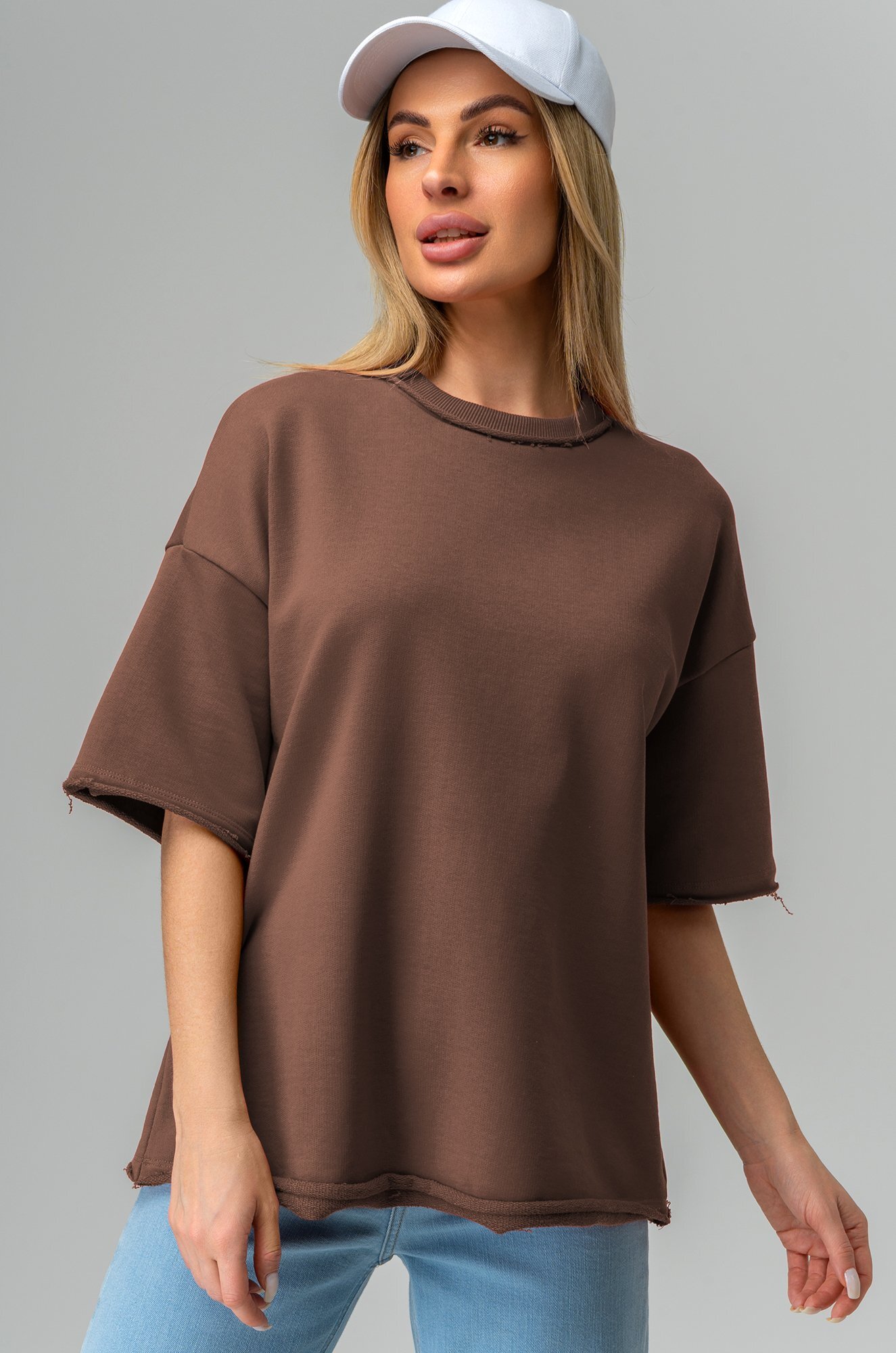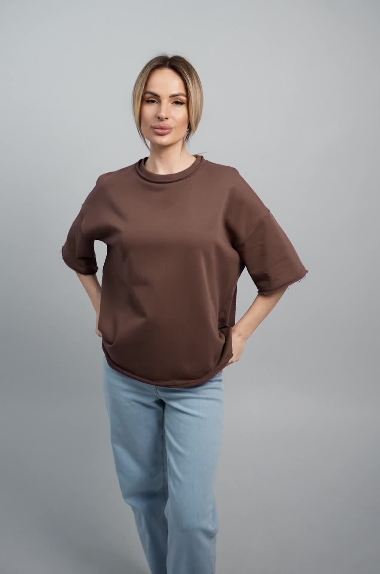 Женская футболка оверсайз легко впишется в любой повседневный образ. Базовая коричневая футболка создана для тех, кто ценит простоту и утончённую элегантность.