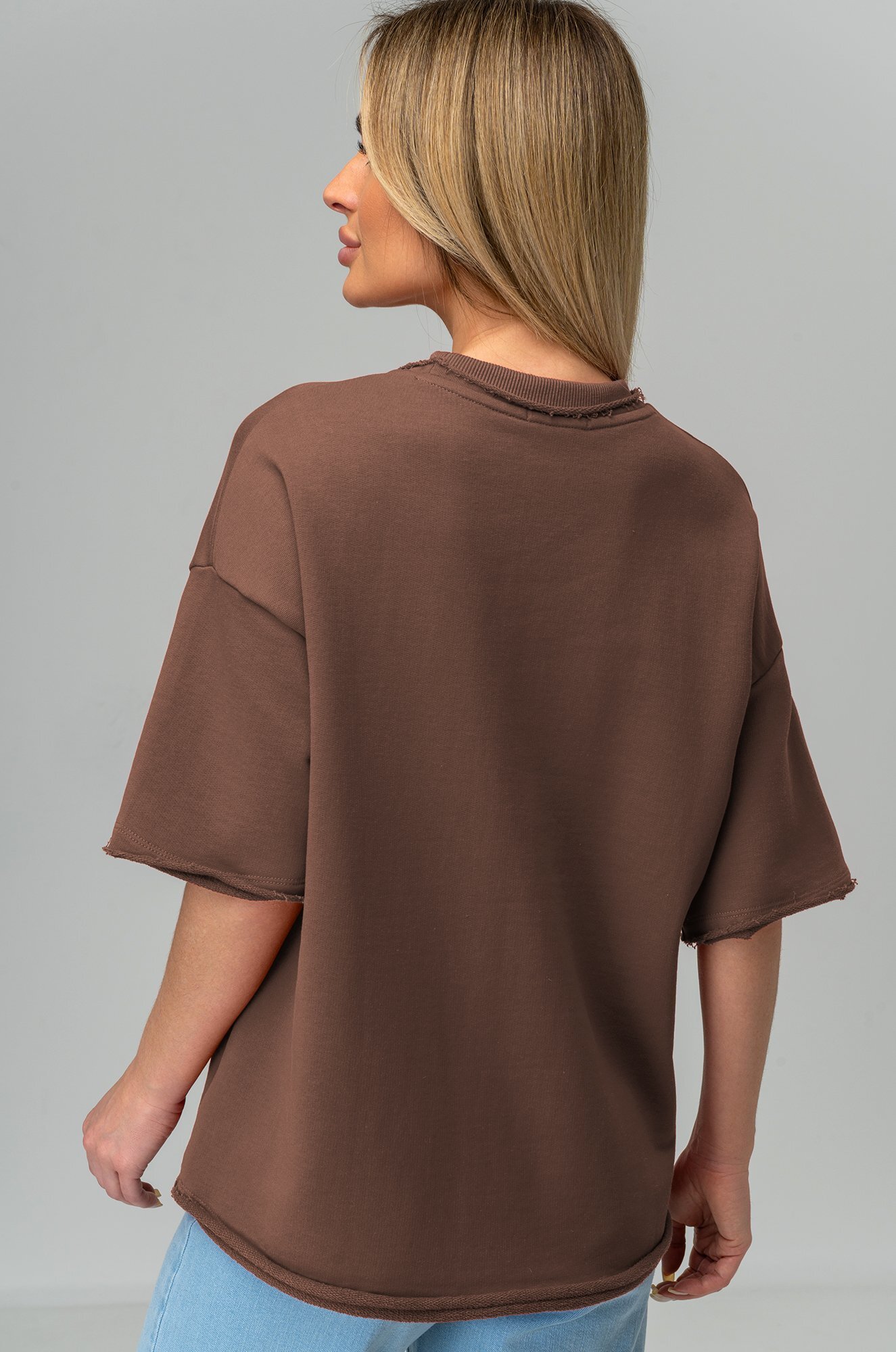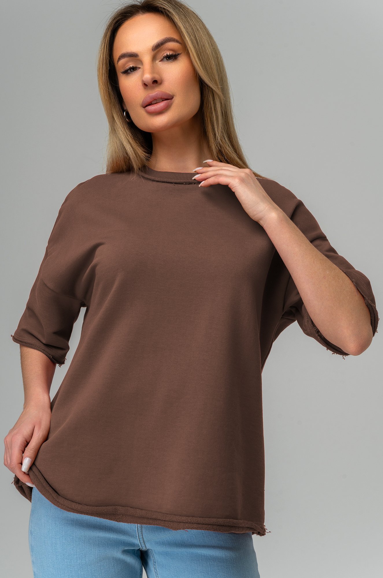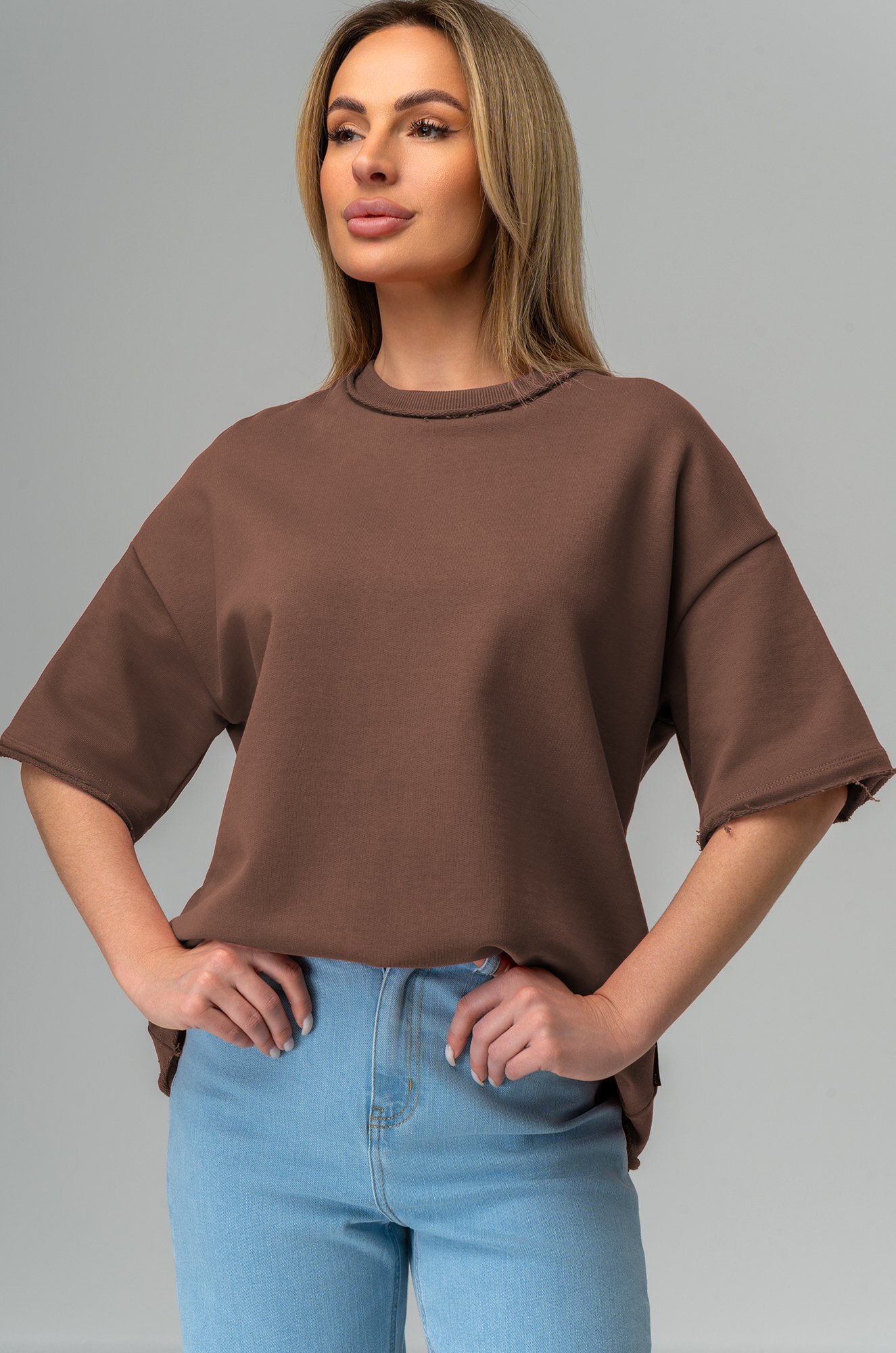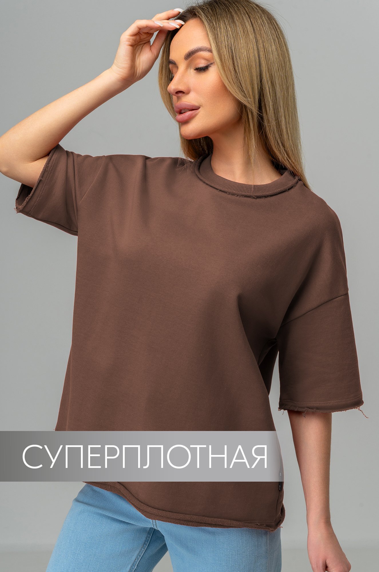 Женская футболка оверсайз легко впишется в любой повседневный образ. Базовая коричневая футболка создана для тех, кто ценит простоту и утончённую элегантность.