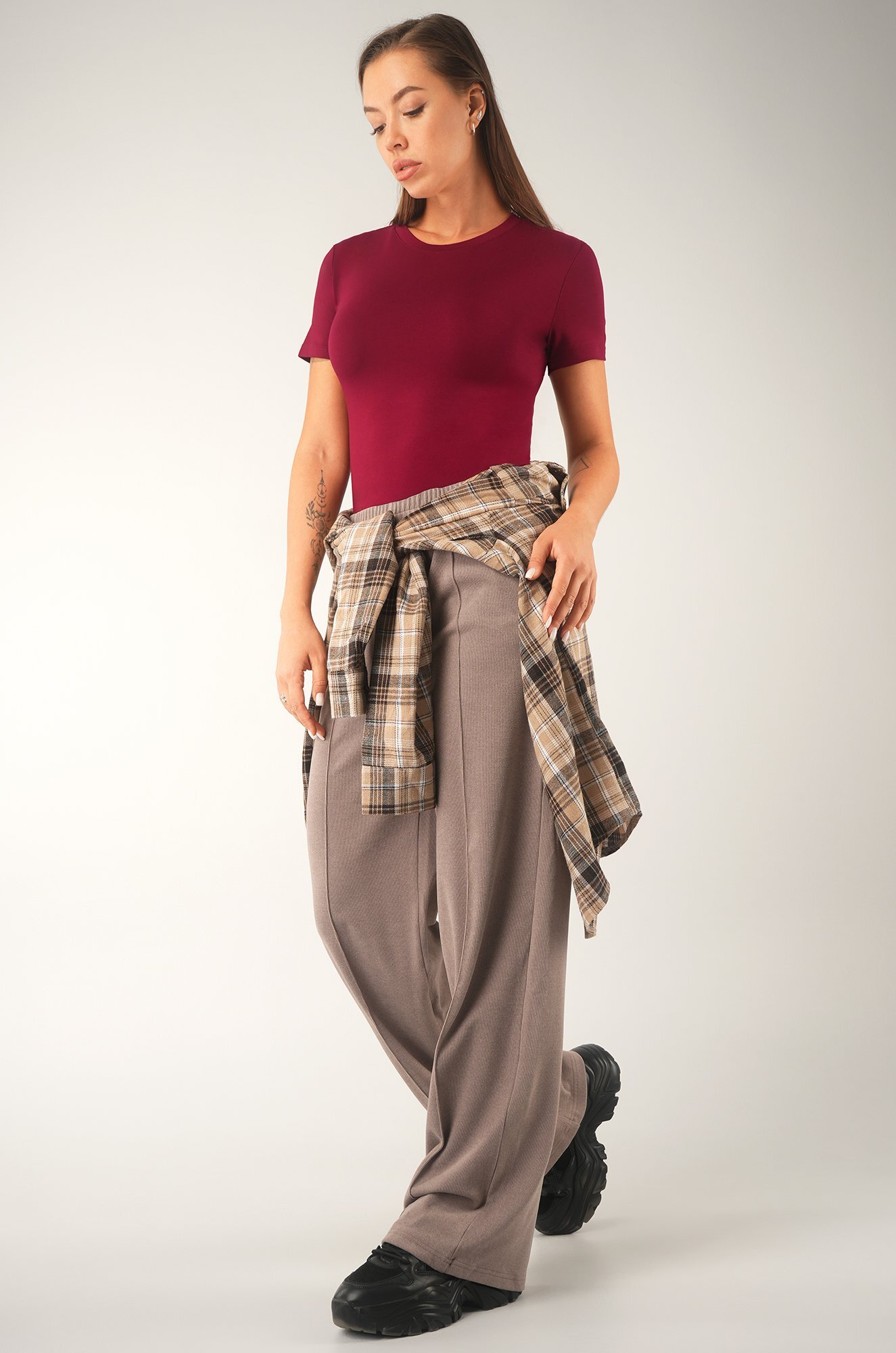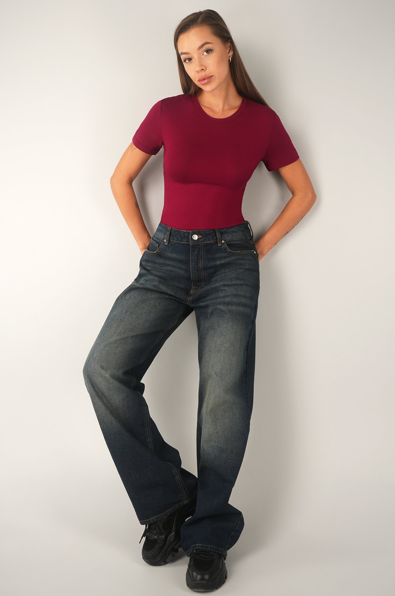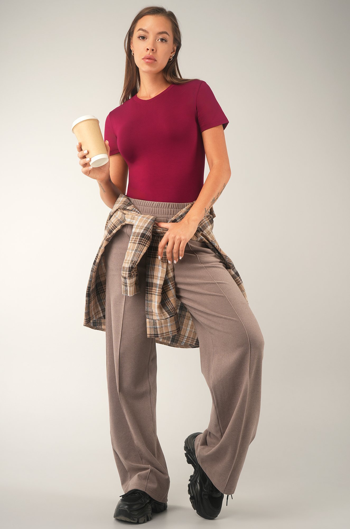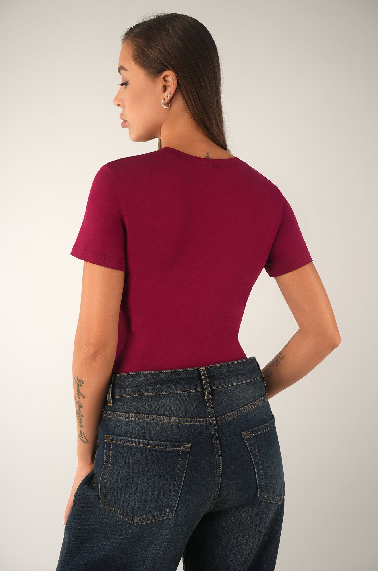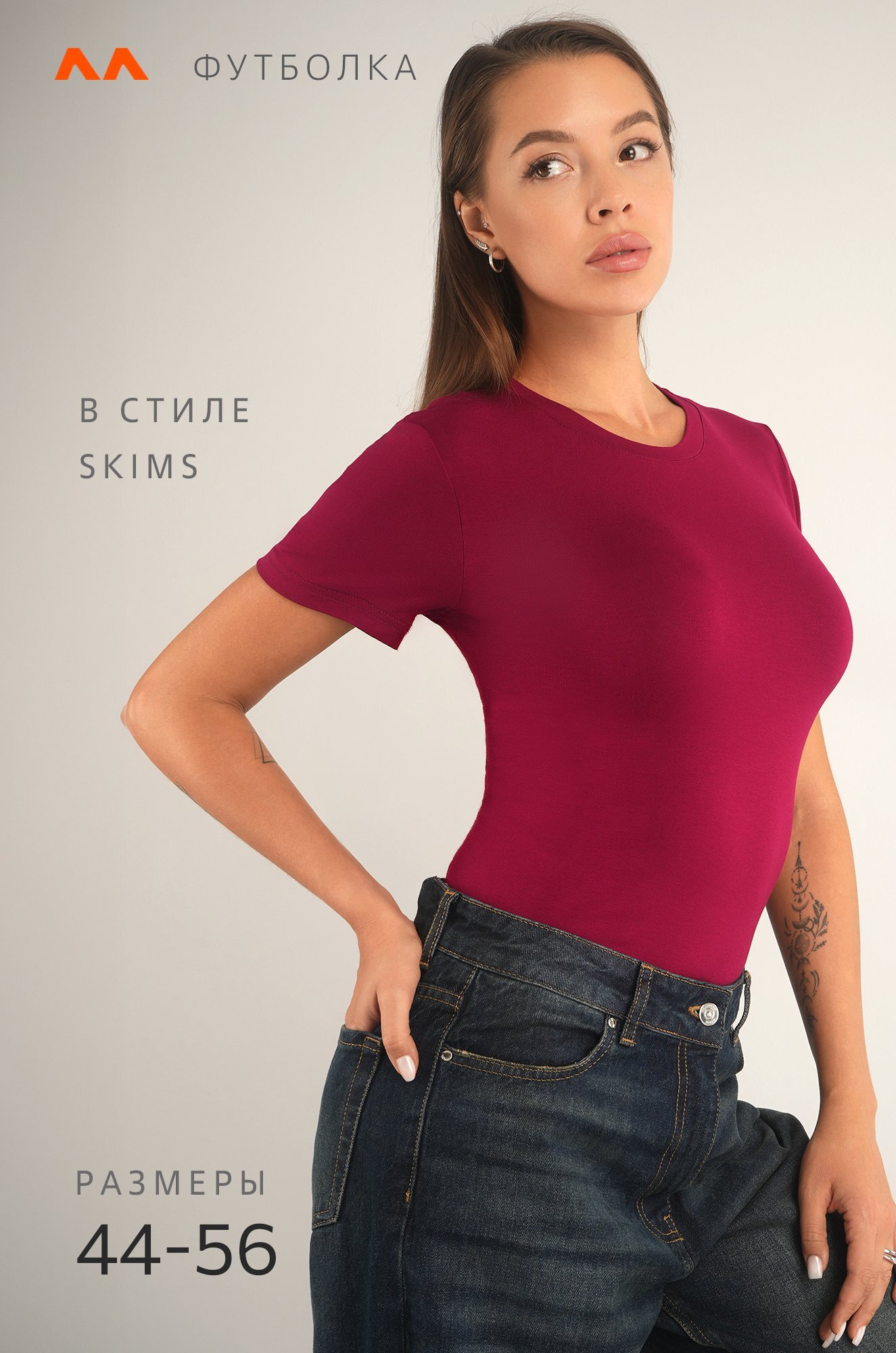 Летняя футболка оттенка бургунди идеальна для повседневных образов в стиле смарт кэжуал (smart casual). Вискозная обтягивающая футболка оттенка марсала – прекрасный вариант на лето.