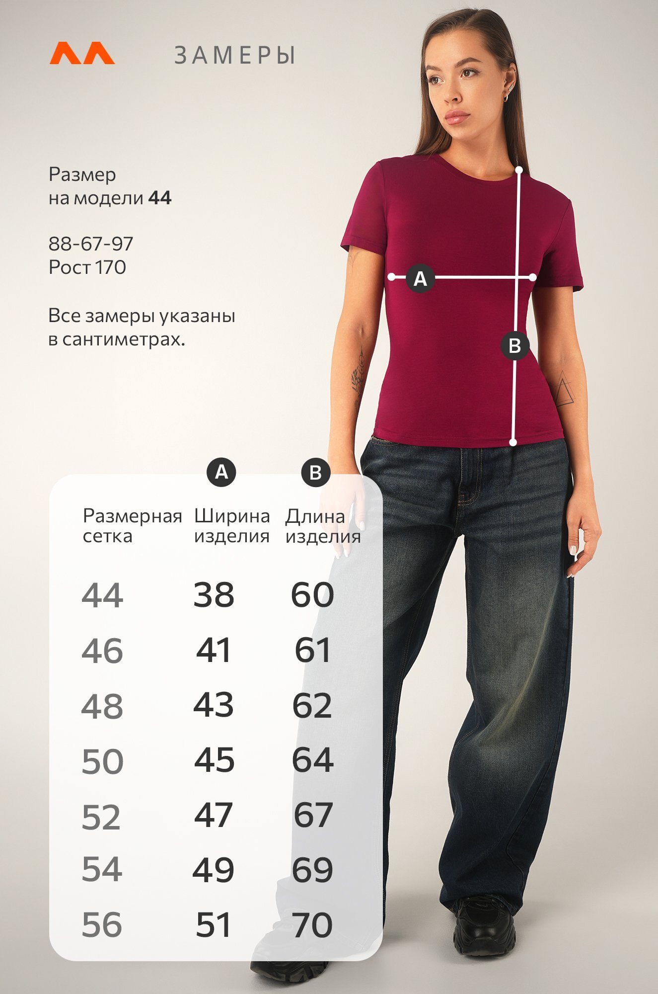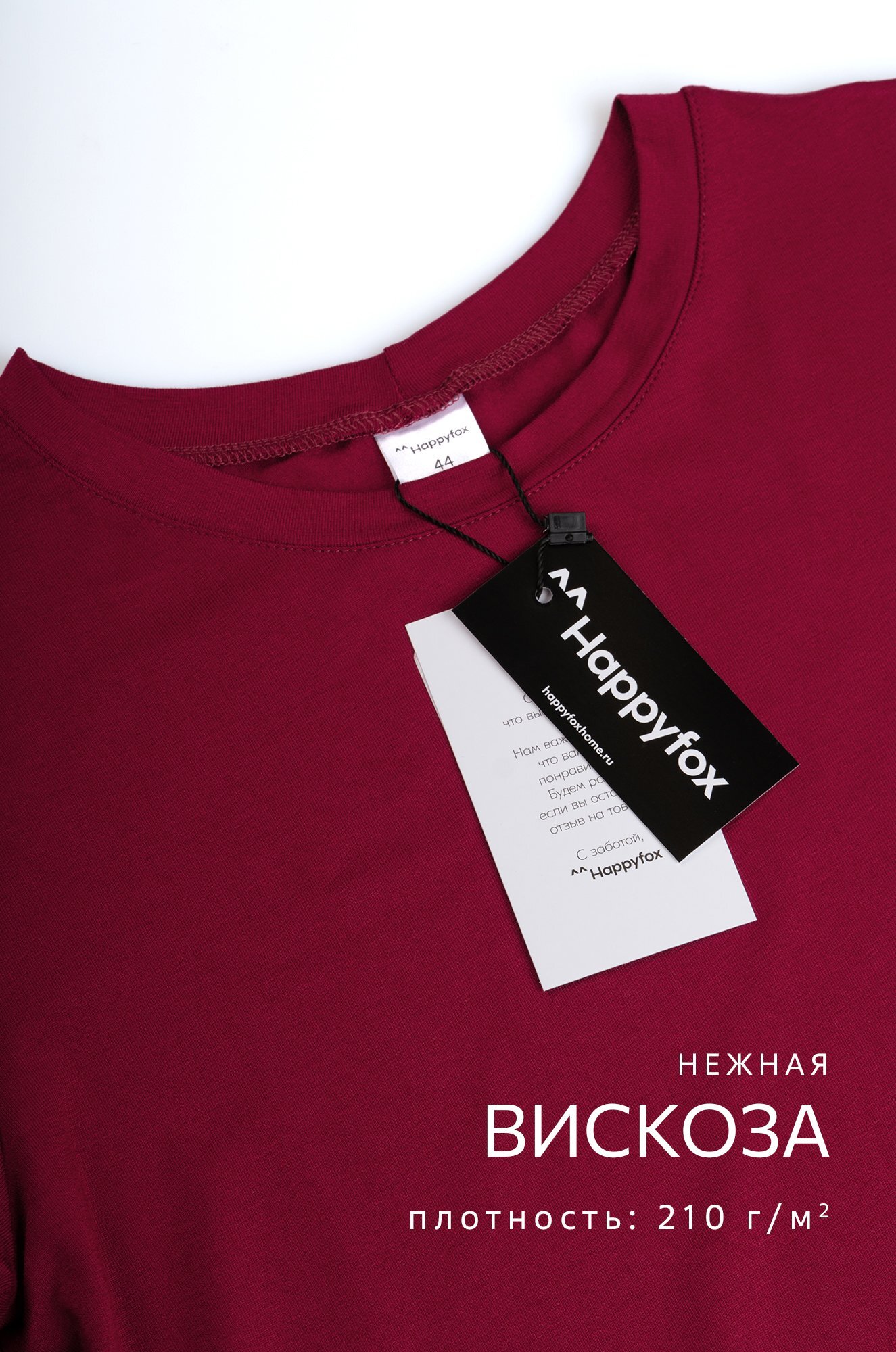 Однотонная бордовая футболка выполнена из вискозы. Мягкая ткань ― не слишком плотная и не слишком тонкая. Такая футболка пригодится в любом сезоне!