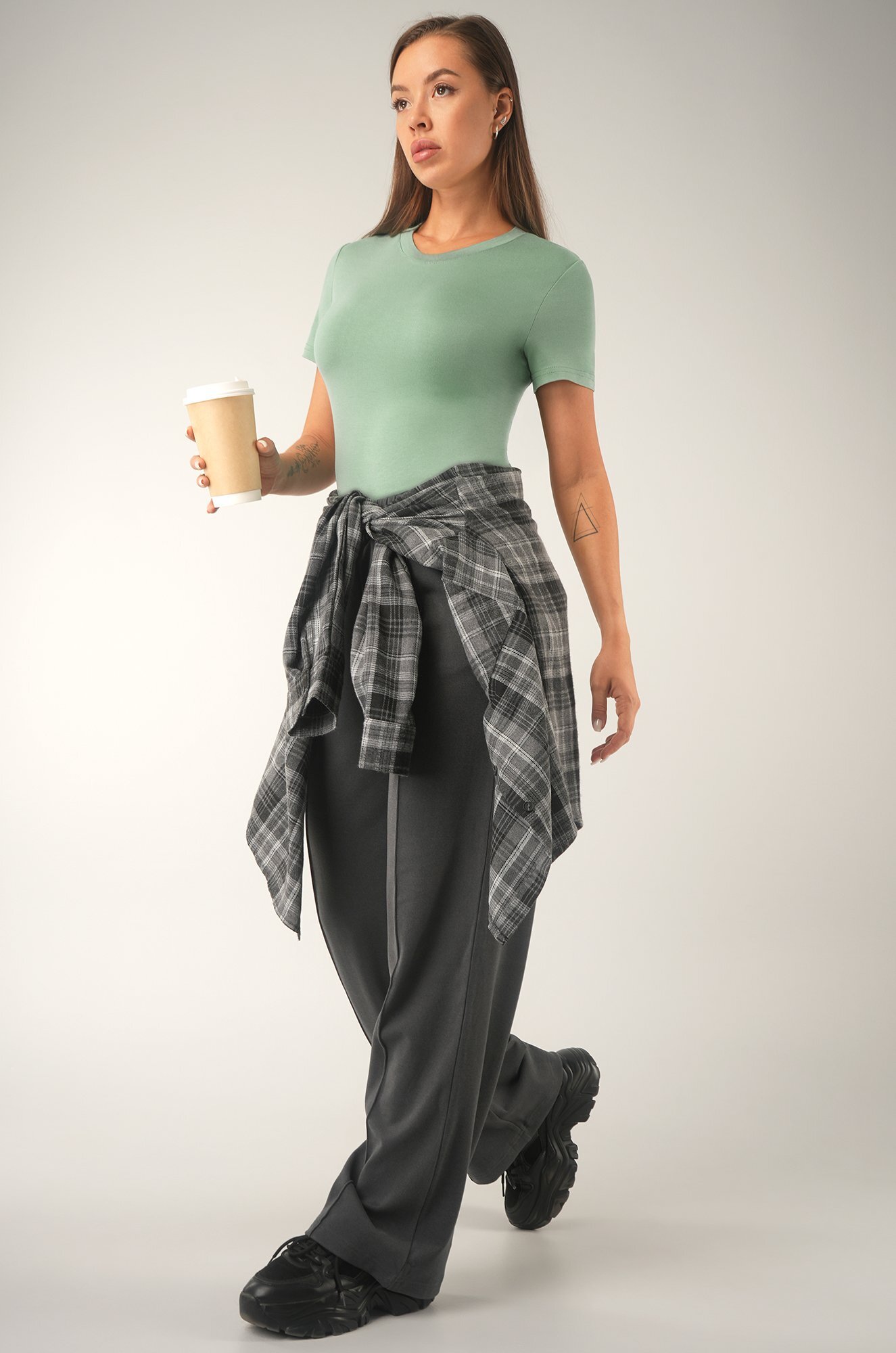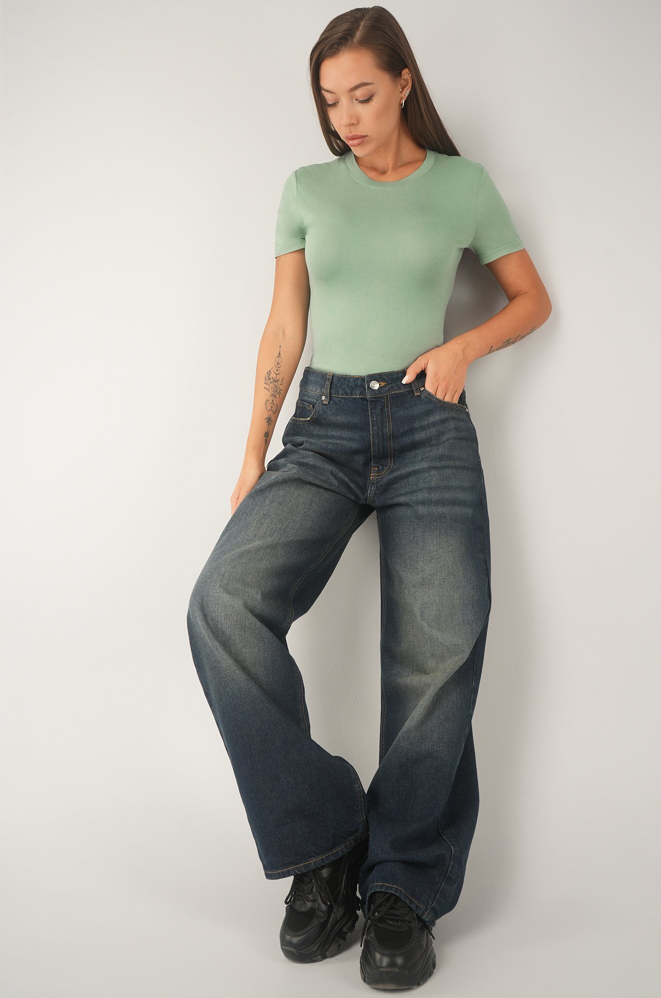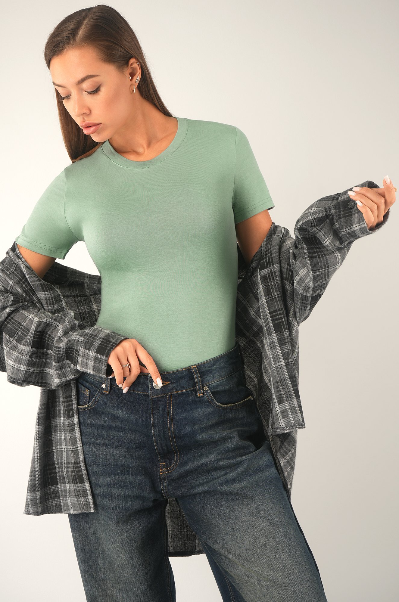 Миксуйте лаконичную футболку в минималистичных образах, добавляя акценты.