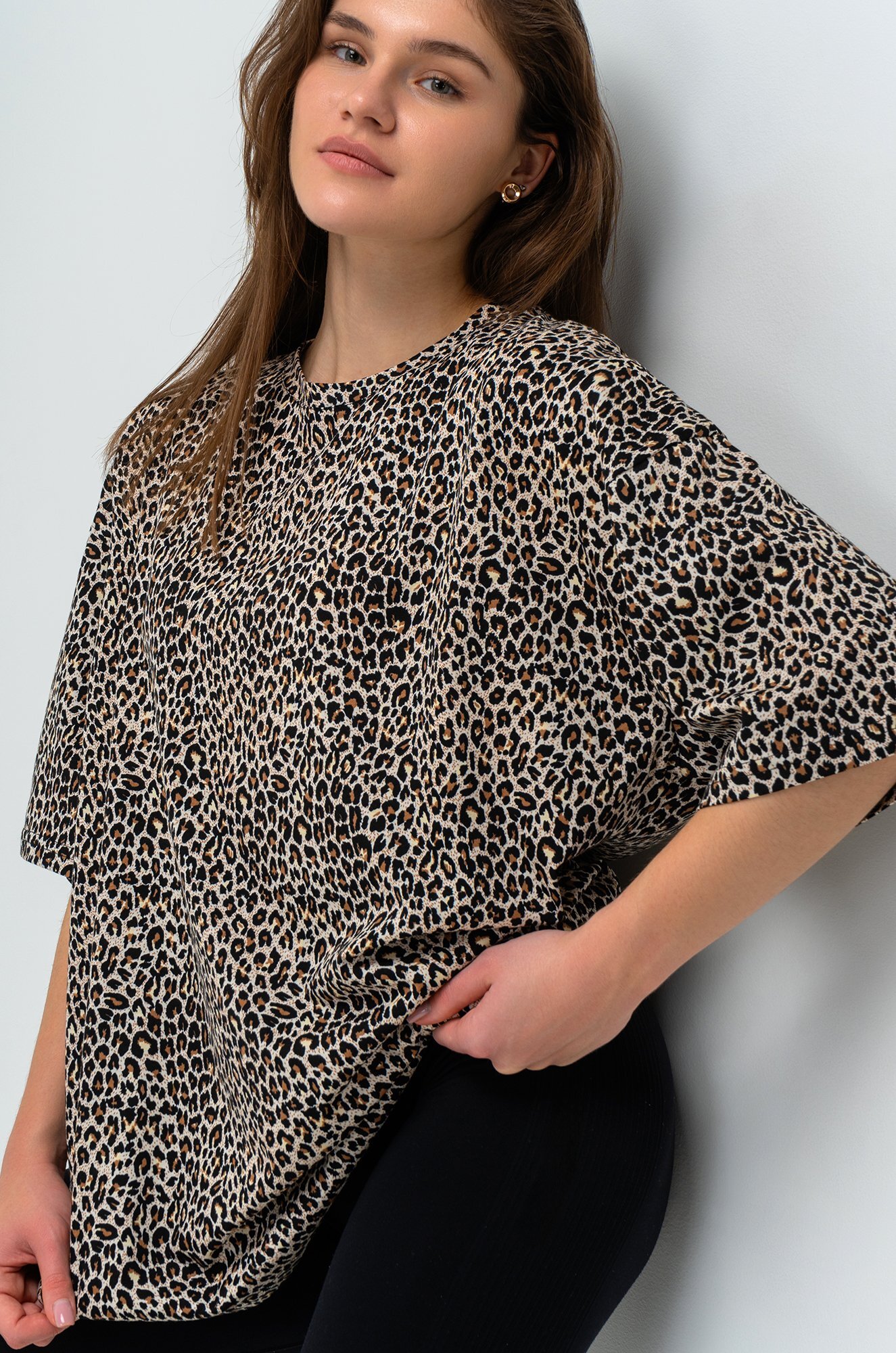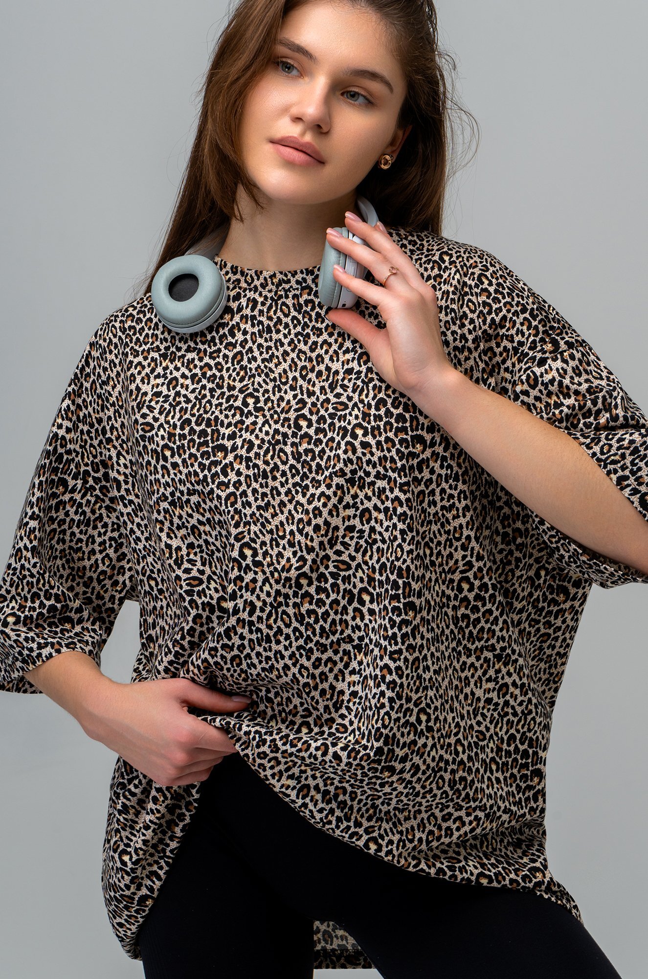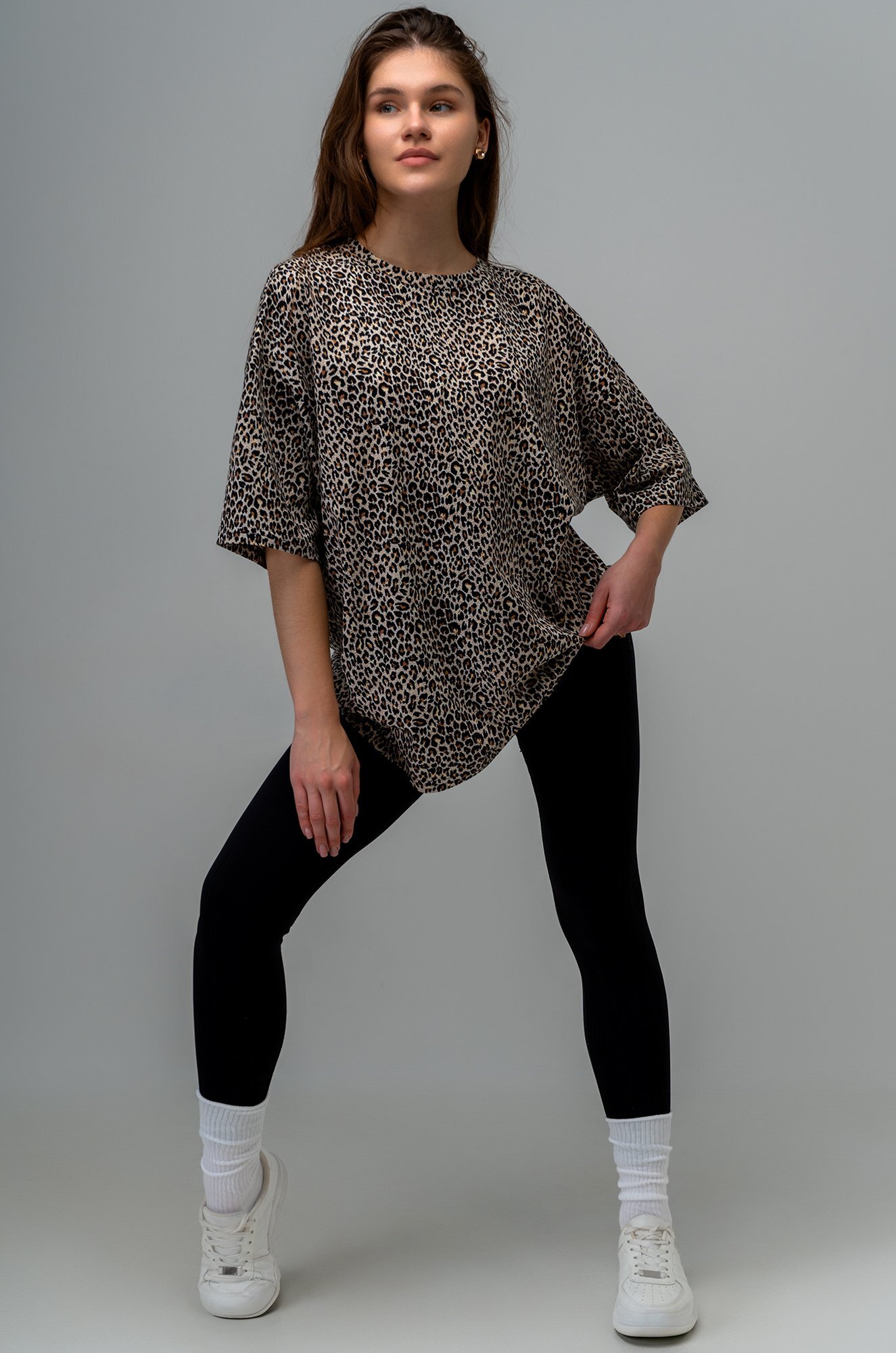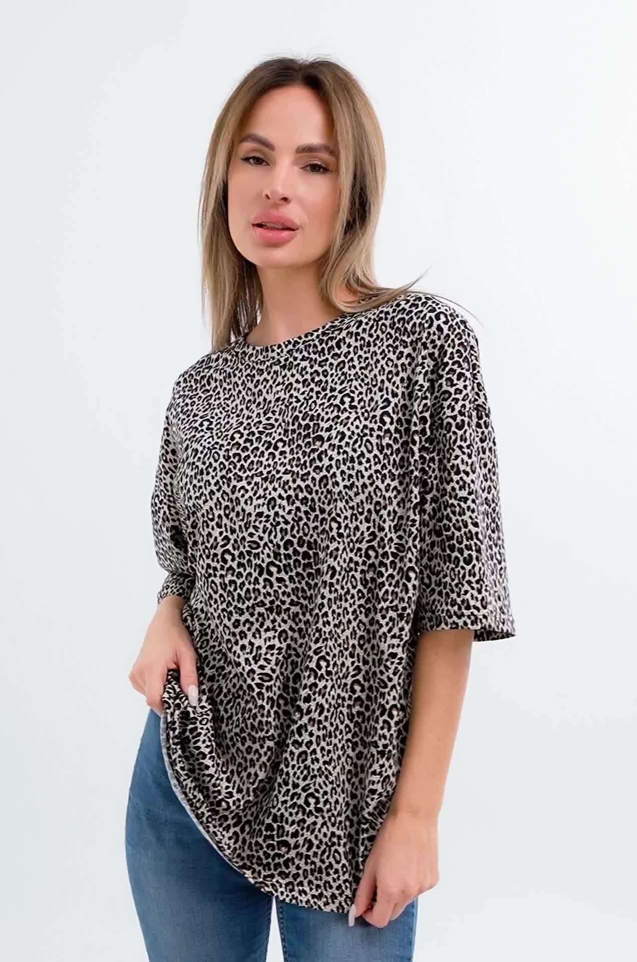 Леопардовая женская футболка оверсайз — классный акцент в повседневном образе.