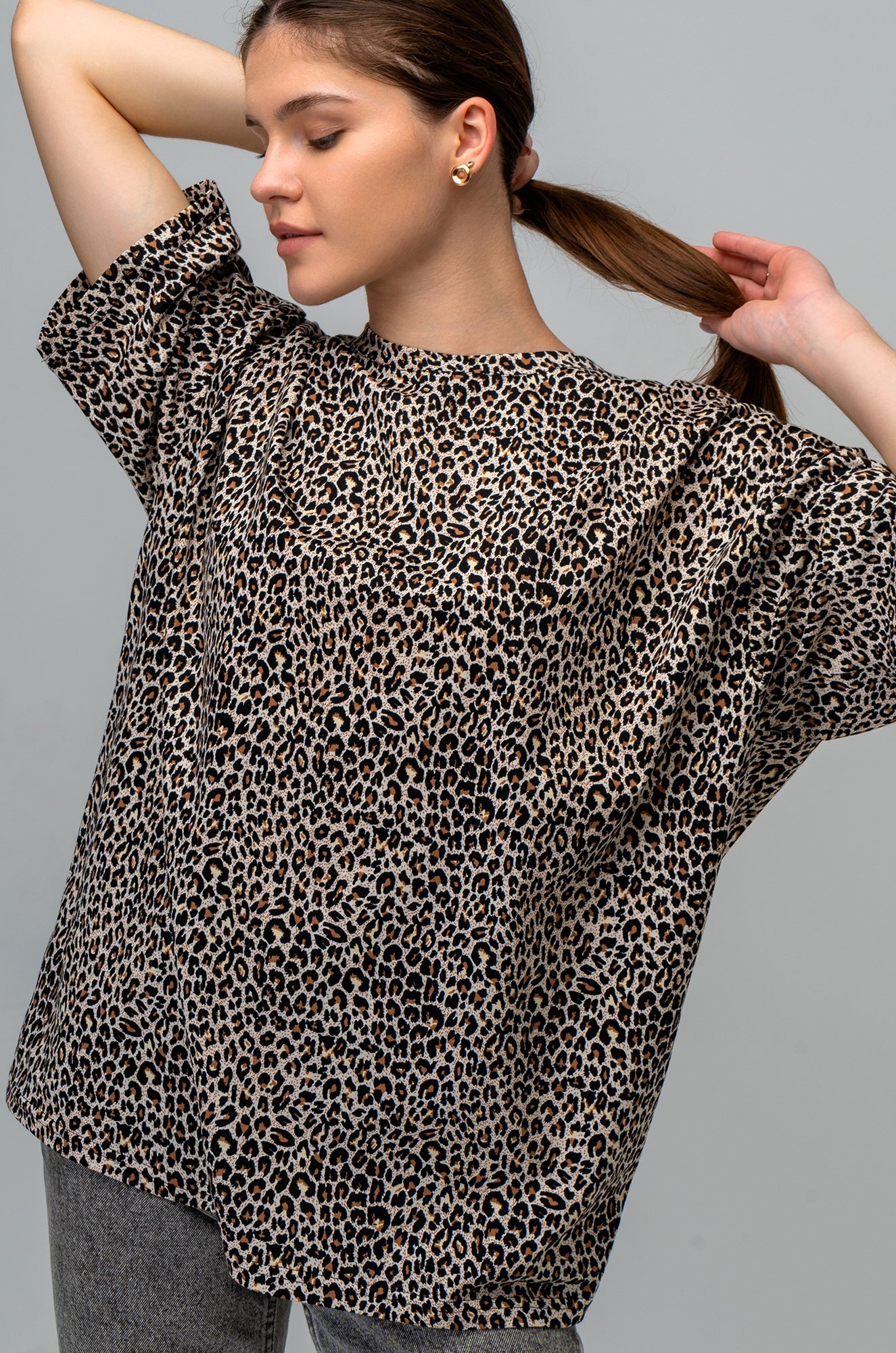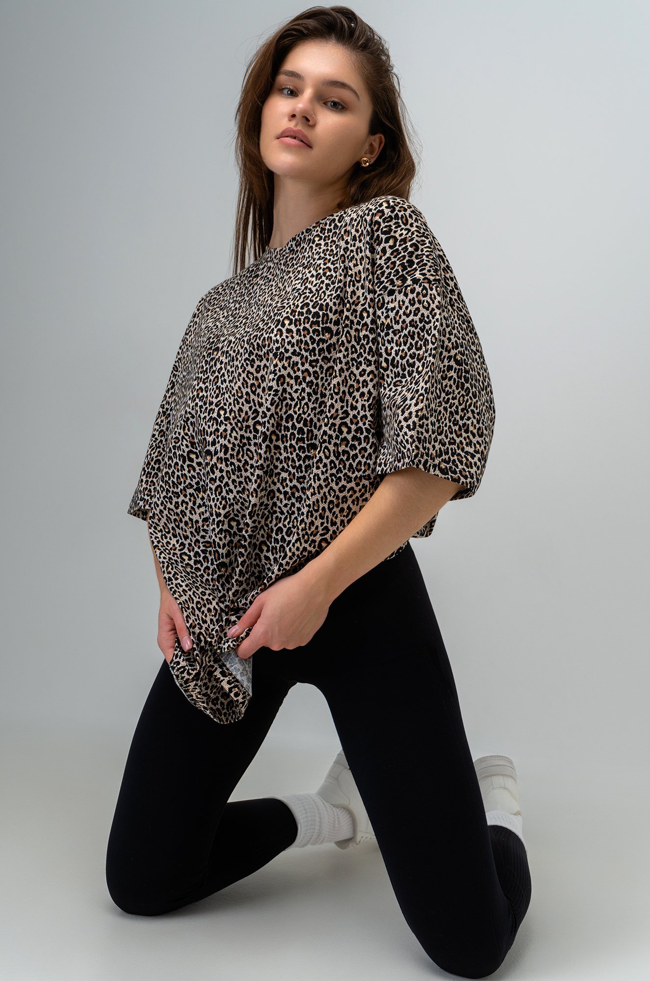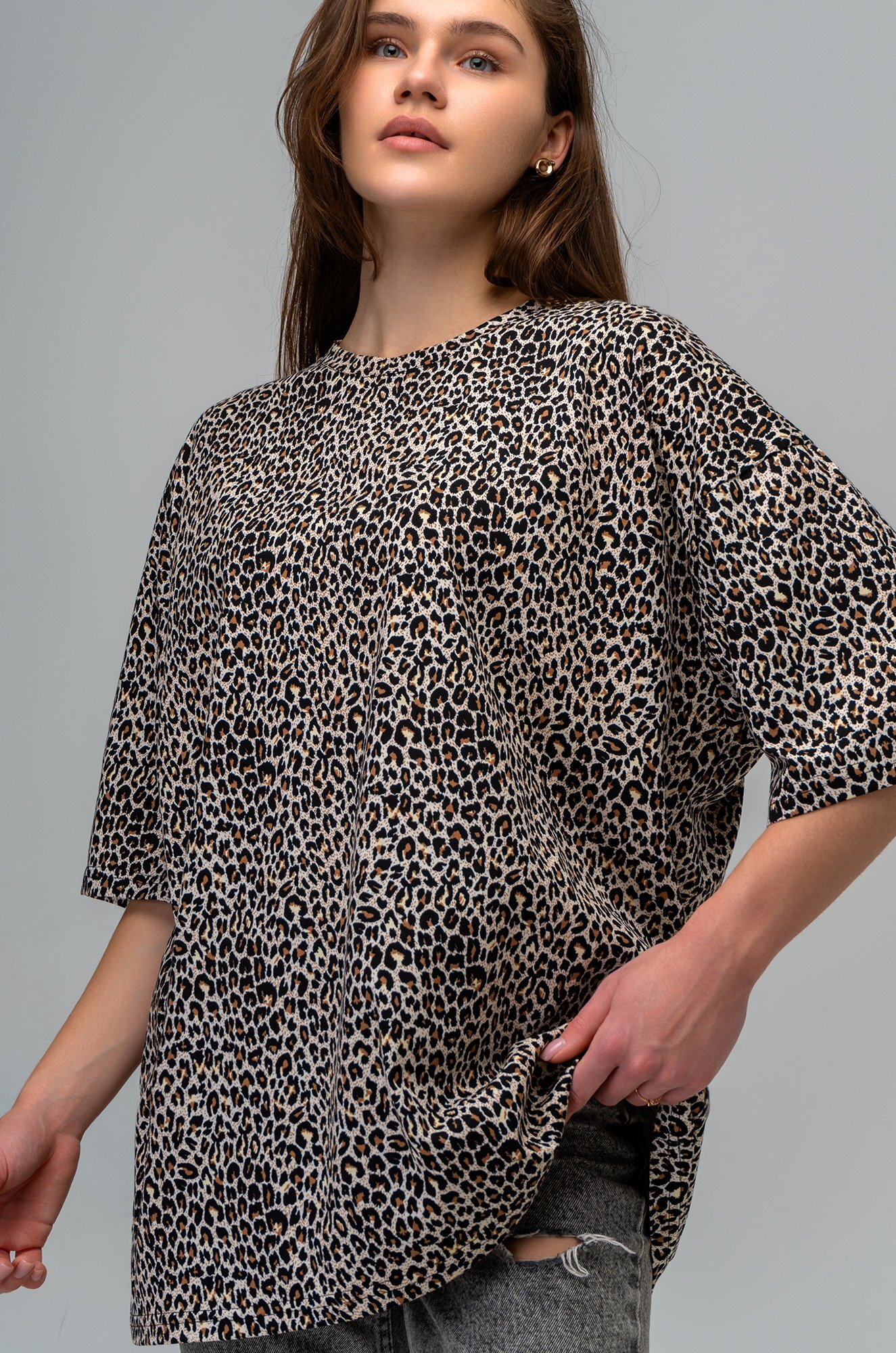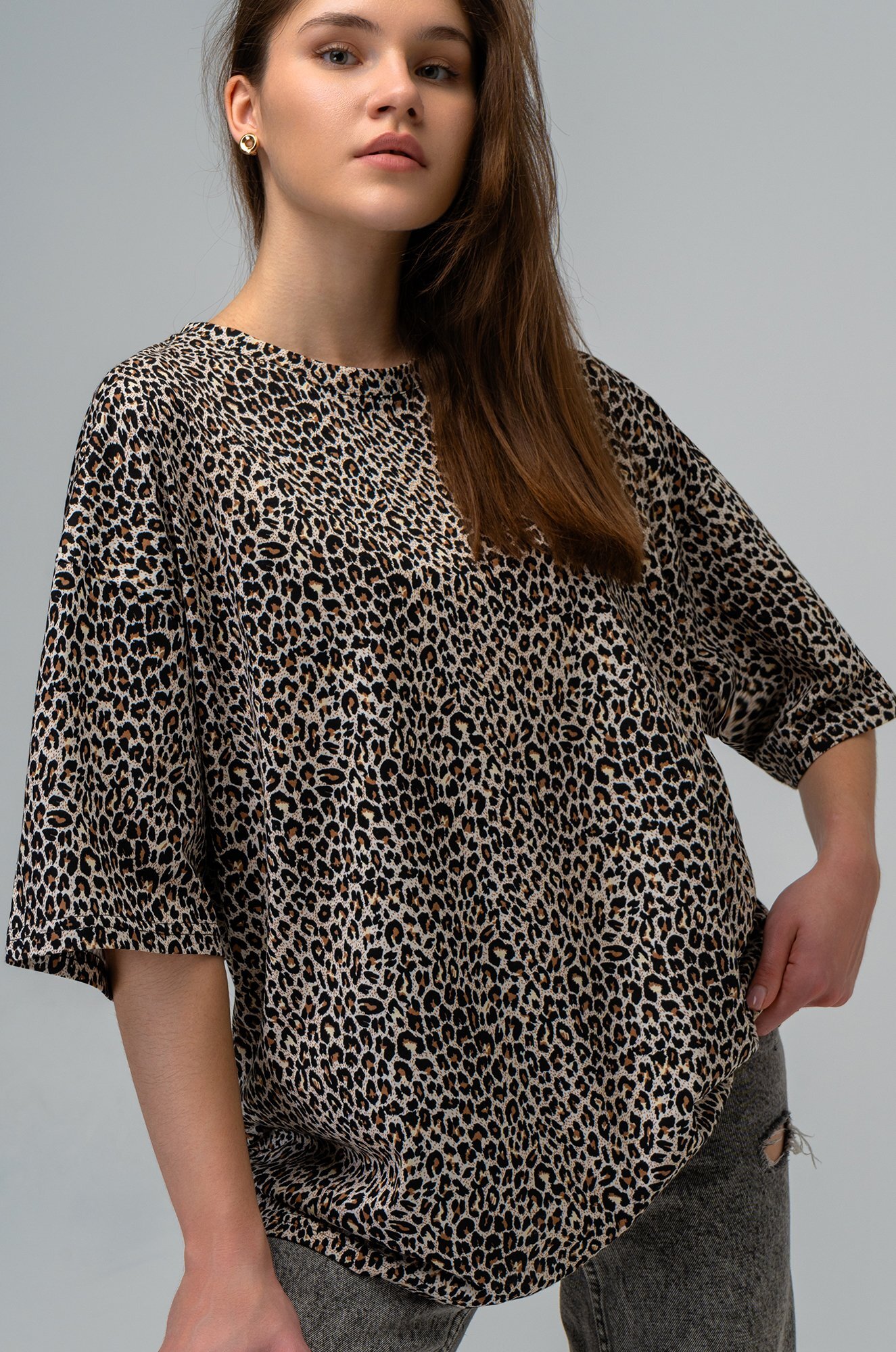 Леопардовая женская футболка оверсайз — классный акцент в повседневном образе.