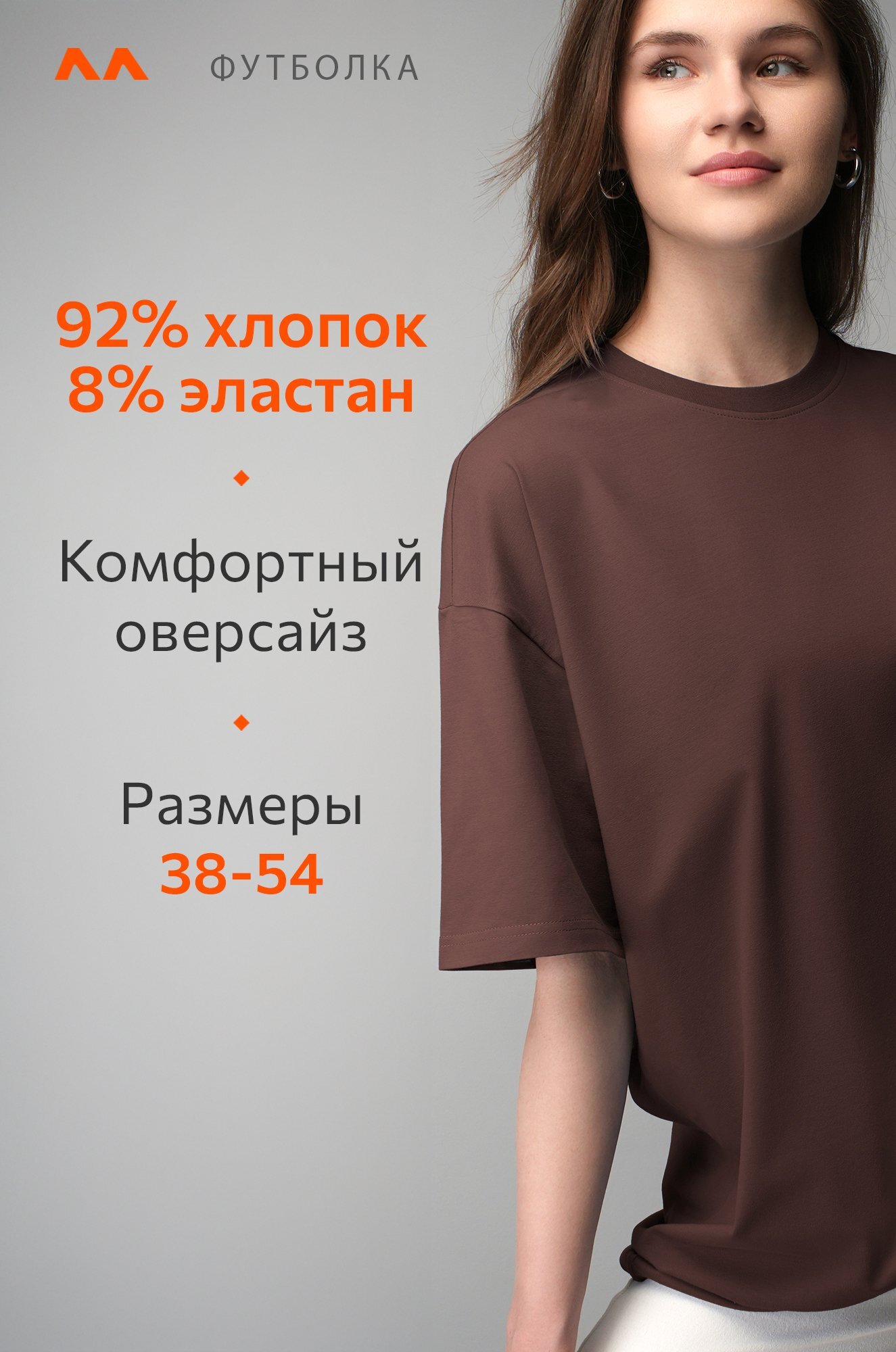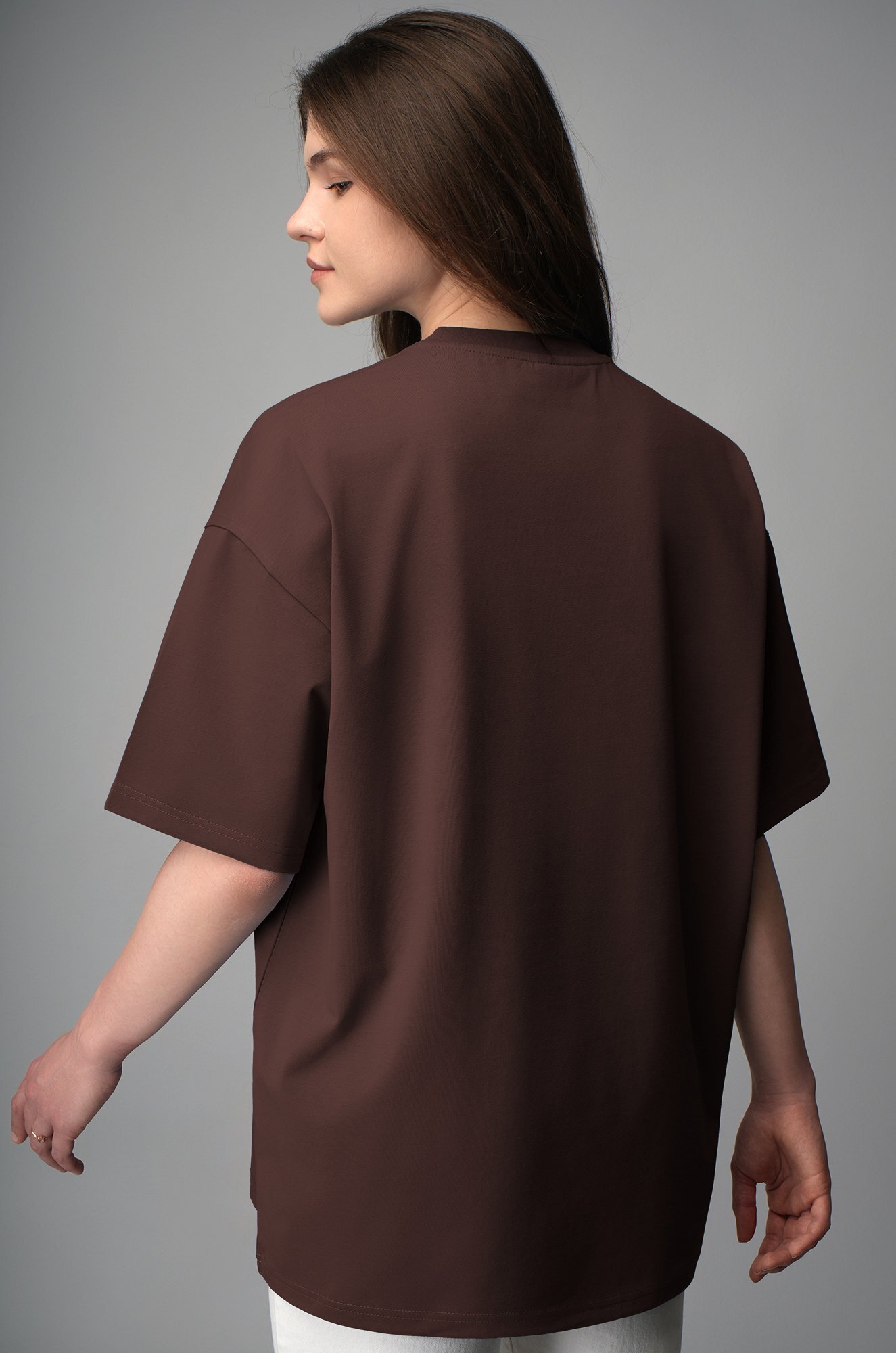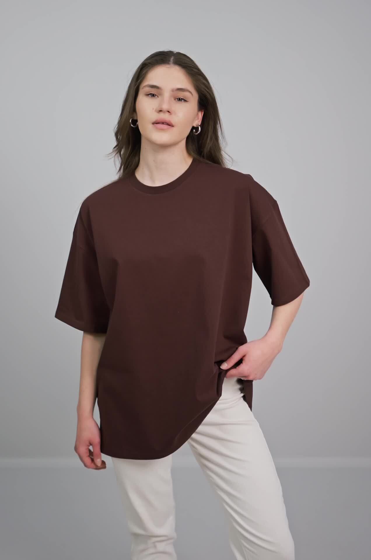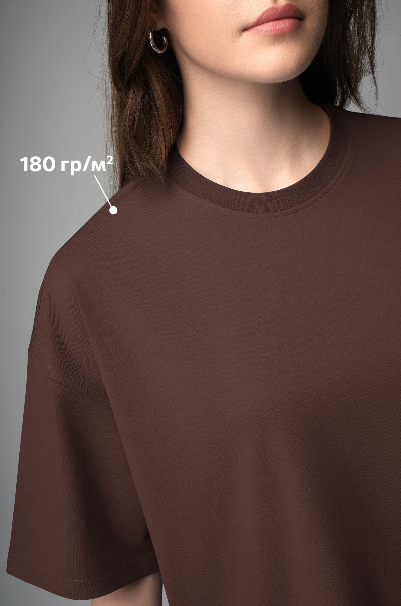 Однотонная женская футболка оверсайз с коротким рукавом выполнена из трикотажа с высоким содержанием хлопка. Стильная футболка шоколадного цвета легко сочетается с любым низом. Трендовый крой оверсайз уже не один сезон находится на пике популярности, свободная футболка – это современная база.