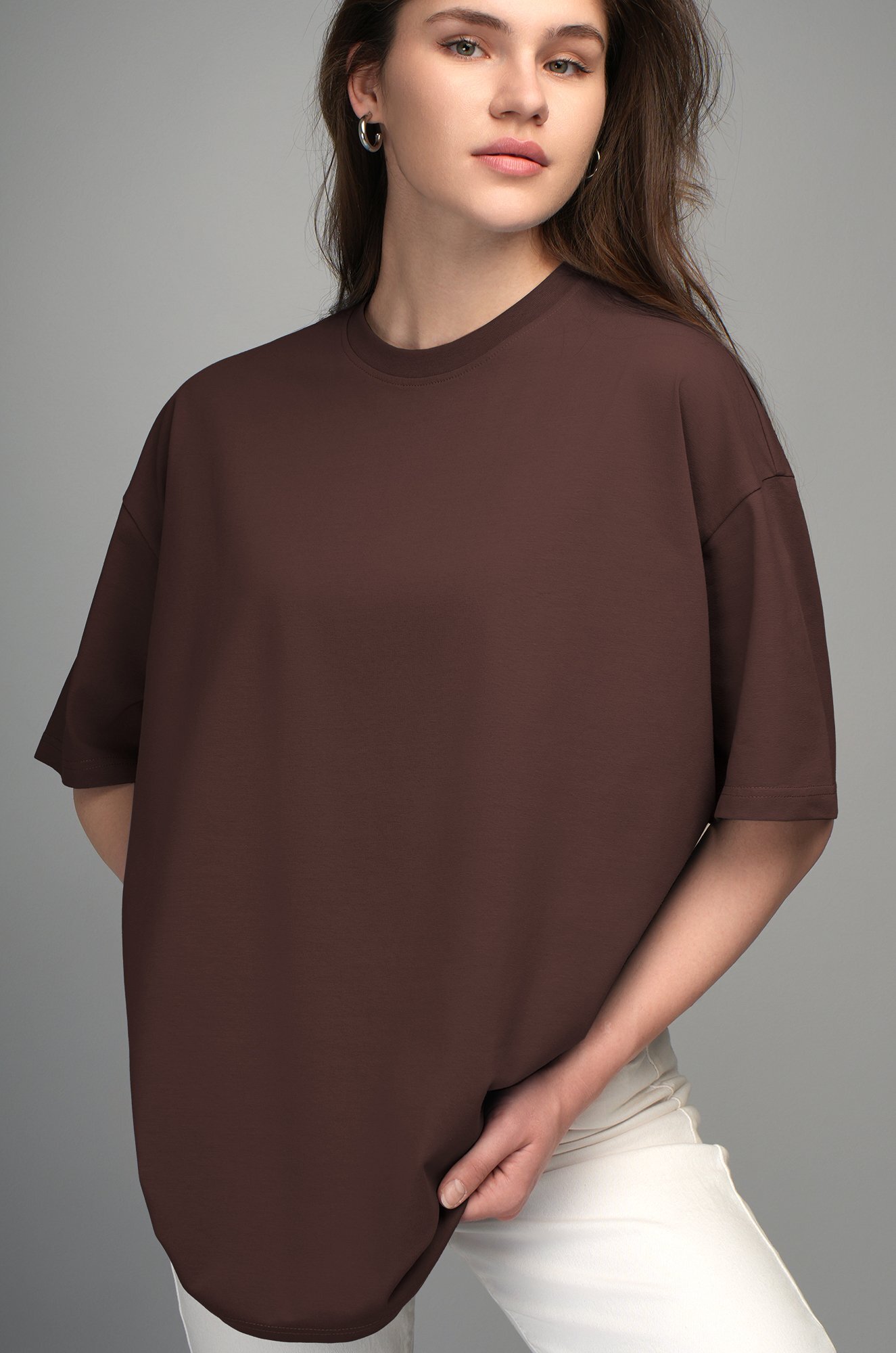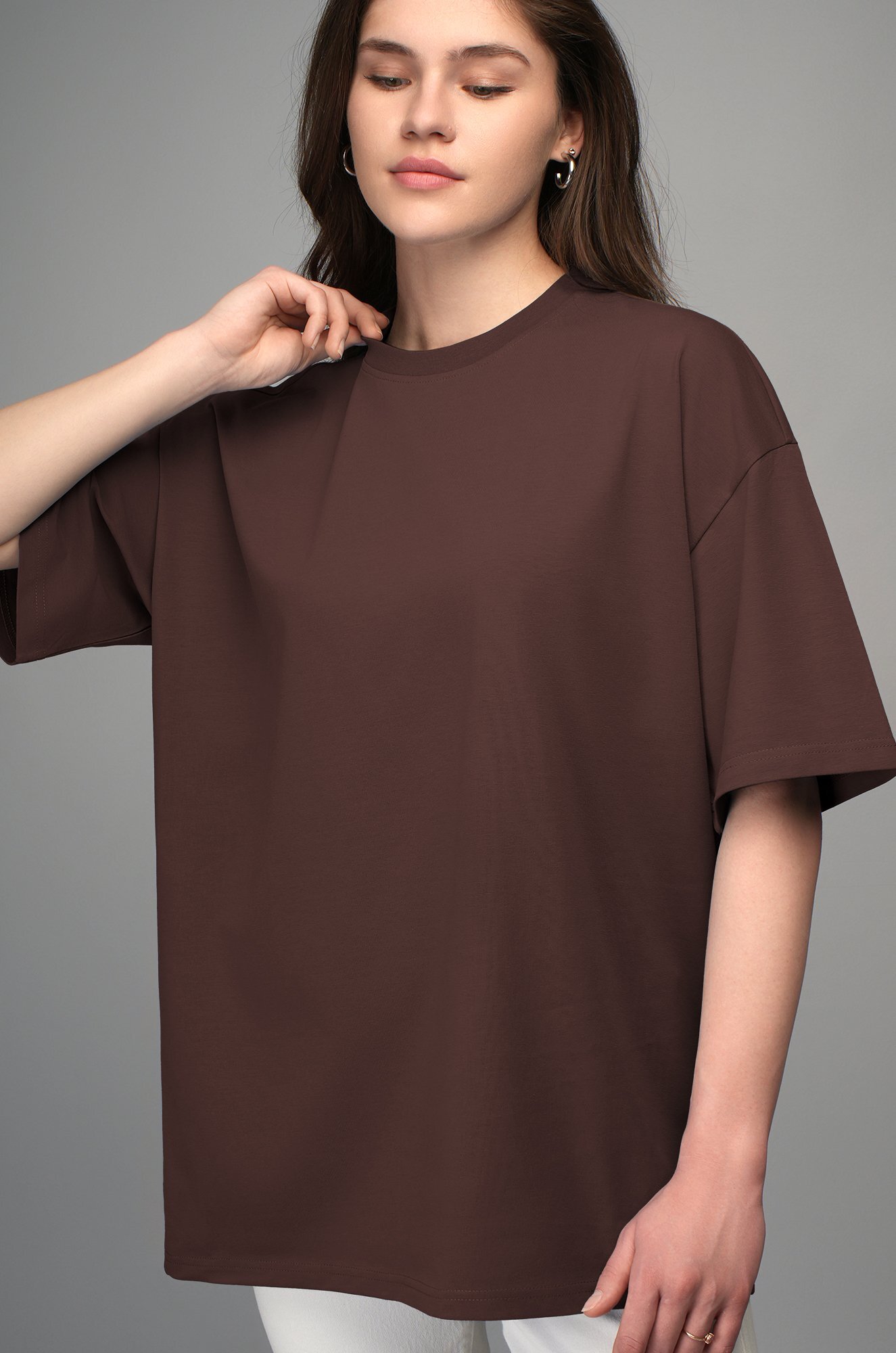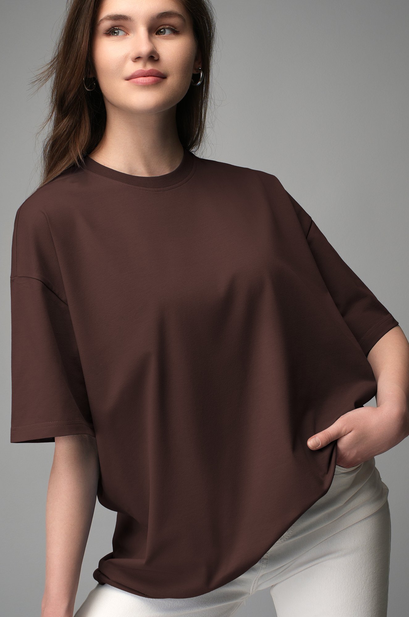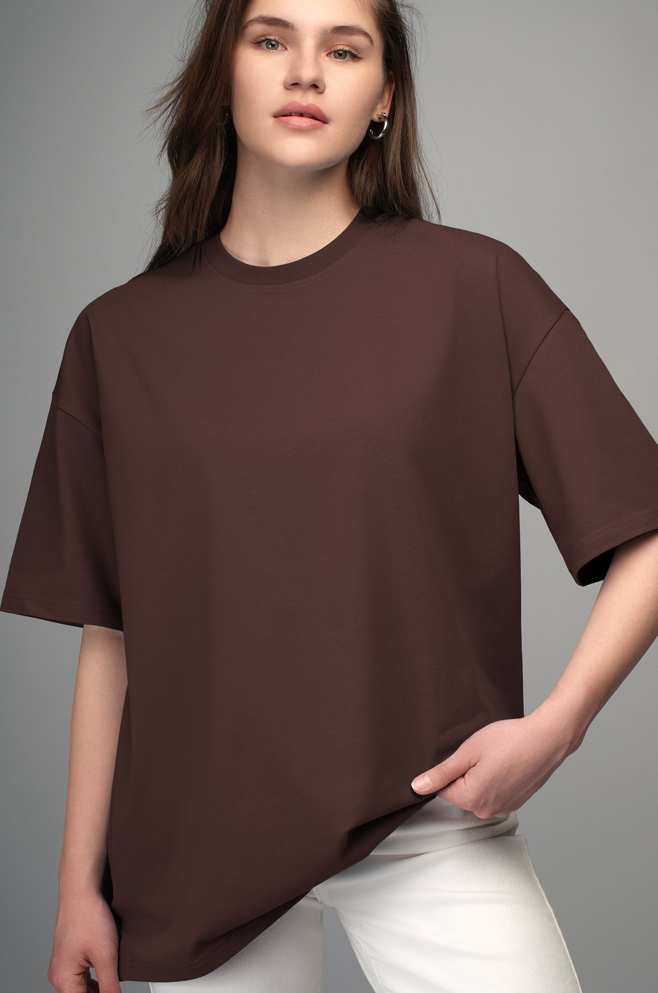 Однотонная женская футболка оверсайз с коротким рукавом выполнена из трикотажа с высоким содержанием хлопка. Стильная футболка шоколадного цвета легко сочетается с любым низом. Трендовый крой оверсайз уже не один сезон находится на пике популярности, свободная футболка – это современная база.