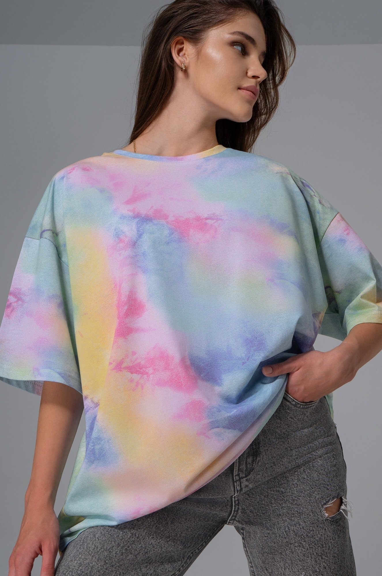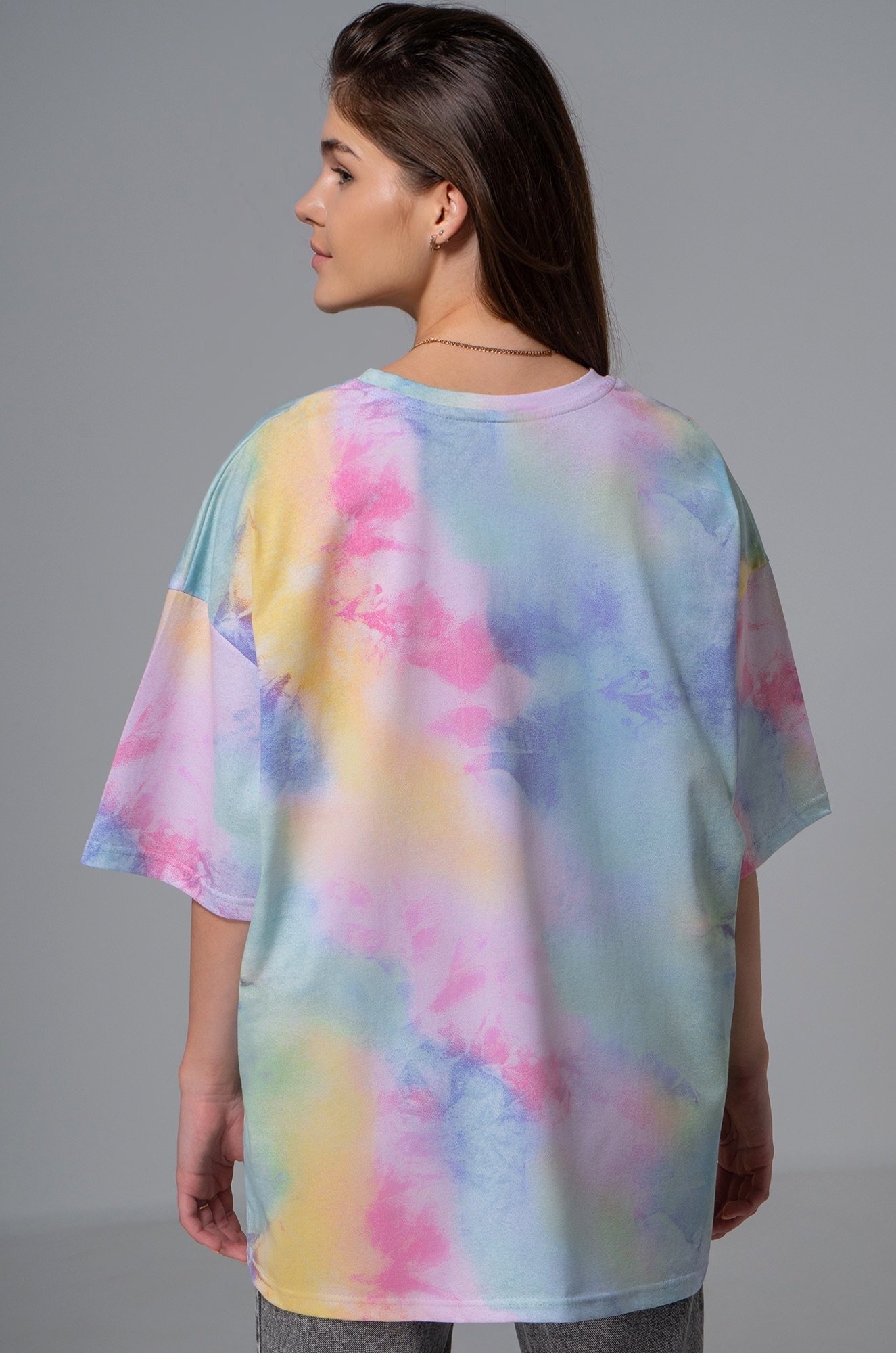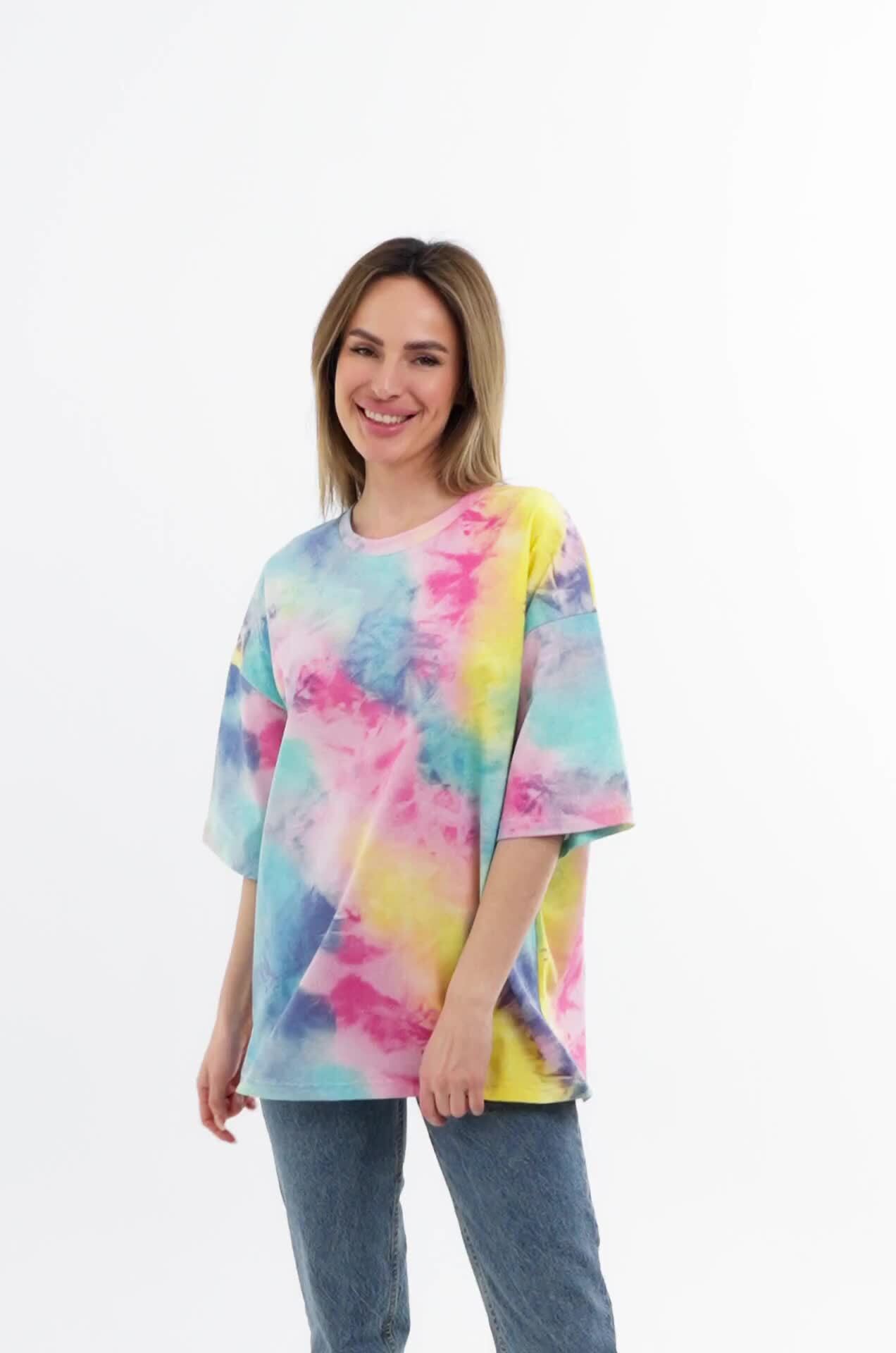 Яркая футболка с принтом тай-дай покорит сердце с первого взгляда! Женская футболка оверсайз — универсальное решение на каждый день.