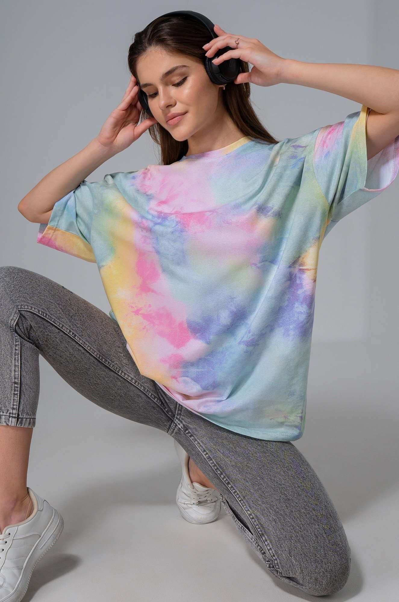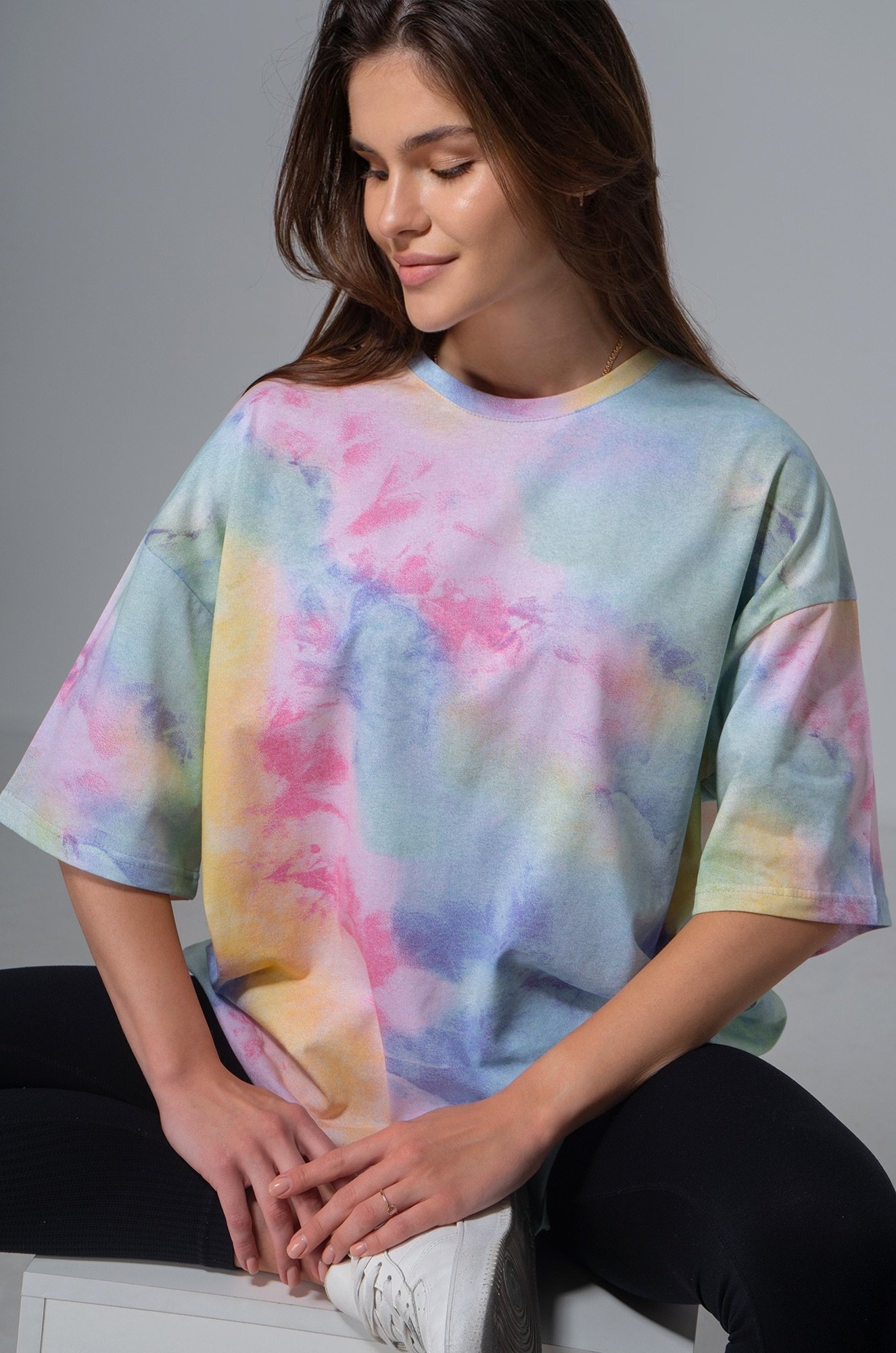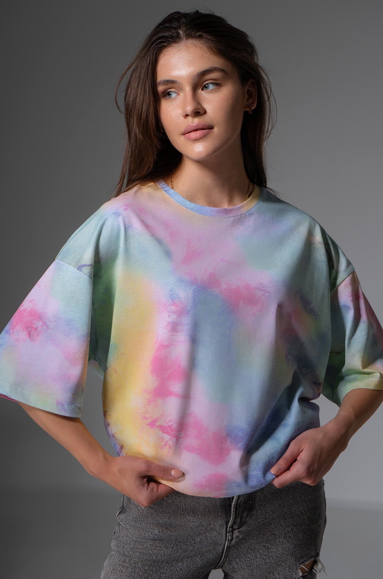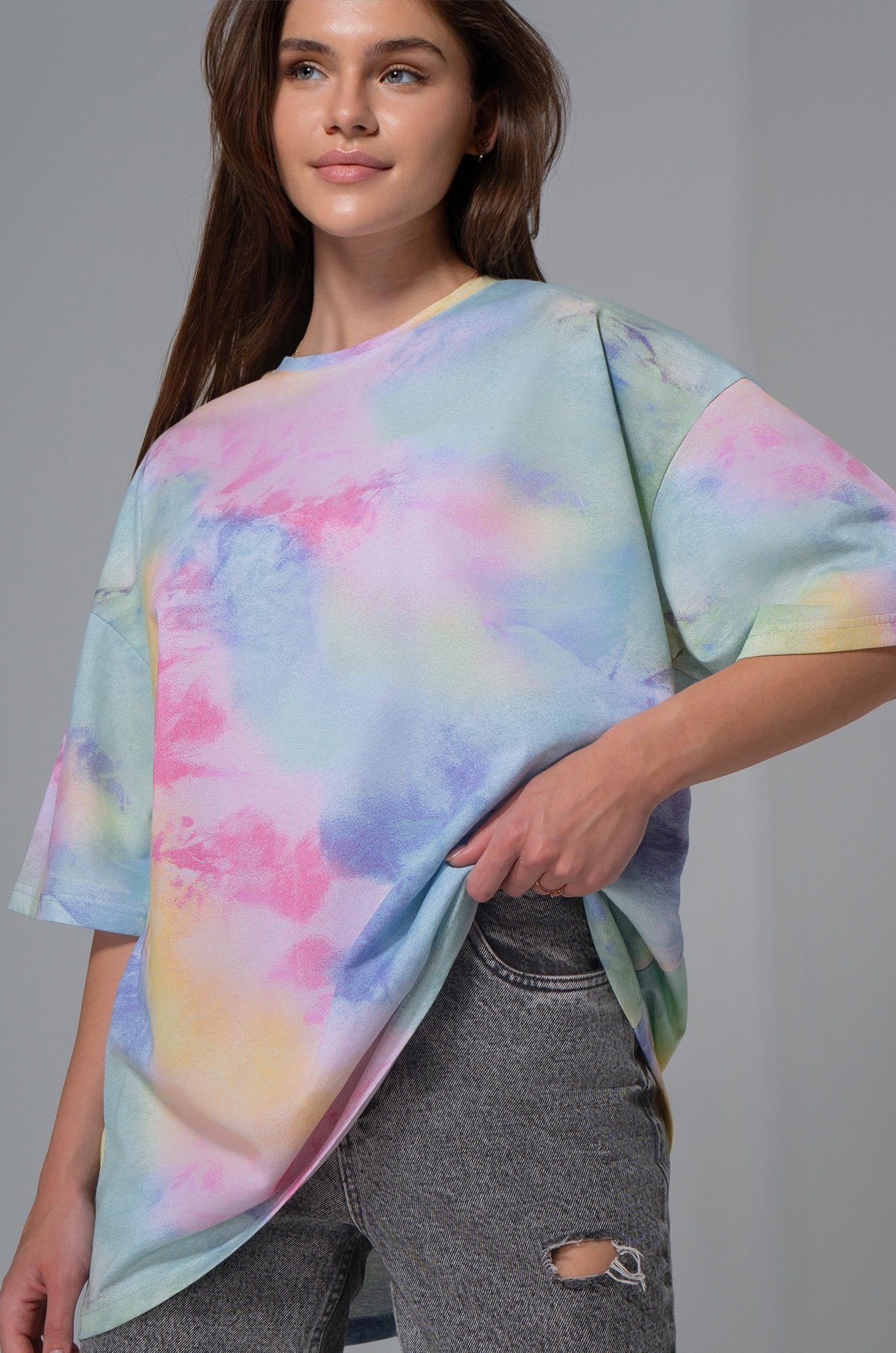 Яркая футболка с принтом тай-дай покорит сердце с первого взгляда! Женская футболка оверсайз — универсальное решение на каждый день.