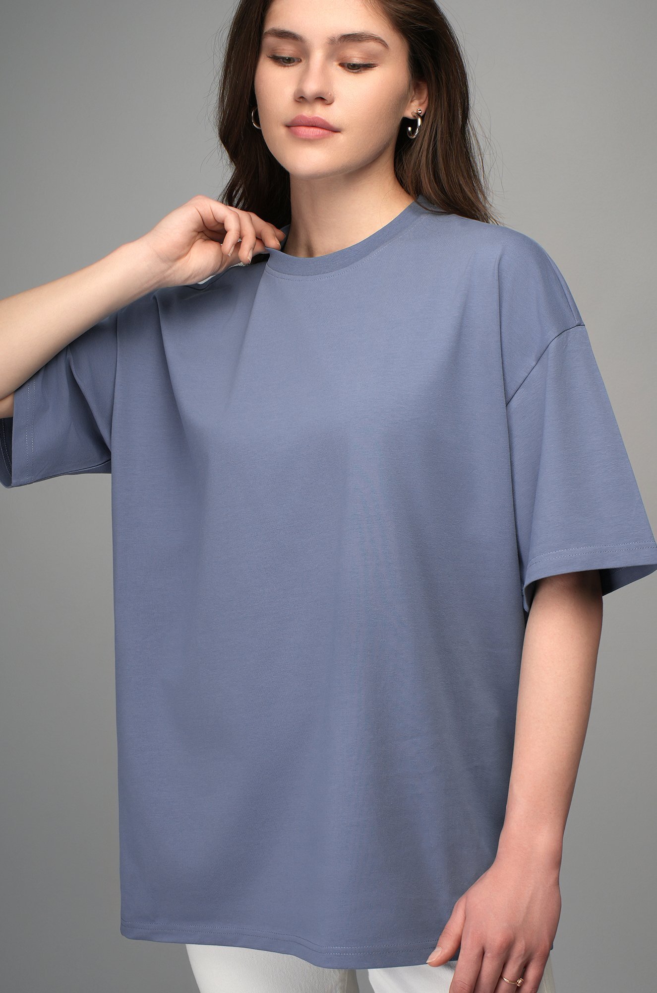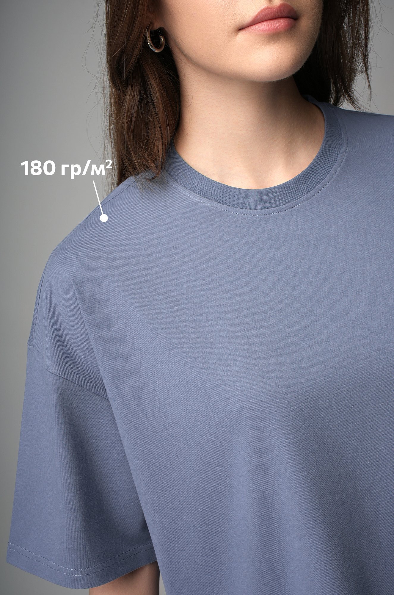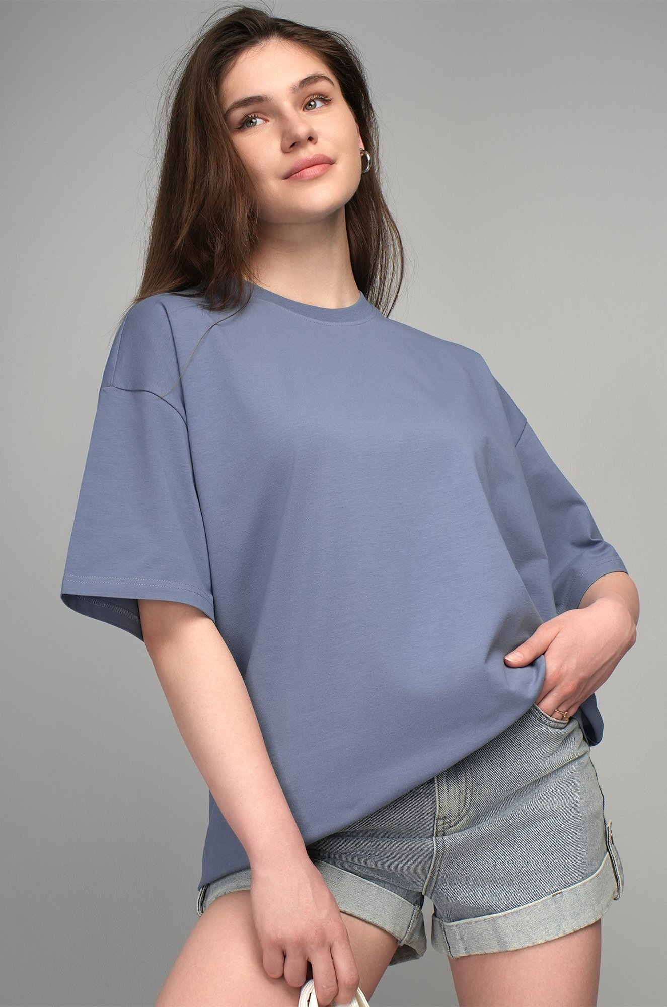Однотонная женская футболка оверсайз с коротким рукавом выполнена из трикотажа с высоким содержанием хлопка. Стильная футболка серо-голубого цвета легко сочетается с любым низом. Трендовый крой оверсайз уже не один сезон находится на пике популярности, свободная футболка – это современная база.