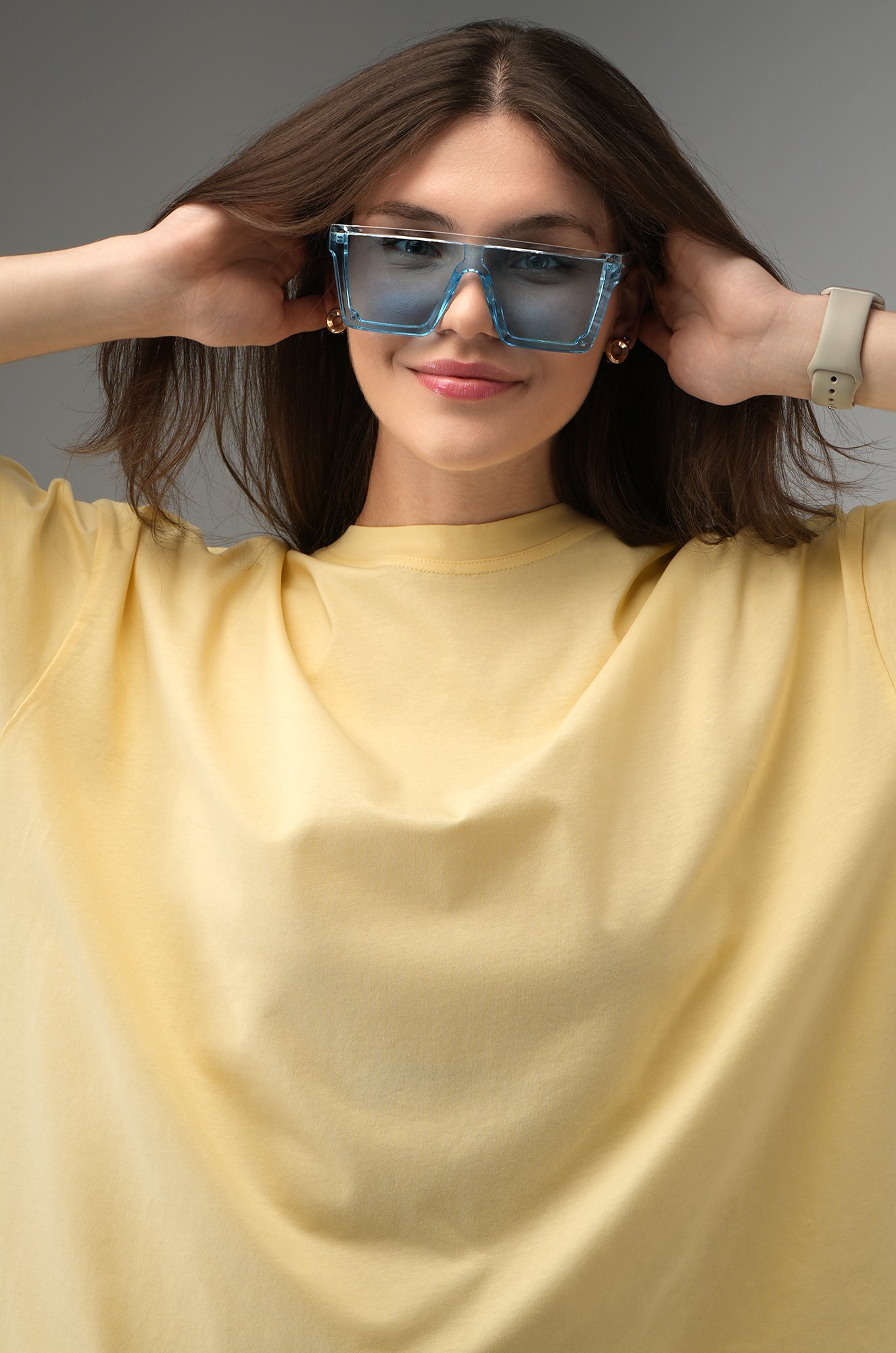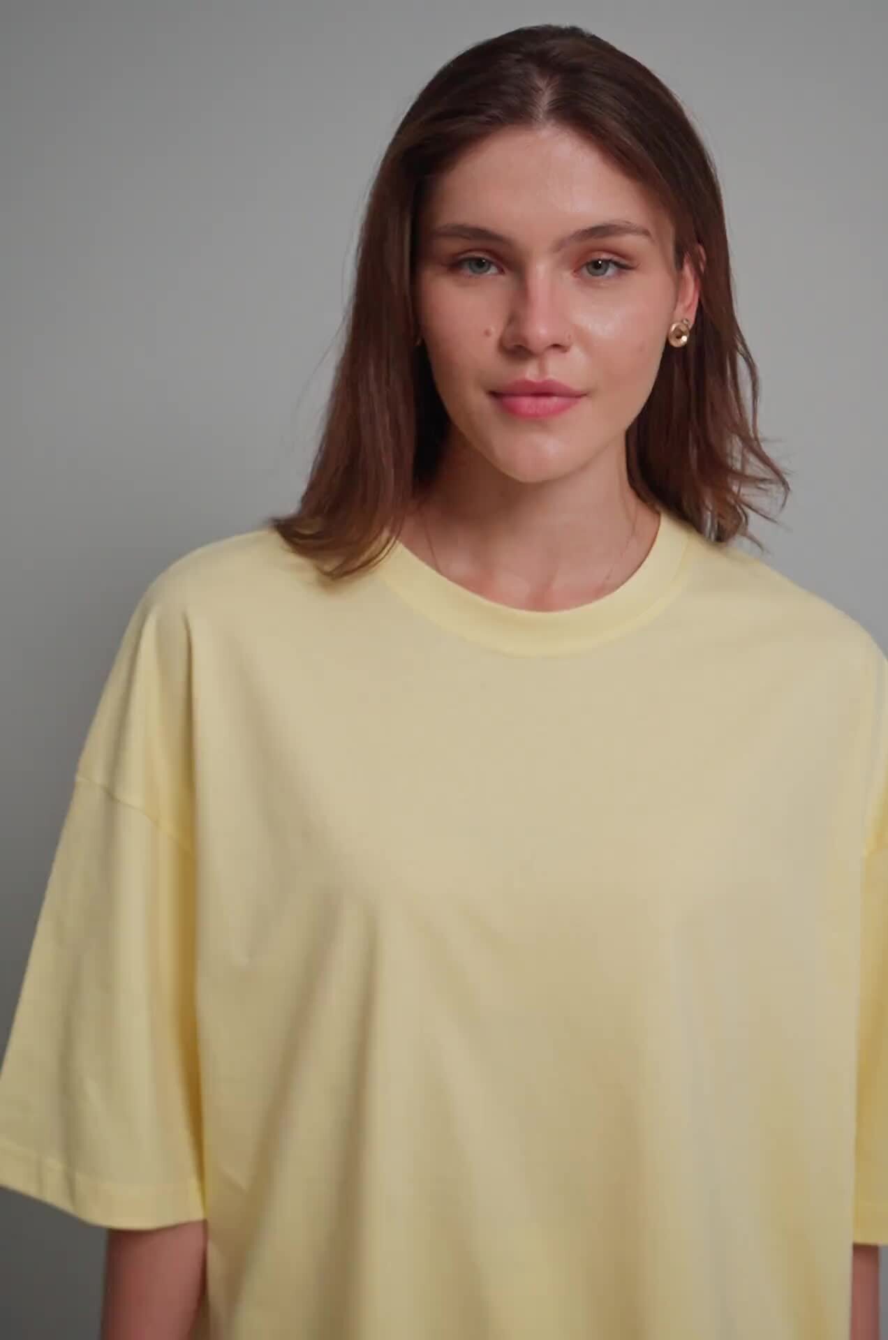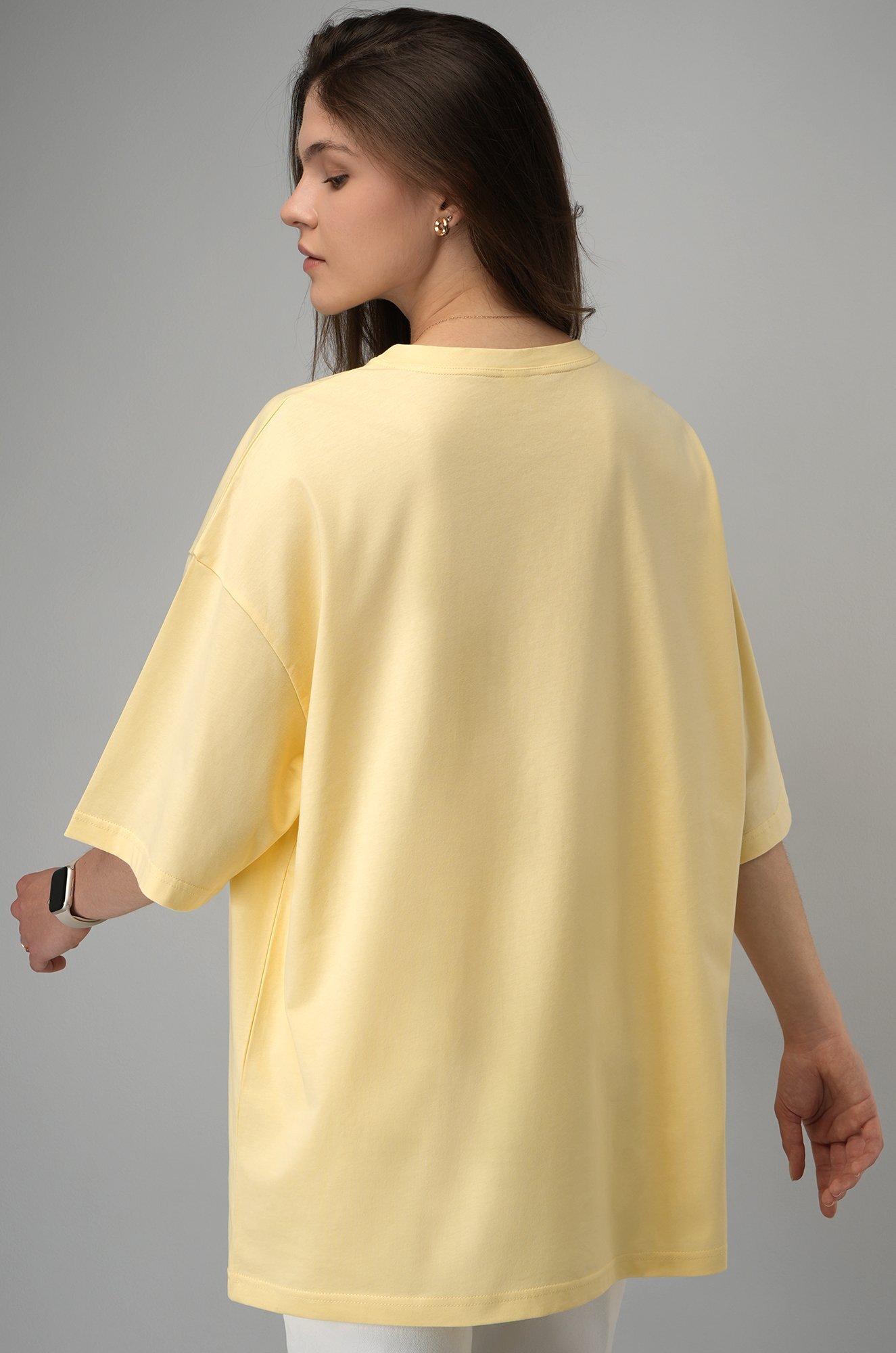 Трикотажная светло-желтая футболка для женщин отлично подойдёт для образов в уличном стиле.